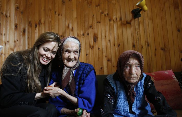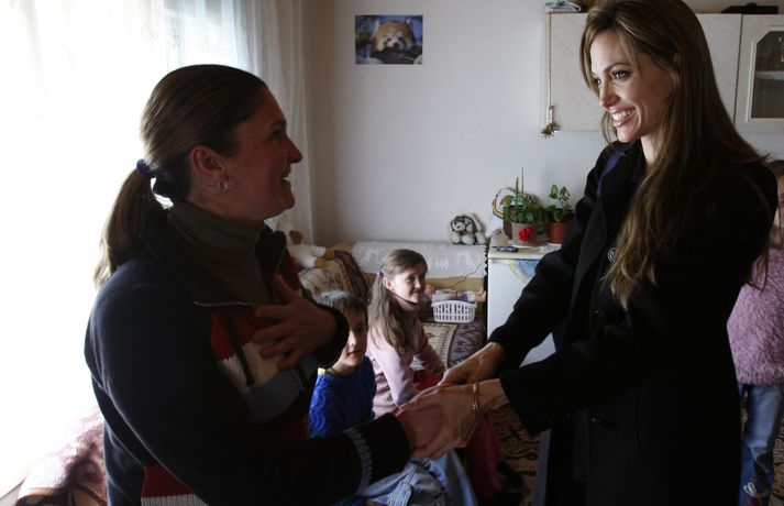 Ofurparið Angelina Jolie og Brad Pitt komu flóttamönnum í Bosníu á óvart þegar þau heimsóttu flóttamannabúðir á mánudag. Þar heimsóttu þau tvær fjölskyldur sem flúðu átökin í borgarastyrjöldinni fyrir fimmtán árum síðan og eru enn heimilislausar. Sögunni fylgir að konurnar í fjölskyldunum voru sérstaklega eftir sig í eftir heimsóknina. Höfðu þær orð á því hvað Brad Pitt væri dagfarsprúður maður. Angelina og Brad eyddu deginum í Bosníu og flugu síðan til strandbæjarins Tivat í Svartfjallalandi. Á eftir þeim fylgdi hersing fjölmiðlamanna en þeim tókst þó að stinga þá af. Þessa dagana halda þau til í Feneyjum en þar leikur Angelina á móti Johnny Depp í myndinni The Tourist. Henni er leikstýrt af Florian Henckel von Donnersmarck, sem gerði einnig hina stórgóðu þýsku mynd Líf annarra.Brangelina í Bosníu.Ömmurnar tóku vel á móti leikkonunni.Heimsóknin var á vegum flóttamannahjálpar Sameinuðu þjóðanna.