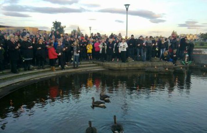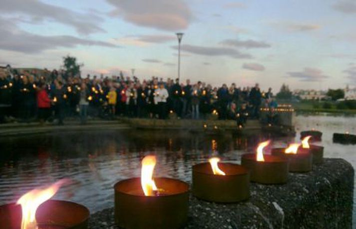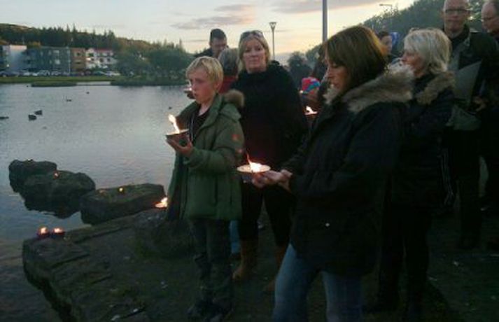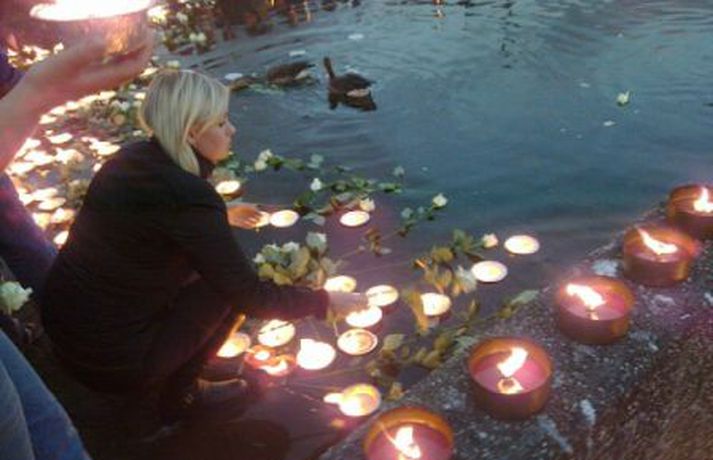 Kertum fleytt í minningu Hannesar Þórs Helgasonar 23. ágúst 2010 21:22 Kertum var fleytt í minningu um Hannes. Mörg hundruð manns söfnuðust saman við lækinn í Hafnarfirði í kvöld til að minnast Hannesar Þórs Helgasonar sem myrtur var á heimili sínu fyrir um viku. Andrúmsloftið var tilfinningaþrungið. Kertum var fleytt á lækinn og Flensborgarkórinn söng lög. Fjölskylda Hannesar var meðal viðstaddra og einkenndi mikill samhugur og samkennd þessa minningarstund. Fjöldi fólks var saman komið við lækinn í Hafnarfirði til að heiðra minningu Hannesar.Andrúmsloftið var tilfinningaþrungið.Banamaður Hannesar er enn ófundinn.Kertum fleytt á lækinn til minningar um Hannes.Kór Flensborgarskólans söng lög. Morðið á Hannesi Þór Helgasyni Mest lesið Ástæða fyrir því að genaumræðan hafi ekki náð mikilli útbreiðslu Innlent Veðurvaktin: Biðja fólk að halda sig heima í kvöld Veður Karlmaður lést í Bláa lóninu Innlent Hlýni á föstudag og snjórinn geti horfið í næstu viku Veður Færeyingar marka leið fyrir risastór neðansjávargöng Erlent Ráðgjafinn ráðinn tveimur dögum eftir að grennslast var fyrir um málið Innlent Stærsti fellibylur í sögu Jamaíka Erlent Ungur Miðflokksmaður gengst við rasisma og segir af sér Innlent Flugmaðurinn sem fórst millilenti oft í Reykjavík Innlent „Alvöru“ jólasveinn gisti á Hótel Rangá Innlent Fleiri fréttir Ástæða fyrir því að genaumræðan hafi ekki náð mikilli útbreiðslu Ráðgjafinn ráðinn tveimur dögum eftir að grennslast var fyrir um málið „Alvöru“ jólasveinn gisti á Hótel Rangá Vesturbæjarlaug opnuð enn eina ferðina eftir viðgerðir Verklagi ábótavant og krefur ríkislögreglustjóra skýringa Mæla með því að farþegar reiði sig ekki á tímaáætlanir Snjókoman mikla, ábótavant verklag ríkislögreglustjóra og jólasveinamót Karlmaður lést í Bláa lóninu Biðu í fjóra tíma úti á braut og aðra fjóra við farangursbeltin Kærðu umdeildar framkvæmdir allt of seint Skellt í lás í sundlaugum borgarinnar vegna veðurs Reglur brotnar og þjónusta sem bjóða ætti út Þarf að borga bætur þrátt fyrir breytingar á hlaupahjólinu Hvatt til varúðar vegna snjóflóðahættu á suðvesturhorninu Meiri kvika en í síðasta gosi Eldur í blokk við Ljósheima Flugmaðurinn sem fórst millilenti oft í Reykjavík Halla leiðir krabbameinsráð ráðherra Snjókomumet og umferðaröngþveiti Segir sameiginlegum gildum Norðurlanda ógnað Fjölmargir farþegar fastir í flugvélum á Keflavíkurflugvelli Ungur Miðflokksmaður gengst við rasisma og segir af sér Sturlað ástand og United vettlingar prjónaðir í bílnum Mesta snjódýpt í Reykjavík sem mælst hefur í október Viðbragðsaðilar í mikilli hættu vegna bíla á sumardekkjum Bílar út af veginum á Reykjanesbraut Vill heimila Samkeppniseftirlitinu að ráðast í húsleitir Snjókoman rétt að byrja Píratar berjist gegn „rísandi bylgju lýðskrums og fasisma“ Skvísur geti virkað sem hálfgerðir þroskaþjófar Sjá meira