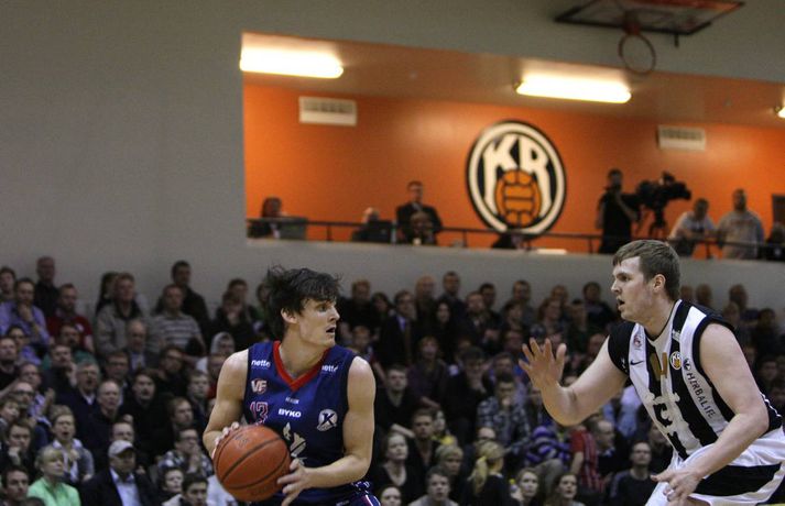 KR vann fyrsta bardagann gegn Keflavík í undanúrslitum Iceland Express-deildar í gær. Óhætt er að segja að leikurinn hafi verið afar skrautlegur. Vilhelm Gunnarsson, ljósmyndari Vísis og Fréttablaðsins, myndaði átökin og stemninguna í DHL-höllinni í gær. Afraksturinn má sjá hér að neðan.
