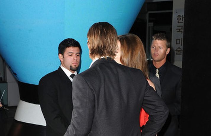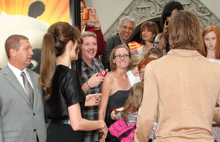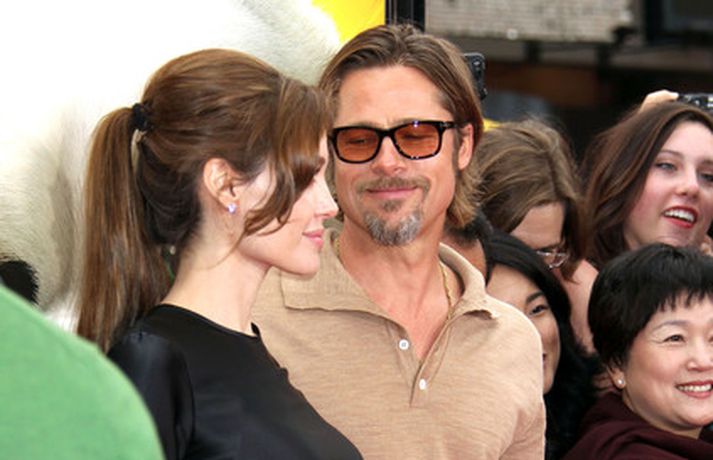 Stjörnuparið Brad Pitt og Angelina Jolie stilltu sér upp á rauða dreglinum í vikunni eins og sjá má á myndunum. Þá má sjá gjörbreytta Angelinu eftir að henni var breytt með aðstoð tölvutækninnar í myndasafni. Burtséð frá útlitinu svaraði Brad spurður hvort hann ætli að biðja Angelinu um að giftast sér í náinni framtíð:Krakkarnir spyrja okkur hvort við ætlum ekki að giftast. Gifting skiptir þau meira máli en okkur. Þannig að við erum að skoða þetta mál.