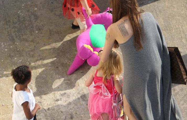 Leikkonan Angelina Jolie, 36 ára, er stödd á Möltu ásamt Brad Pitt og börnum þeirra, Maddox, Pax, Zahara, Shiloh, Vivienne og Knox um þessar mundir á meðan Brad leikur í myndinni World War Z. Í myndasafni má sjá þegar leikkonan fór með barnaskarann í skemmtigarð 15. júní síðastliðinn. Burtséð frá því má geta þess að Angelina er ákafur hnífasafnari.