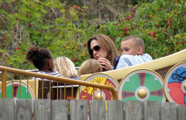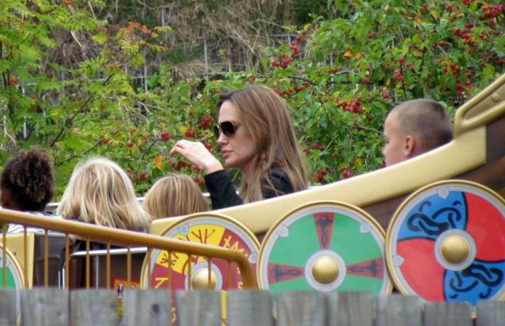 Angelina Jolie, 36 ára, leiddi þriggja ára son sinn, Knox sem var með sverð meðferðist í Legolandi í Englandi. Þá voru dætur hennar Zahara og Shiloh einnig með í för.Mér hefur aldrei liðið vel með að vera snert. Ég held niðri í mér andanum þegar fólk faðmar mig, sagði Angelina. Angelina og Brad Pitt stilltu sér upp á rauða dreglinum á frumsýningu kvikmyndarinnar Moneyball í Toronto á dögunum eins og sjá má í myndasafni. Þar var Angelina klædd í Vivienne Westwood kjól, Stuart Weitzman skó, með Louis Vuitton veski.