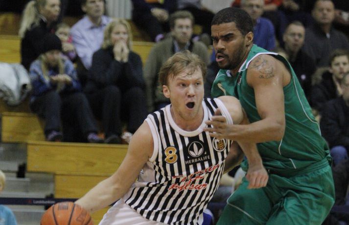 Umfjöllun og viðtöl: KR - Njarðvík 85-74 Elvar Geir Magnússon í DHL-höllinni skrifar 21. október 2011 20:53 Jón Orri Kristjánsson og Cameron Echols í leiknum í gær. Mynd/Valli Eftir að hafa unnið fyrstu tvo leiki sína í Iceland Express-deildinni þurfti ungt lið Njarðvíkur að bíða lægri hlut gegn KR-ingum í DHL-höllinni í kvöld. Heimamenn gerðu það sem þurfti og lokastaðan 85-74. KR-ingar voru yfir nær allan fyrri hálfleikinn, voru að finna sig vel í sóknarleiknum en baráttuglaðir og liprir Njarðvíkingar voru mættir til að selja sig dýrt og héngu í skottinu á þeim. Munurinn var mest sjö stig. Vel studdir af stuðningsmönnum sínum náðu gestirnir að jafna með síðustu körfu hálfleiksins en það var þristur frá Ólafi Helga Jónssyni. KR í fyrsta sinn ekki yfir síðan staðan var 0-0. Ljóst var snemma að spennandi og skemmtilegur leikur væri í fæðingu. Með fyrstu körfu seinni hálfleiksins komst Njarðvík í fyrsta sinn yfir í leiknum. Við það virtist liðið slaka aðeins of mikið á en KR-ingar vöknuðu til lífsins og voru skyndilega komnir með nokkuð þægilega ellefu stiga forystu. Munurinn var sex stig, 66-60, fyrir síðasta fjórðunginn. Varnarleikur KR lagaðist eftir því sem líða tók á leikinn og liðið náði að sigla sigrinum í höfn af nokkru öryggi. Glæsileg troðsla David Tairu í lokafjórðungnum kætti marga áhorfendur á leiknum og þrátt fyrir að KR hafi oft spilað betur vannst sigur. Varnarlega eiga KR-ingar nokkuð inni en þeir unnu leikinn án þess að sýna einhverja stjörnutakta. Hrafn: Erum enn í mótunHrafn leggur hér sínum mönnum línurnar í leiknum.Mynd/Valli„Það er frábært að fá tvö stig en þeir létu okkur hafa fyrir þessu. Við vorum kannski sjálfum okkur verstir oft á tíðum," sagði Hrafn Kristjánsson, þjálfari KR, eftir leikinn. Margir ungir leikmenn voru í sviðsljósinu í leiknum. „Algjörlega. Þetta er það sem fólkið í stúkunni vill sjá. Það vill sjá uppalda leikmenn koma inn og standa sig," sagði Hrafn. „Til að byrja með í mótinu þurfum við að sækja okkur stig á hvern þann hátt sem við getum. Við erum enn í mótun og erum að slípa okkur til. Það er heldur betur ýmislegt sem þarf að laga. Við spiluðum ekki nægilega góða vörn í byrjun og erum of seinir til baka. Við erum að taka slæmar ákvarðanir." KR á Stjörnuna í næsta leik. „Það verður alveg þvílíkur leikur. Við þurfum að bæta okkur töluvert ef við ætlum að ná einhverju út úr þeim leik," sagði Hrafn. Einar Árni: Stórt próf fyrir okkar hópFriðrik Ragnarsson og Einar Árni Jóhannsson, þjálfarar Njarðvíkur, í leiknum í gær.Mynd/Valli„Það vantaði upp á varnarleikinn hjá okkur. Það er það fyrsta sem manni dettur í hug," sagði Einar Árni Jóhannsson, þjálfari Njarðvíkinga. „Við vorum að eiga við allt önnur gæði í þessum leik en fyrstu tveimur, með allri virðingu fyrir Haukum og Val. Við lentum í vandræðum með Hreggvið í teignum og hann var okkur erfiður." Einar segir að þó sé hægt að taka fullt af jákvæðum hlutum úr leiknum. „Það voru margir góðir hlutir í gangi og þetta var stórt próf fyrir okkar hóp. Það segir kannski sitt um metnað okkar að við erum hundfúlir að fara héðan með tap. Ég hef trú á því að okkar menn muni njóta þess að taka þátt í þessum slag og mannast hratt og vel." Njarðvík á Þór í næsta leik. „Það verður bara svakaleikur. Þórsararnir eru bara með verulega öflugt lið. Það verður járn í járn og barist upp á líf og dauða um tvö mikilvæg stig," sagði Einar. Hreggviður: Gerðum það sem þurftiHreggviður horfir hér á eftir Elvari Má Friðrikssyni, hinum efnilega leikmanni Njarðvíkur.Mynd/Valli„Þeir voru búnir að spila vel í fyrstu tveimur leikjunum og mikið búið að skrifa um þá í blöðunum. Okkur langaði að bæta okkur frá síðasta leik og við gerðum það sem þurfti," sagði Hreggviður Magnússon, leikmaður KR. „Ég var bara gríðarlega ánægður með Kristofer Acox sem kom gríðarlega öflugur af bekknum. Finnur stóð sig gríðarlega vel og svo var þetta bara samstillt átak. Við erum samt að gera of mikið af mistökum og eigum eftir að batna mikið varnarlega. Varðandi sóknarleikinn hef ég engar áhyggjur. Við eigum gríðarlega mikið af vopnum en vörnin er eitthvað sem við reynum að bæta á hverjum degi." „Við þurfum að spila betri vörn til að vinna þá. Við eigum harma að hefna frá æfingaleik fyrir nokkrum dögum en það kemur ekkert annað til greina en að vinna þann leik."KR-Njarðvík 85-74 (27-22, 14-19, 25-19, 19-14)KR: David Tairu 23, Hreggviður Magnússon 20/9 fráköst, Finnur Atli Magnusson 17/7 fráköst/5 stoðsendingar, Emil Þór Jóhannsson 11/5 fráköst/5 stoðsendingar, Björn Kristjánsson 5/7 fráköst/6 stoðsendingar, Jón Orri Kristjánsson 3/8 fráköst, Kristófer Acox 2/10 fráköst, Skarphéðinn Freyr Ingason 2/4 fráköst, Martin Hermannsson 2.Njarðvík: Travis Holmes 20/10 fráköst/5 stoðsendingar, Cameron Echols 18/15 fráköst, Ólafur Helgi Jónsson 13/7 fráköst, Hjörtur Hrafn Einarsson 10, Elvar Már Friðriksson 7/7 stoðsendingar, Rúnar Ingi Erlingsson 4, Maciej Stanislav Baginski 2. Dominos-deild karla Mest lesið Einkunnir Íslands: Þrjár heitastar í frostinu Fótbolti Albert og Mikael Egill í vondum málum á Ítalíu Fótbolti Vísar slúðrinu til föðurhúsanna Enski boltinn Ísak Bergmann lagði upp gegn Bayern Fótbolti „Við tókum bara þá ákvörðun að fara í Svanavatnið“ Fótbolti Uppgjörið: Njarðvík - Grindavík 85-84| Njarðvík fyrstar til að leggja Grindavík af velli Körfubolti Palace neitar að sleppa takinu á Liverpool Enski boltinn „Eitthvað sem ég mun aldrei gleyma“ Fótbolti Ótrúleg dramatík í Garðabæ og á S