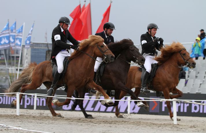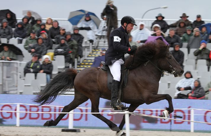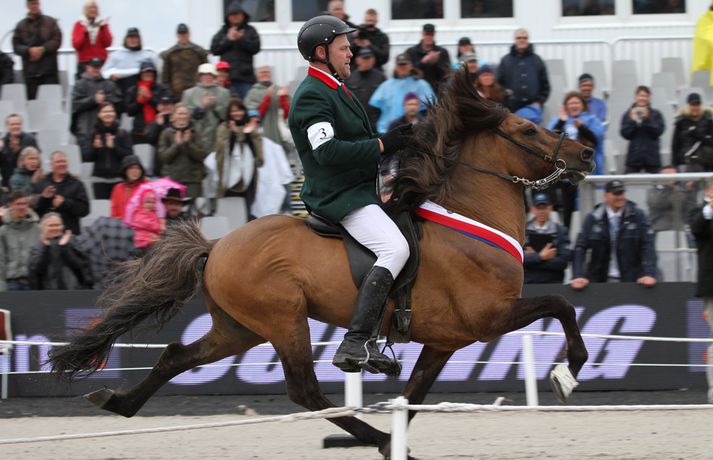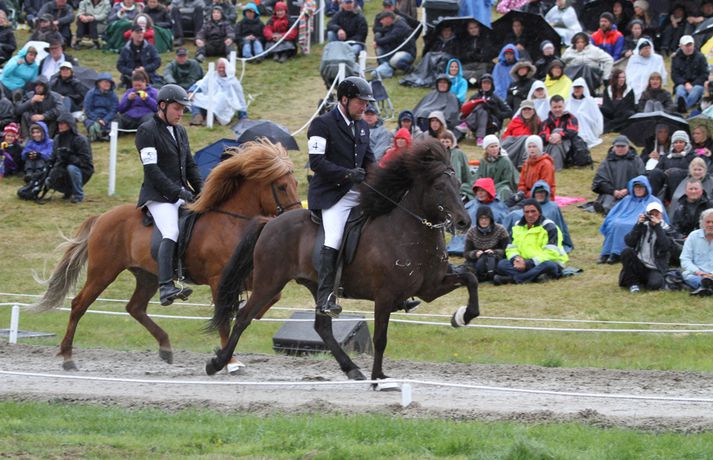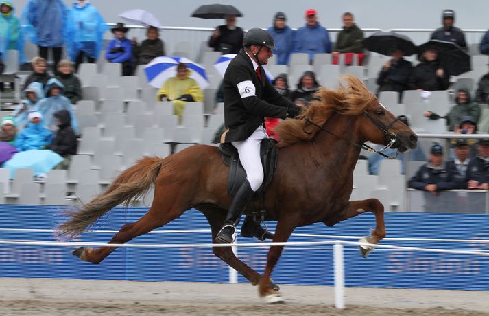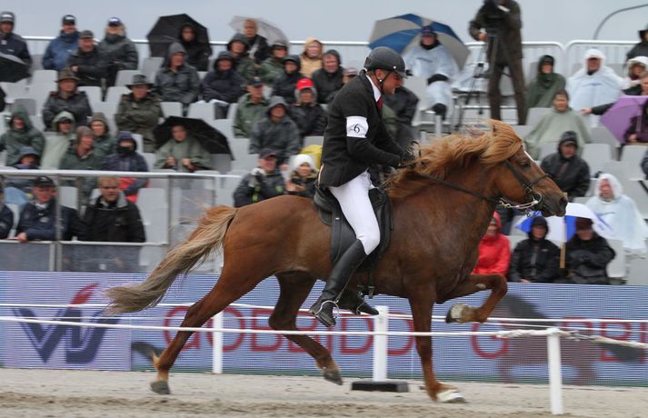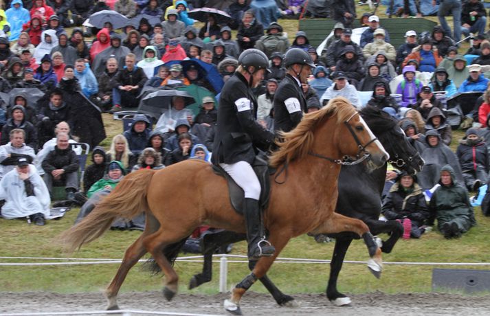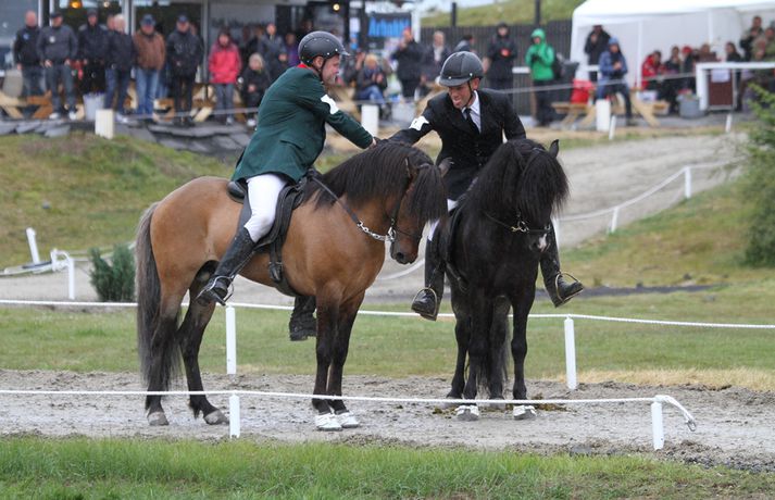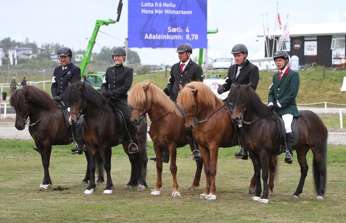 Keppandi/ tölt/brokk/skeið/vilji/fegurð í reið/lokaeinkunn 1. Fróði frá Staðartungu og Sigurður Sigurðarson: 8,82 - 8,60 - 9,16 - 9,00 - 8,96 = 8,92 2. Fláki frá Blesastöðum 1A og Þórður Þorgeirsson: 8,92 - 8,50 - 8,92 - 8,84 - 9,02 = 8,88 3. Stakkur frá Halldórsstöðum og Sigurbjörn Bárðarson: 8,62 - 8,78 - 9,08 - 8,98 - 8,78 = 8,86 4. Lotta frá Hellu og Hans Þór Hilmarsson: 8,54 - 8,60 - 9,12 - 8,90 - 8,64 = 8,78 5. Grunnur frá Grund II og Sigursteinn Sumarliðason: 8,62 -8,76 - 8,78 - 8,72 - 8,80 = 8,73 6. Hringur frá Fossi og Sigurður Vignir Matthíasson: 8,64 - 8,70 - 8,80 - 8,72 - 8,70 =8,71 7. Hnokki frá Þúfum og Mette Mannseth: 8,56 - 8,64 - 8,54 - 8,56 - 8,58 = 8,57 8. Sálmur frá Halakoti og Atli Guðmundsson: 8,62 - 8,30 - 8,42 - 8,46 -8,46 = 8,47Myndir/Bjarni Þór Sigurðsson