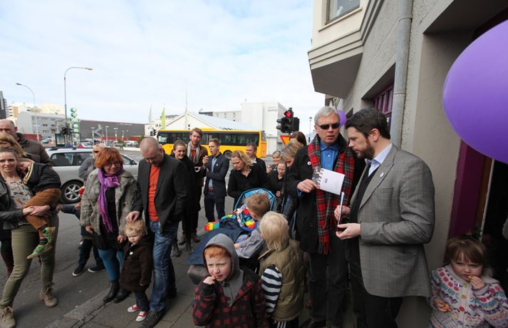 Björt framtíð kynnti kosningaáherslur sínar og opnaði kosningamiðstöð á Hverfisgötu 98 í góða veðrinu á sunnudag. Fullt var út úr dyrum, boðið var upp á grillaðar pylsur og Lúðrasveit verkalýðsins mætti á svæðið og tók nokkur lög við mikinn fögnuð viðstaddra — og þá sérstaklega barnanna sem sýndu túbunni mikinn áhuga.