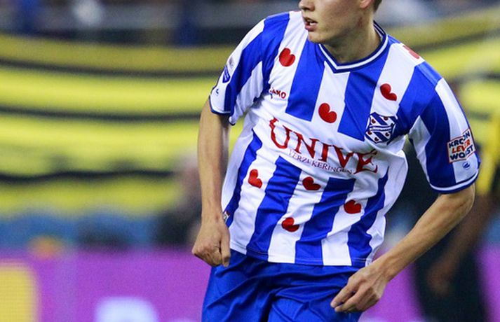 Alfreð reykspólaði fram úr Bale og Michu Óskar Ófeigur Jónsson skrifar 15. apríl 2013 12:15 Alfreð Finnbogason. Mynd/Nordic Photos/Getty Alfreð Finnbogason skoraði tvö mörk fyrir Heerenveen í 3-2 sigri á Willem II í hollensku úrvalsdeildinni í fótbolta um helgina. Hann hefur þar með skorað 23 deildarmörk á tímabilinu og jafnað 33 ára gamalt met Péturs Péturssonar en enginn Íslendingur hefur skorað fleiri deildarmörk á einu tímabili í efstu deild. Alfreð tók einnig risastökk á listanum yfir markahæstu leikmenn Evrópu en evrópski gullskórinn er eins og kunnugt er afhendur á hverju ári. Mörk leikmenn hafa þar mismundandi vægi eftir í hvaða deild þau eru skoruð. Í bestu deildunum (England, Spánn, Þýskaland, Ítalía og Frakkland) er hvert mark tveggja stiga virði en Alfreð og aðrir í hollensku deildinni frá 1,5 stig fyrir hvert mark. Alfreð hefur skorað 23 mörk og fengið fyrir það 34,5 stig sem skilar honum í 13. til 15. sæti á listanum. Alfreð var í 27. sæti fyrir helgina og hækkaði sig því um fjórtán sæti með þessum tveimur mikilvægu mörkum. Alfreð fór meðal annars upp fyrir þá Gareth Bale hjá Tottenham og Michu hjá Swansea City sem báðir eru með 34 stig í 16. til 19. sæti.Efstu menn í baráttunni um Gullskó Evrópu 2012-2013: 1. Lionel Messi, Barcelona 86 stig 2. Cristiano Ronaldo, Real Madrid 60 stig 3. Zlatan Ibrahimovic, PSG 52 stig 4. Radamel Falcao, Atletico Madrid 48 stig 5. Wilfried Bony, Vitesse 45 stig 6. Edinson Cavani, Napoli 44 stig 6. Robert Lewandowski, Borussia 44 stig 6. Luis Suarez, Liverpool 44 stig 9. Philipp Hosiner, Austria Wien 40,5 stig 10. Robin Van Persie, Man Utd 40 stig 11. Stephan Kiessling, Bayer Leverkusen 38 stig 12. Alvaro Negredo, Sevilla 36 stig13. Alfreð Finnbogason, SC Heerenveen 34,5 stig 13. Graziano Pelle, Feyenoord 34,5 stig 13. Jackson Martinez, FC Porto 34,5 stig 16. Antonio Di Natale, Udinese 34 stig 16. Pierre-Emerick Aubameyang, St Etienne 34 stig 16. Michu, Swansea City 34 stig 16. Gareth Bale, Tottenham 34 stig 20. Henrik Mkhitaryan, Shakhtar Donetsk 33 stig 20. Carlos Bacca, Club Brugge 33 stig 20. Jonathan Soriano, FC Red Bull Salzburg 33 stig 20. Michael Higdon, Motherwell 33 stigSportið á Vísi er komið á Facebook. Fylgstu með. Enski boltinn Fótbolti Ítalski boltinn Spænski boltinn Þýski boltinn Mest lesið Líður alltaf yfir hana þegar hún kemur í mark Sport Einkunnir Íslands: Þrjár heitastar í frostinu Fótbolti Magnús Már í viðræðum við HK Íslenski boltinn Vísar slúðrinu til föðurhúsanna Enski boltinn „Hefði séð eftir því alla ævi“ Íslenski boltinn Albert og Mikael Egill í vondum málum á Ítalíu Fótbolti „Við tókum bara þá ákvörðun að fara í Svanavatnið“ Fótbolti Rekinn fyrir ummæli sín um krabbameinssjúka handboltagoðsögn Handbolti Ísak Bergmann lagði upp gegn Bayern Fótbolti Dagskráin í dag: Íslenskur körfubolti og margt fleira Sport Fleiri fréttir „Hefði séð eftir því alla ævi“ Magnús Már í viðræðum við HK Vísar slúðrinu til föðurhúsanna Ísak Bergmann lagði upp gegn Bayern „Við tókum bara þá ákvörðun að fara í Svanavatnið“ Albert og Mikael Egill í vondum málum á Ítalíu Palace neitar að sleppa takinu á Liverpool „Eitthvað sem ég mun aldrei gleyma“ Einkunnir Íslands: Þrjár heitastar í frostinu Viktor Bjarki skoraði og lagði upp í fyrsta byrjunarliðsleiknum Uppgjörið: Ísland - Norður-Írland 3-0 | Áfram hluti af elítunni Pedri gæti verið frá keppni til langs tíma Arteta fyrstur stjóranna á fætur Þorsteinn breytir engu á milli leikja Snjóbræðslukerfi Þróttar kom KSÍ til bjargar Tölur úr Bestu 2025: Klúðraði langflestum dauðafærum í sumar Segja spurningar vakna um stöðu Elísabetar Litu á hann sem risaeðlu en sjáið hvað er í tísku núna Formaðurinn hjálpaði til við að moka völlinn Formenn sambandanna hjálpuðu við að moka völlinn Real Madrid mun ekki refsa Vinícius Júnior Fluttu fréttir af snjónum í Reykjavík Sýknaður í alvarlegu ofbeldismáli Búið að finna leiðina til að pirra og vinna Liverpool Sú leikjahæsta leggur skóna á hilluna og klárar læknanámið Stuðningsmaður RB Leipzig lést á bikarleiknum í gærkvöldi Arteta óttast ekki að keppinautarnir steli undrabarninu frá honum FH bíður með að tilkynna nýjan þjálfara Óskar Hrafn fer ekki fet Spánn og Þýskaland mætast í úrslitum Sjá meira