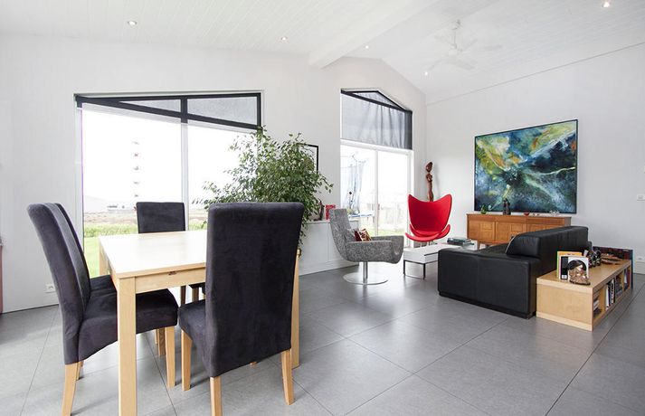 Þó svo að þingmaðurinn Silja Dögg Gunnarsdóttir hafi sett hús sitt í Reykjanesbæ á sölu þurfa kjósendur í Suðurkjördæmi ekki að örvænta. Hún segist ekki alls ekki vera á leið úr kjördæminu og vill í raun hvergi annars staðar búa en á Suðurnesjum. Heimili Silju Daggar að Seljudal 5 í Reykjanesbæ er nú komið á sölu hjá fasteignasölunni Brú en hún og maður hennar reistu húsið sjálf árið 2008. Húsið eru rúmir 200 fermetrar að stærð og stendur ekki allsendis langt frá flæðarmálinu. Í samtali við Vísi segir framsóknarkonan að einungis praktískar ástæður búi að baki flutningunum. Fjölskyldan vilji minnka við sig eftir að elsta barnið á heimilinu flaug úr hreiðrinu. Þrátt fyrir að Silja og hennar slekti séu ekki búin að finna sér nýjan íverustað segist hún ekki hafa miklar áhyggjur af því að vera steypa sér í mikið óvissulimbó ef af sölunni verður á næstu misserum. Fasteignamarkaðurinn sé að taka við sér og hefur hún litla trú á öðru en að leit hennar að minni og jafnvel eldri eign muni ganga skjótt og öruggt fyrir sig. Hún segist muna sjá mikið eftir því að búa í húsinu - sem hún líkir við það að búa í sumarbústað. Ekki síst vegna heita pottsins sem hún leitaði oft í eftir langan dag á þinginu. Trampólínið muni hún þó taka með sér enda segir Silja að það hafi gert sama gagn og heiti potturinn. Fátt sé betra eftir langan átakadag á Alþingi en að hoppa á trampólíninu að sögn þingmannsins. Myndir af framsóknarvillu Silju Daggar má nálgast hér að ofan og nánari upplýsingar má nálgast á fasteignavef Vísis.