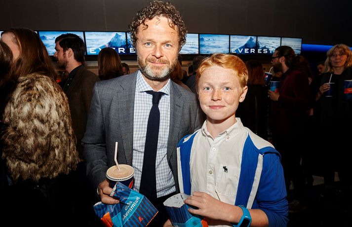 „Það er ógeðslega gaman að koma heim og frumsýna. Enn meira spennandi eftir að vel hefur gengið úti,“ sagði leikstjórinn Baltasar Kormákur í samtali við Andra Ólafsson og Sigrúnu Ósk Kristjánsdótturr er Ísland í dag kíkti á forsýningu Everest í Smárabíó í kvöld. Myndin segir frá stærsta slysi í sögu Everest þar til í fyrra. Fjölmargar bækur hafa verið skrifaðar um atburðinn og ein sjónvarpsmynd en þetta er fyrsta kvikmyndin sem gerð hefur verið. „Ég hef verið spurður hví við tókum myndina ekki upp á Everest en það er einfaldlega af sömu ástæðu og Alfonso Cuaron gerði Gravity ekki í geimnum.“ Daði Einarsson sér um tæknibrellurnar í myndinni en hann hefur áður komið að fjórum myndum með Baltasar auk mynda á borð við Gravity og Harry Potter. Tæknivinnslan fór fram hér heima. Daði segir að mesta vesenið hafi verið að skipta um og búa til bakgrunn á skotum sem annað hvort voru tekin upp með aðstoð „greenscreen“ eða í ítölsku ölpunum. Everest hefur nokkrum sinnum verið nefnd í sömu andrá og Óskarsverðlaunin að undanförnu en Baltasar segir að hann sé ekki farinn að hugsa um slíkt. „Ég geri ekki myndir með slíkt í huga. Þú pantar desertinn þegar þú ert búinn með aðalréttinn. Þetta er ekki nógu mikil Óskarsmynd, mögulega fyrir tæknibrellurnar, þar eigum við séns,“ segir hann. Innslagið úr Ísland í dag má sjá hér að ofan en fyrir neðan má sjá gesti forsýningar áður en myndin hófst. Anton Brink, ljósmyndari Fréttablaðsins og Vísis, var á staðnum og fangaði stemninguna.