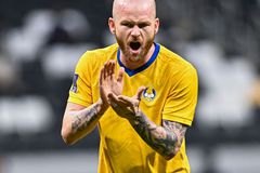 Lettar kipptu liprum íslenskum landsliðsmönnum niður á jörðina í 2-2 jafntefli liðanna í A-riðli undankeppni Evrópumótsins í knattspyrnu í Laugardalnum í dag. Okkar menn léku við hvurn sinn fingur framan af fyrri hálfleik, komust í 2-0 og stefndi í veislu. Lettar svöruðu fyrir sig með tveimur snyrtilegum mörkum í síðari hálfleik og var jafntefli að líkindum sanngjörn niðurstaða. Tvö stig töpuð og Tékkar geta tekið toppsæti riðilsins í kvöld með sigri gegn Tyrkjum.Sjá einnig:Einkunnir okkar manna gegn LettumLjósmyndarar Fréttablaðsins og Vísis, voru á vellinum og smelltu þessum skemmtilegu myndum sem sjá má hér fyrir ofan sem og fyrir neðan. Það var hrein unun að fylgjast með okkar mönnum fyrri hluta fyrri hálfleiks. Yfirburðirnir voru algjörir og tilþrifin og spil manna á milli til algjörrar fyrirmyndar. Kolbeinn skoraði af stuttu færi eftir aðeins fimm mínútur þegar Andris Vanins, markvörður Letta, hafði fengið að kynnast skottækni Gylfa Þórs Sigurðssonar. Átjánda landsliðsmark Kolbeins sem tók annað sætið af Ríharði Jónssyni á lista yfir markahæstu landsliðsmenn okkar frá upphafi. Jóhann Berg fékk svo dauðafæri skömmu síðar en negldi boltanum með sínum veikari fæti beint í markvörð gestanna. Gylfi á sprettinum í aðdraganda annars marksins.Vísir/Vilhelm Annað mark Íslands var af dýrari gerðinni. Eftir pressu Letta barst boltinn á Gylfa. Aðþrengdur klobbaði hann einn andstæðing á eigin vallarhelmingi og geystist af stað. Spretturinn með boltann á tánum varð um 40 metrar áður en Hafnfirðingurinn lét skotið ríða af rétt utan teigs. Augnabliki síðar söng boltinn í netinu og staðan orðin 2-0. Þegar hér var komið við sögu áttu flestir von á markaregni. Lettar höfðu að litlu að keppa og okkar menn í banastuði. Okkar menn héldu áfram að sækja en það gerðu Lettar líka í leik sem opnaðist upp á gátt. Lettar fengu hvert skotfærið utan teigs og maður þakkaði fyrir að Lettar virtust ekki hafa farið á skotæfingu í lengri tíma. Undir lok fyrri hálfleiks fengu þeir svo dauðafæri sem nýttist sem betur fer ekki. Augnabliki síðar var flautað til hálfleiks, staðan góð en margt í ólagi hjá strákunum okkar. Heimir Hallgrímsson sagði í viðtali við RÚV í hálfleik að það þyrfti að skerpa á því að menn yrðu að vera skynsamir, ekki fjölmenna um of í sóknir og bjóða hættunni heim í formi skyndisókna Letta. Skilaboðin sem senda átti til strákanna í hálfleik skiluðu sér ekki.Birkir Bjarnason var eins og margir sprækur framan af leik en átti svo erfitt uppdráttar.Vísir/VilhelmÞegar síðari hálfleikur var hálfnaður blasti ískaldur raunveruleikinn við. Strákarnir höfðu ekki lært af aga- og kæruleysinu sem einkenndi seinni hluta fyrri hálfleiksins og Lettar voru skyndilega búnir að jafna metin í 2-2 með snyrtilega útfærðum mörkum. Inni á milli sýndu okkar menn áfram skemmtilega takta með Gylfa í broddi fylkingar en Vanins í markinu hafði þó lítið að gera. Það sem eftir lifði leiks voru Lettar í raun nær því að stela stigunum þremur. Var eins og orka okkar manna væri hreinlega búin og leikskipulagið glatað. Sendingar hættu að rata á samherja og tvö hörkuskot Letta úr þröngum færum innan teigs hefðu vel getað hafnað í netinu. Varamaðurinn Eiður Smári lagði upp dauðafæri fyrir Kolbein og Birkir Már fékk mjög gott færi í uppbótartíma en allt kom fyrir ekki. 2-2 jafntefli var líklega sanngjörn niðurstaða þegar allt er til tekið.Sölvi Geir og Kolbeinn berjast um skallabolta. Skalli Sölva fór framhjá.Vísir/VilhelmStuðningsmenn Íslands sungu og trölluðu til leiksloka en vonbrigðin þó nokkur enda stefndi í flugeldasýningu í Dalnum. Okkar menn eru vanari því að vera í hlutverki „litla liðsins“, spila þétt og sækja hratt, en í dag voru þeir stóra liðið, líkt og gegn Kasakstan. Aftur tókst ekki að vinna sigur á heimavelli á þjóð sem hefur að engu að keppa sem verður að teljast áhyggjuefni fyrir landsliðsþjálfarana Heimi og Lars. Gylfi Þór var besti maður okkar manna í dag en margir hafa leikið betur. Tenging varnar og miðju stóran hluta leiksins var í molum og Lettar áttu átján skot að marki Íslands. Betri skyttur hefðu skotið okkur í kaf. Liðið saknaði Arons Einars Gunnarssonar fyrirliða sem verður vonandi kominn á sinn stað á miðjuna í lokaleiknum gegn Tyrkjum á þriðjudag. Þá haltraði Kári Árnason af velli í fyrri hálfleik en hann hafði spilað allar mínúturnar í undankeppninni til dagsins í dag. Sölvi Geir Ottesen kom inn á en náði sér ekki á strik frekar en margir þegar kom að varnarleiknum í dag.Vísir/VilhelmEiður Smári: Megum ekki halda að við séum of góðir Eiður Smári Guðjohnsen segir að leikurinn gegn Lettlandi hafi verið ágætisvatnsgusa fyrir Ísland og að það megi læra af honum. Eiður Smári Guðjohnsen segir að það megi ekki gera of mikið úr jafnteflinu gegn Lettlandi í dag þó svo að úrslitin hafi verið vonbrigði. Eftir frábæra byrjun komu Lettarnir til baka og skoruðu tvívegis framhjá Hannesi Þór Halldórssyni, sem var búinn að fá á sig þrjú mörk í síðustu átta mótsleikjum á undan. „Það má eiginlega segja að mér og okkur öllum líði eins og við höfum tapað leiknum miðað við hvernig leikurinn þróaðist,“ sagði Eiður Smári eftir leikinn. „Ég held að þetta sé ágætisvatnsgusa. Við megum ekki halda að við séum orðnir betri en við erum. Það er auðvitað margt sem spilar inn í en seinni hálfleikur var auðvitað engan veginn nógu góður.“ „Ég veit ekki hvort að það hafi verið orkuleysi í okkur eða að við höfum verið aðeins of afslappaðir. Það var greinilegt að við vorum vel á tánum í fyrri hálfleik, unnum all