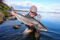 Varmá er ein af vinsælli vorveiðiám landsins og það er sífellt stækkandi hópur manna sem tekur ásfóstri við hana. Það var vaskur hópur manna sem opnaði Varmá í gær og þrátt fyrir oft rysjóttar aðstæður verður ekki annað sagt en að veiðin hafi verið góð. Eins og venjulega eru straumflugur mest notaðar svona í upphafi tímabils þegar fiskurinn er nokkuð sotlinn og tökuglaður og var engin breyting þar á í gær. Hvítar flugur eru oft mjög góðar í vorveiðinni og gaf Hvítur Dýrbítur nokkuð af fiski í gær. Halldór Gunnarsson var við Varmá og landaði hópurinn sem hann fór fyrir 30-40 fiskum og það var víst töluvert sem slapp líka. Eins og er orðið þekkt í Varmá voru bleikjurnar risavaxnar en þær voru allar um 8-10 pund og eins og sést á myndinni sem fylgir fréttinni er þetta engin smá bleikja. Ekki veiddust stórir birtingar þrátt fyrir að einhverjir hafi sést en birtingurinn var yfirleitt um 45-55 sm að lengd. Fiskurinn var mjög vel dreifður um ánna og voru fiskar teknir frá golfvelli og niður að bakka að sögn Halldórs.