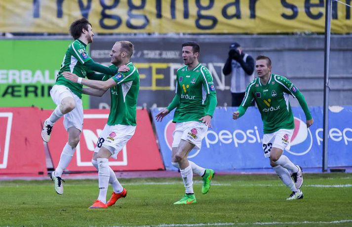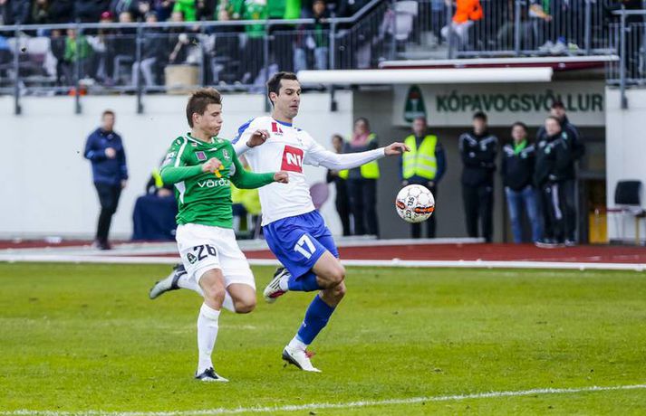 Víkingur Ólafsvík gerði góða ferð í Kópavoginn og vann 1-2 sigur á Breiðabliki í 1. umferð Pepsi-deildar karla í kvöld. Þorsteinn Már Ragnarsson og Kenan Turudija skoruðu mörk Ólsara en þau voru bæði stórglæsileg.Vilhelm Gunnarsson, ljósmyndari Vísis og Fréttablaðsins, var á leiknum í Kópavogi í kvöld og náði þessum skemmtilegum myndum hér fyrir ofan. Þorsteinn kom gestunum yfir á 33. mínútu en Andri Rafn Yeoman jafnaði metin fyrir Blika þegar þrjár mínútur voru liðnar af seinni hálfleik. Turudija skoraði sigurmark Víkinga á 82. mínútu þegar hann þrumaði boltanum í slá og inn. Hann fékk svo að líta sitt annað gula spjald og þar með rautt í uppbótartíma. Það breytti þó engu um úrslitin og nýliðarnir fögnuðu góðum sigri.Af hverju vann Víkingur Ólafsvík? Þrátt fyrir að vaða ekkert í dauðafærum eins og Breiðablik nýttu Ólsarar tvö langskot og skoruðu algjörlega geggjuð mörk. Þó það eigi ekkert að taka af Ólsurum þá geta þeir þakkað Blikum fyrir að brenna af öllum þessum færum. Þegar Arnþór Ari Atlason gat ekki komið boltanum yfir línuna fyrir framan opið mark var nokkuð ljóst að Blikar myndu ekki skora meira í leiknum. Sá getur verið svekktur með sjálfan sig í kvöld. Blikum gekk erfiðlega að skora á undirbúningstímabilinu en þeir fengu færin því Ólsarar bökkuðu of mikið í seinni hálfleik eftir að jöfnunarmarkið kom snemma í seinni hálfleiknum. Ólsarar börðust þó fyrir sínu og átti Christian Martínez nokkrar flottar vörslu.Þessir stóðu upp úr Andri Rafn Yeoman var við það að fá nafnbótina maður leiksins áður en Kenan Turudija ákvað að smella einum í slána og inn. Bosníumaðurinn var einnig flottur inn á miðjunni og vann vel fyrir framan Ólafsvíkur vörnina. Markið var líka algjörlega frábært. Hann fékk vissulega rautt spjald í uppbótartíma en þar tók hann á sig gult spjald fyrir liðið. Andri Rafn Yeoman var bestur í liði Blika. Hann tók völdin á miðjunni í seinni hálfleiknum svolítið eins og þjálfari hans, Arnar Grétarsson, gerði forðum þegar Blikar þurftu á marki að halda. Ef sumarið byrjar svona hjá Andra Rafni verður spennandi að sjá hvað hann gerir meira.Hvað gekk illa? Blikum að skora. Þeir áttu að komast í 2-1 og jafnvel 3-1 áður en Turudija smellti inn sigurmarkinu. Annars, eftir flottan sóknarleik í fyrri hálfleik, urðu nýliðarnir frekar stressaðir og duttu í skotgrafirnar í þeim síðari. Byrjunin á seinni hálfleik hjá Ólsurum var líka skelfileg. Það var gaman að sjá hvernig Ólsararnir spiluðu í fyrri hálfleik: vörðust og pressuðu á sínum vallarhelmingi en sóttu hratt. Eins gott og það var voru þeir ekki góðir í þeim síðari en það slapp í dag.Hvað gerist næst? Blikar fá Jonathan Glenn ekki inn fyrr en í þar næsta leik en þá vantaði hann svo sannarlega í teiginn. Blikarnir spiluðu oft ágætan fótbolta og fengu færi og geta tekið það með sér. Ólsararnir verða að nýta þetta sem byr undir báða vængi. Það tók þá langan tíma að vinna fyrsta leikinn síðast þegar þeir voru uppi. Fagna í kvöld. Nýr dagur á morgun. Koma sér niður úr skýjunum.Ejub Purisevic þjálfari Ólsara.Vísir/VilhelmEjub: Eigum ekki völl til að æfa svona skot Ejub Purisevic þjálfari Ólsara, var eðlilega kátur með sigurinn í kvöld þegar Vísir ræddi við hann eftir leik. Hann var þó ekkert að tapa sér í gleðinni. "Það er rosalega gott að fá þrjú stig í fyrstu umferð gegn sterku liði Breiðabliks," sagði hann stóískur en sáttur. Nýliðarnir nýttu færin sem þeir fengu, það er að segja skotfærin. Ejub vissi alltaf að þetta yrði erfiður leikur. "Við spiluðum svona svipað allt undirbúningstímabilið. Við héldum skipulagi í kvöld og vissum svona ca. hvað Breiðablik ætlaði að gera. Mér fannst það oft á tíðum ganga upp. Við vorum þolinmóðir og biðum eftir tækifærum. Við vissum að við myndum fá færi eða skotfæri. Þetta var ekki auðvelt en gekk upp," sagði Ejub sem var þó ósáttur með byrjunina í seinni hálfleik. Mjög ósáttur. "Ef ég á að segja satt skil ég ekki hvað var í gangi í byrjun seinni hálfleiks. Þetta var fáránlegt og alveg til skammar. Ég hef enga hugmynd um hvað var í gangi þarna," sagði hann. Mörk Ólsara í kvöld voru algjörlega mögnuð. Aðspurður hvort Ejub hefði bara verið með liðið á skotæfingum í allan vetur svaraði hann brosandi: "Nei, ég er bara reyni að setja upp sóknir þannig við klárum með skoti. Stundum gengur það upp og stundum ekki. Ég myndi ekki segja að við værum að æfa þetta mikið enda erum við ekki með völl þar sem við getum æft skot af þessu færi." Ólsarar byrjuðu ekki vel í Pepsi-deildinni fyrir þremur árum og því veit Ejub hvað þetta gefur liðinu. "Þetta gefur okkur mikið hvað varðar sjálfstraustið og við fáum meiri trú á verkefnið. Ef ég á að vera heiðarlegur þá hefði ég verið sáttur með eitt stig en þrjú stig eru enn betra," sagði Ejub Purisevic.Þorsteinn Már: Þetta er bara byrjunin "Þetta var fullkomin byrjun. Þetta var það sem við ætluðum að gera. Við ætluðum ekki bara að vera í vörn og sækja eitt stig eða ekki neitt. Við ætluðum að sækja þrjú stig og það gekk upp í dag." Þetta sagði Þorsteinn Már Ragnarsson, glaðbeittur fyrirliði Ólafsvíkinga, við Vísi eftir sigurinn á Breiðabliki, 2-1, í Kópavogsinum í kvöld. Ólsararnir voru flottir í fyrri hálfleik og reyndu að sækja þegar þeir fengu tækifæri til. Í seinni hálfleik féll liðið of mikið til baka. "Við töluðum um það í hálfleik að við ætluðum ekki að detta niður en svo fáum við þetta mark beint í andlitið. Þá voru þeir ívið betri en síðan skorum við frábært mark þar sem K