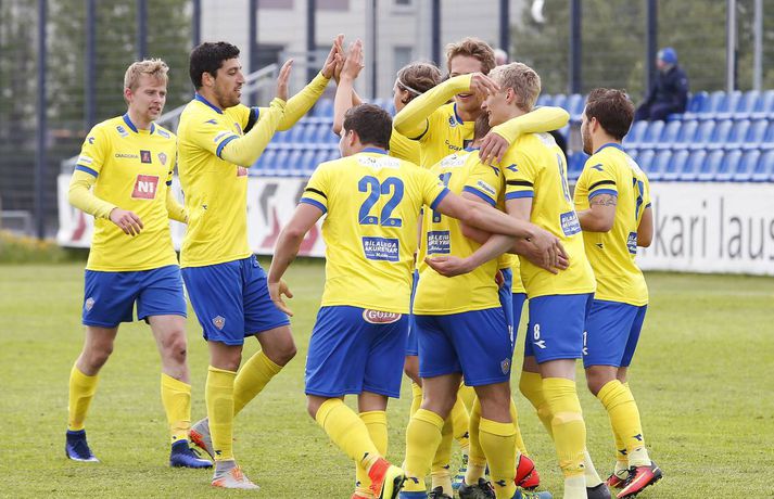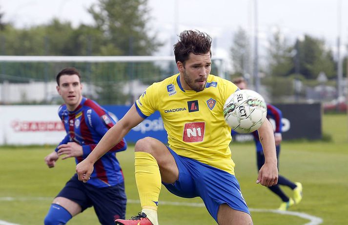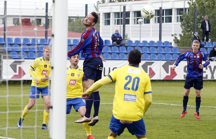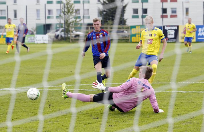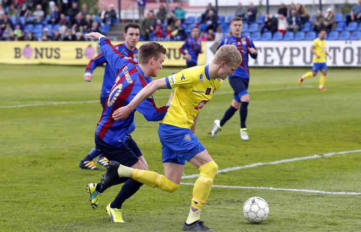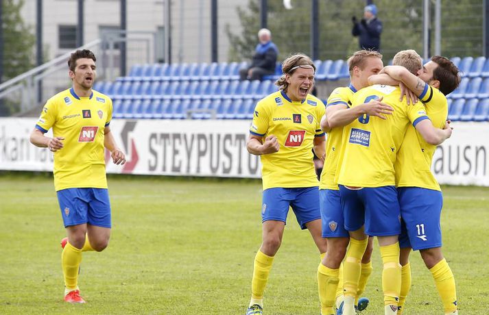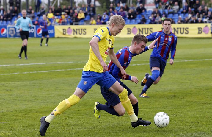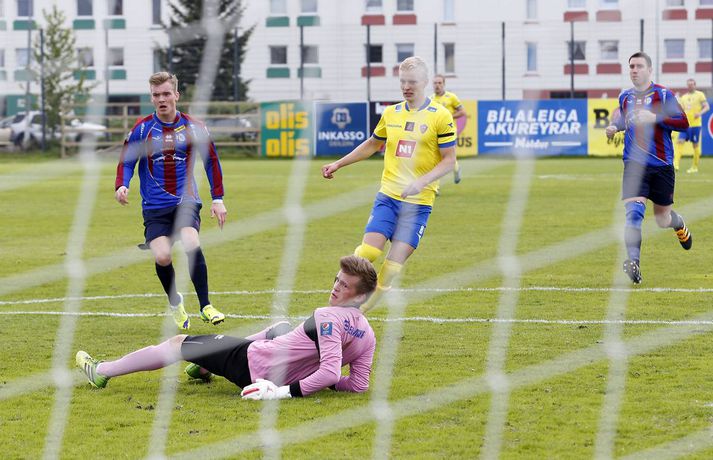 KA gerði góða ferð í Breiðholtið og kom sér á toppinn | Sjáðu mörkin Ingvi Þór Sæmundsson skrifar 12. júní 2016 15:58 KA-menn eru komnir á toppinn. vísir/stefán KA skaust á toppinn í Inkasso-deildinni með 0-2 sigri á Leikni í Breiðholtinu í dag.Stefán Karlsson, ljósmyndari Fréttablaðsins og Vísis, var á Leiknisvelli í dag og tók meðfylgjandi myndir. KA-menn hafa unnið þrjá af síðustu fjórum leikjum sínum og eru komnir með 13 stig, jafn mörg og erkifjendurnir í Þór en markatala þeirra gulu er betri. Húsvíkingurinn ungi Ásgeir Sigurgeirsson kom KA í 0-1 á 6. mínútu eftir slæm mistök Ingvars Ásbjörns Ingvarssonar í vörn Leiknis og þannig var staðan í hálfleik. Ásgeir var aftur á ferðinni á 48. mínútu þegar Halldór Kristinn Halldórsson braut á honum og fékk að líta sitt annað gula spjald og þar með rautt. Einum færri áttu Leiknismenn erfitt uppdráttar og varamaðurinn Halldór Hermann Jónsson gulltryggði sigur gestanna með góðu skoti á 77. mínútu. Fleiri urðu mörkin ekki og KA fagnaði góðum útisigri.Mörkin úr leiknum má sjá hér að neðan. Leiknismenn hafa gefið eftir að undanförnu eftir góða byrjun á tímabilinu en Breiðhyltingar hafa tapað þremur leikjum í röð í deild og bikar.vísir/stefán Pepsi Max-deild karla Mest lesið Bíll Shaquille O'Neal enn ófundinn Körfubolti Uppgjörið: Ísland - Norður-Írland 3-0 | Áfram hluti af elítunni Íslenski boltinn Fluttu fréttir af snjónum í Reykjavík Fótbolti Formaðurinn hjálpaði til við að moka völlinn Fótbolti Búið að finna leiðina til að pirra og vinna Liverpool Enski boltinn Snjóbræðslukerfi Þróttar kom KSÍ til bjargar Fótbolti Tölur úr Bestu 2025: Klúðraði langflestum dauðafærum í sumar Íslenski boltinn Epicbet sýni handboltann í leyfisleysi: „Enda ólöglegar síður“ Handbolti Skiptiborð hjá stelpunum í kvöld Körfubolti Segja spurningar vakna um stöðu Elísabetar Fótbolti Fleiri fréttir Uppgjörið: Ísland - Norður-Írland 3-0 | Áfram hluti af elítunni Tölur úr Bestu 2025: Klúðraði langflestum dauðafærum í sumar FH bíður með að tilkynna nýjan þjálfara Óskar Hrafn fer ekki fet Birnir frá Akureyri í Garðabæ Hættir með Fram Heimir kynntur til leiks í Árbænum Túfa rekinn frá Val Leyndarmáli ljóstrað upp þegar Heimir og Björn kvöddu Leikmenn kusu Patrick og Guðmund Sjáðu bananabombu Antons Loga og önnur síðustu mörk tímabilsins Uppgjörið: Stjarnan - Breiðablik 2-3 | Stjarnan í Evrópu þrátt fyrir tap „Held að ég geti ekki gert mikið meira“ Uppgjörið: Vestri - KR 1-5 | KR bjargaði sér og sendi Vestra í Lengjudeildina Uppgjörið: ÍA - Afturelding 1-0 | Afturelding staldraði stutt við í efstu deild Uppgjörið: Víkingur - Valur 2-0 | Meistararnir klára tímabilið með stæl Uppgjörið: ÍBV - KA 3-4 | KA tryggði sér Forsetabikarinn þriðja árið í röð Ráðast örlög Aftureldingar inni í höll? „Þetta verður bara veisla fyrir vestan“ Vestri og KR mætast á fyrsta degi vetrar: „Vona að það snjói ekki í nótt“ Lárus Orri framlengir á Skaganum „Kominn tími á sigur í Sambandsdeildinni“ Tekur við af læriföður sínum Snjó kyngir niður á Akureyri og Evrópuleikur færður inn „Veistu hvað leikmaðurinn sagði við mig?“ „Ég þarf bara að láta verkin tala“ Valur og Sigurður Egill senda frá sér sameiginlega yfirlýsingu Hemmi Hreiðars orðaður við Val Katrín kvödd með fallegum hætti: „Ég hef aldrei séð þetta áður“ Sjáðu þrumufleyg Fred og snöggt svar Stjörnunnar Sjá meira