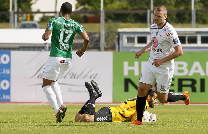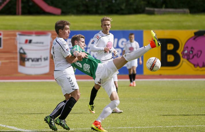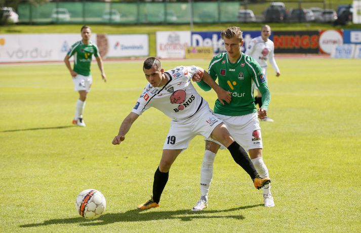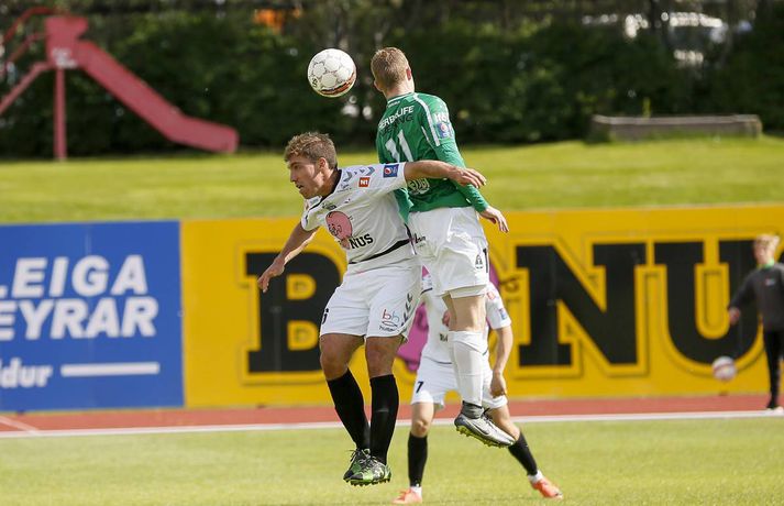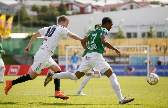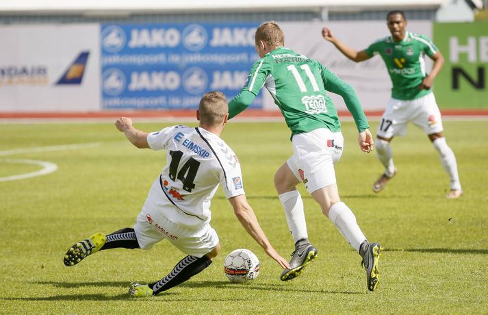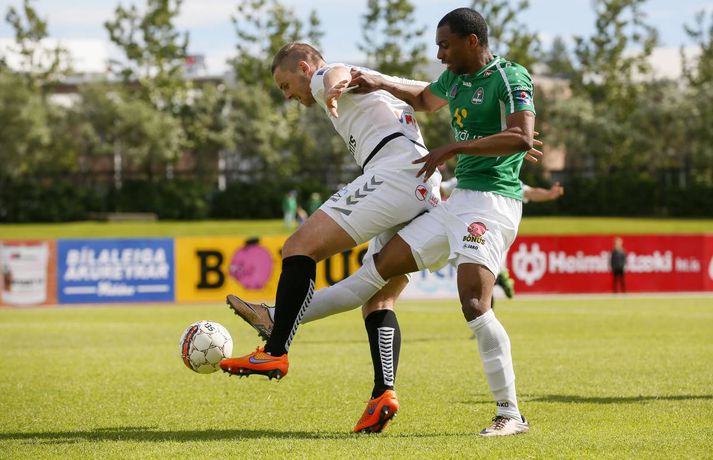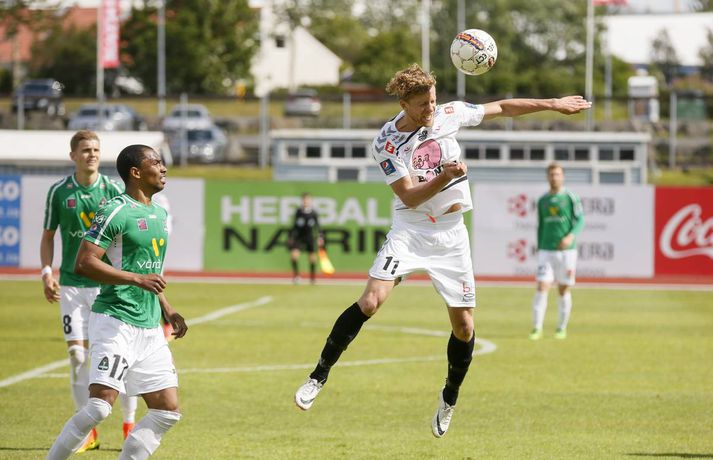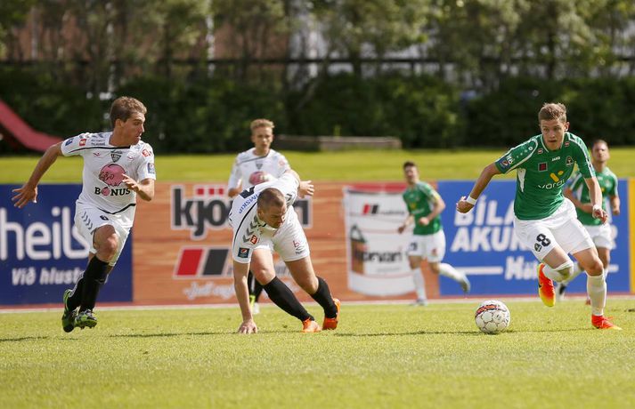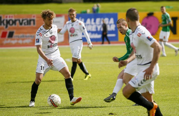 Umfjöllun, viðtöl og myndir: Breiðablik - ÍBV 2-3 | Endurkomusigur Eyjamanna skilaði þeim í undanúrslit Kristinn Páll Teitsson á Kópavogsvelli skrifar 3. júlí 2016 17:15 Úr leik liðanna í dag. vísir/eyþór Eyjamenn unnu magnaðan 3-2 endurkomusigur á Blikum á Kópavogsvelli í 8-liða úrslitum Borgunarbikarsins í kvöld en eftir að hafa lent 0-2 undir sneru Eyjamenn leiknum sér í hag með þremur mörkum á tíu mínútum. Blikar náðu tveggja marka forskoti í upphafi seinni hálfleiks eftir að hafa skorað mark sitt hvoru megin við hálfleikinn, það fyrra eftir glæsilega rispu frá Gísla Eyjólfssyni. Það tók Eyjamenn hinsvegar aðeins sjö mínútur að jafna metin en þar voru að verki Hafsteinn Briem og Simon Smidt eftir góðar sendingar frá Aroni Bjarnasyni. Eyjamenn fullkomnuðu endurkomuna með þriðja markinu stuttu síðar en þar var að verki Smidt eftir að hafa leikið á varnarmann Blika og skorað með föstu skoti í hornið. Blikar reyndu að breyta til og bæta sóknarleikinn síðasta hálftímann en þrátt fyrir ágætis pressu gekk leikmönnum liðsins illa að skapa færi og náðu fyrir vikið ekki að jafna metin í tæka tíð.Afhverju vann ÍBV? Eyjamenn höfðu lítið skapað sér fram að marki Hafsteins á upphafsmínútum seinni hálfleiks en það mark virtist vekja von í brjósti leikmanna liðsins. Sjö mínútum síðar höfðu Eyjamenn bætt við tveimur mörkum og voru búnir að snúa leiknum sér í hag en það virtist slá Blika af laginu. Derby Carillo í marki Eyjamanna hafði það nokkuð náðugt í leiknum því varnarmenn liðsins gáfu fá færi á sér og var allt liðið að verjast sem eitt.Þessir stóðu upp úr Í liði heimamanna var Gísli Eyjólfsson manna sprækastur á miðjunni, hann kom Blikum yfir og ógnaði oft með hlaupum af miðjunni inn í vítateig Eyjamanna. Arnþór Ari Atlason var öflugur fyrstu mínúturnar eftir að hafa komið inn af varamannabekknum en minna sást til hans eftir því sem leið á seinni hálfleikinn. Í liði ÍBV átti Simon Smidt frábæran leik í seinni hálfleik en stærstan hluta fyrri hálfleiks var hann að velta sér upp úr dómgæslunni og pirra sig á óþarfa hlutum. Þá stóð miðvarðapar Eyjamanna, Avni Pepa og Hafstenn Briem, vakt sína með prýði en fyrir utan nokkrar rispur Blika upp vinstri kantinn náðu Blikar lítið að ógna marki Eyjamanna.Hvað gekk illa? Liðunum gekk illa að skapa færi framan af og var í raun ekkert sem benti til þess að Blikar væru betra liðið þegar Arnór Sveinn Aðalsteinsson kom Blikum í 2-0. Eftir þriðja mark Eyjamanna gátu þeir leyft sér að falla aftar á völlinn og fátt um fína drætti í sóknarleik liðanna síðasta hálftímann. Blikar fengu margoft í leiknum góð færi til að senda boltann fyrir markið en fyrirgjafirnar voru ekki að rata á réttan mann og skilaði skipting Arnars Grétarssonar að senda Jonathan Glenn inná litlu.Hvað gerist næst? Blikar eiga erfiðan leik gegn Jelgava í Lettlandi í undankeppni Evrópudeildarinnar á fimmtudaginn þar sem liðið þarf að vinna eftir að hafa tapað heimaleiknum 2-3 á dögunum. Eyjamenn komust aftur á sigurbraut í dag eftir tvo tapleiki í röð en næsti leikur liðsins er gegn Val eftir rúma viku en stuðnings- og leikmenn liðsins geta beðið spenntir eftir undanúrslitaleiknum í bikarnum. Bjarni Jó: Það er bikarfiðringur í liðinu„Það er bara ótrúlega vel gert að ná að vinna sig aftur inn í leikinn eftir að hafa lent 2-0 undir á þessum erfiða útivelli,“ sagði Bjarni Jóhannesson, þjálfari ÍBV, sigurreyfur eftir leikinn. „Markið hjá Hafsteini kveikir í okkur og við vorum gríðarlega öruggir í öllum aðgerðum eftir það. Við náðum að snúa þessu okkur í hag og vinna Stjörnuna á útivelli, það er greinilega bikarfiðringur í okkur.“ Bjarni var ósáttur með spilamennsku liðsins framan af. „Við gerðum þeim auðvelt fyrir í fyrri hálfleik, þeir pressuðu okkur og eyddu púðri í það og bestu færin þeirra komu eftir sendingar frá okkur. Við vorum ósáttir með það og fengum svo kjaftshögg í upphafi seinni en við héldum bara áfram.“ Eyjamönnum gekk betur að loka á sóknir Blika eftir því sem leið á leikinn. „Við vissum að við þyrftum að vera þolinmóðir í dag. Það er mikið álag á Blikum þessa stundina, þeir spiluðu erfiðan leik á fimmtudaginn þar sem þeir þurftu að vinna upp forskot og við ætluðum okkur að nýta okkur það. “ Hafsteinn: Höfum oft brotnað við að lenda undir„Sem betur fer náði ég og við að svara fyrir fyrsta markið, það var hreint út sagt slakur varnarleikur hjá okkur,“ sagði Hafsteinn Briem, miðvörður ÍBV, sáttur að leikslokum. Hafsteinn leit ekkert sérstaklega vel út í fyrsta marki Blika en hann bætti upp fyrir það þegar hann kom ÍBV á bragðið og minnkaði muninn. „Við vorum aðeins of kaldir á boltanum, sérstaklega í fyrra markinu en við töluðum saman um að bæta það í hálfleik. Við fáum á okkur reyndar mark strax en svo settum við allt í gang, unnum okkur aftur inn í leikinn og áttum sigurinn skilið.“ Eyjamenn sýndu mikinn karakter og héldu áfram að berjast eftir að hafa lent 0-2 undir á upphafsmínútum seinni hálfleiks. „Við höfum oft brotnað undir þessum kringumstæðum og ekki náð að vinna okkur aftur inn í leikina en við sýndum mikinn karakter í dag. Við þurfum að halda áfram á þessari braut og þá er aldrei að vita hvernig það endar,“ sagði Hafsteinn en þetta er annað árið í röð sem ÍBV kemst í úrslit bikarsins. „Í fyrra komumst við líka í undanúrslitin en við runnum á rassinn þegar á hólminn var komið. Allur hópurinn er staðráðinn í að gera betur núna.“ Oliver: Menn verða að geta tekið því að fá á sig mark og rifið sig í gang„Eins og 