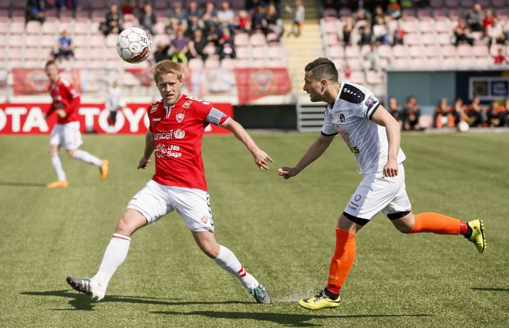 Umfjöllun, viðtöl og myndir: Valur - Fylkir 5-0 | Öruggt hjá bikarmeisturunum Ingvi Þór Sæmundsson á Hlíðarenda skrifar 3. júlí 2016 17:00 Úr leik liðanna í dag. vísir/eyþór Valsmenn eru komnir í undanúrslit Borgunarbikars karla eftir stórsigur á Fylki, 5-0, á Valsvellinum í dag. Eins og tölurnar gefa til kynna voru Valsmenn miklu sterkari aðilinn í leiknum og áttu í litlum vandræðum með slaka Fylkismenn. Rolf Toft kom Val yfir strax á 4. mínútu og landi hans, Nikolaj Hansen, skoraði tvö næstu mörk heimamanna. Staðan var 3-0 í hálfleik en Kristinn Freyr Sigurðsson bætti tveimur mörkum við á þriggja mínútna kafla í seinni hálfleik og þar við sat. Lokatölur 5-0 og bikarmeistararnir eru komnir í undanúrslit.Af hverju vann Valur? Valsmenn komust yfir strax á 4. mínútu og þá fór leikplan Fylkis í vaskinn. Þeir vissu ekki hvort eða hvernig þeir ætluðu að pressa og Valsmenn spiluðu auðveldlega í gegnum þá. Heimamenn sköpuðu sér engan aragrúa af færum - skoruðu fimm mörk úr fimm skotum á markið - en voru samt miklu sterkari aðilinn, héldu boltanum vel og létu Fylkismenn hlaupa. Valur átti margar fallegar sóknir og fóru létt með að opna Fylkisvörnina. Valsmenn gáfu svo hvergi eftir í seinni hálfleik og Kristinn Freyr bætti tveimur mörkum við og fullkomnaði öruggan 5-0 sigur.Þessir stóðu upp úr Allt Valsliðið átti góðan leik í dag. Einar Karl Ingvarsson kom inn í byrjunarliðið og dreifði boltanum vel á miðjunni ásamt Hauki Páli Sigurðssyni. Fjórir fremstu menn Vals voru svo stórhættulegir. Toft fann sig vel á hægri kantinum, skoraði eitt mark og átti tvær stoðsendingar og kannski er það hans besta staða í Valsliðinu. Kristinn Freyr og Sigurður Egill Lárusson voru einnig öflugir og Nikolaj Hansen skoraði tvö mörk og er því kominn með fjögur mörk í Borgunarbikarnum og sex alls í sumar. Ragnar Bragi Sveinsson var líflegastur hjá Fylki. Bestu færi Árbæinga féllu honum í skaut en hann nýtti þau illa.Hvað gekk illa? Meira og minna allt hjá Fylki. Fyrsta markið virtist slá þá algjörlega út af laginu og liðið virkaði ráðalaust. Þeir reyndu stundum að pressa en þá ekki á öllu liðinu og Valsmenn áttu auðvelt með að leysa pressuna. Og þrátt fyrir að vörn Fylkis lægi frekar aftarlega var alltof einfalt fyrir heimamenn að stinga boltanum inn fyrir vörn Árbæinga. Í sókninni var svo lítið að frétta. Ragnar Bragi reyndi hvað hann gat en fékk litla hjálp. Albert Brynjar Ingason var ekki með og Fylkismenn söknuðu hans greinilega. Jose Sito Enrique náði ekki að fylgja góðum leik gegn Víkingi eftir og Andrés Már Jóhannesson var ekki með frekar en í mörgum leikjum í sumar.Hvað gerist næst? Valsmenn fara næst til Danmerkur og leika seinni leikinn gegn Brøndby á fimmtudaginn. Á mánudeginum eftir viku bíður þeirra svo heimaleikur við ÍBV. Fylkismenn eiga ekki leik fyrr en 11. júlí þegar þeir sækja Þrótt heim. Árbæingar unnu sinn fyrsta deildarsigur í síðasta leik en eru komnir aftur á byrjunarreit eftir skelfilega frammistöðu og skell í dag. Það er svo spurning hvort það verði kominn nýr maður í brúna fyrir leikinn gegn Þrótti. Ásmundur Arnarsson var látinn taka pokann sinn eftir 4-0 tap fyrir ÍBV í 8-liða úrslitum Borgunarbikarsins í fyrra og það er spurning hvort sömu örlög bíða Hermanns Hreiðarssonar eftir tapið í dag.Ólafur: Reyndum að hafa áhuga á leiknum Það var létt yfir Ólafi Jóhannessyni, þjálfara Vals, eftir öruggan sigur hans manna á Fylki, 5-0, í 8-liða úrslitum Borgunarbikarsins í dag. „Þetta var fínn leikur og ég er ánægður með okkar framlag. Við mættum grimmir til leiks og gáfum þeim ekki möguleika,“ sagði Ólafur en Valur komst yfir strax á 4. mínútu leiksins. „Markmiðið var að byrja leikinn grimmt. Leikurinn fer fram á þannig tíma að það er kannski ekki mikill áhugi á honum hjá neinum. En við reyndum að hafa áhuga, höfðum hann og það hjálpaði okkur mjög mikið.“ Ólafur var ánægður með hvernig hans menn stjórnuðu leiknum og gáfu Fylkismönnum engin grið. „Mér fannst við koma grimmari til leiks en Fylkismennirnir og vorum með yfirhöndina þótt mér finnist 5-0 vera full stór sigur miðað við gang leiksins,“ sagði Ólafur en Valsmenn skutu fimm sinnum á markið í leiknum og skoruðu fimm mörk. „Það er frábært. Við höfum verið í basli fyrir framan markið og með að nýta færin okkar þannig að ég er mjög ánægður með það,“ sagði Ólafur að endingu.Haukur Páll: Áttum margar flottar sóknir „Við komum mjög vel gíraðir í þennan leik og skoruðum mjög góð mörk eftir góða spilkafla. Það er ánægjulegt að við höfum komið svona vel stemmdir til leiks eftir seinasta leik,“ sagði Haukur Páll Sigurðsson, fyrirliði Vals, eftir stórsigurinn á Fylki í 8-liða úrslitum Borgunarbikarsins í dag. Valsmenn töpuðu 1-4 fyrir Bröndby á fimmtudaginn en það virtist ekki hafa mikil áhrif á þá í leiknum í dag þar sem þeir voru mun sterkari aðilinn. „Við héldum boltanum mjög vel í dag og áttum margar flottar sóknir og skoruðum fimm góð mörk,“ sagði Haukur sem fannst sigurinn aldrei í hættu. „Ég slaka s.s. aldrei á inni á vellinum og vil keyra mig allan út. Við töluðum um það í hálfleik að slaka ekkert á og halda áfram sama dampi og það gekk svo sannarlega eftir,“ sagði fyrirliðinn. Hann vonast til að sigurinn í dag gefi Valsmönnum byr undir báða vængi og þeir fari að hífa sig ofar í töfluna í Pepsi-deildinni. „Jú, klárlega. En fyrst þurfum við að klára þetta Evrópuverkefni. Við förum út á þriðjudaginn og klárum leikinn vonandi með sæmd,“ sagði Haukur en seinni leikurinn gegn Bröndby fer fram á fimmtudaginn. Pepsi Max-deild karla Mest
