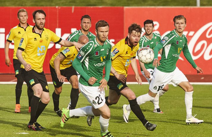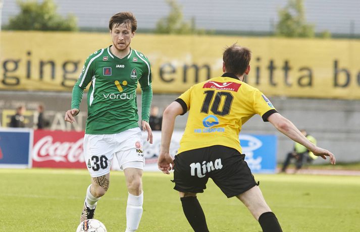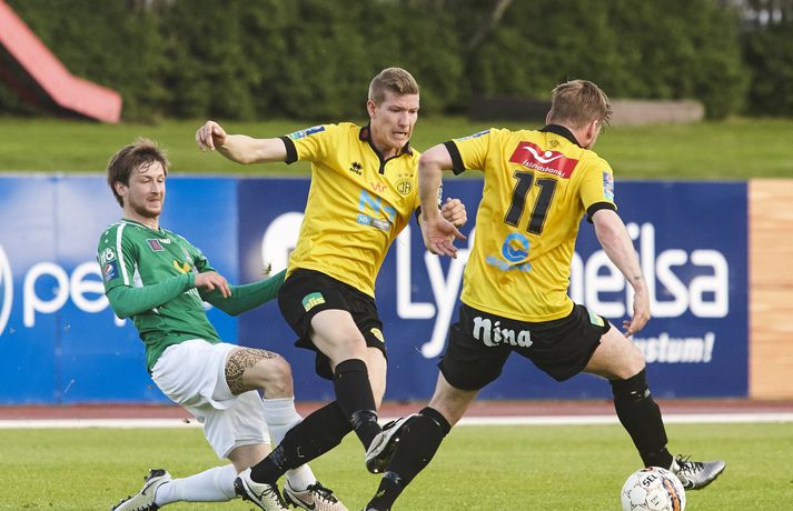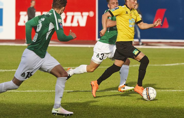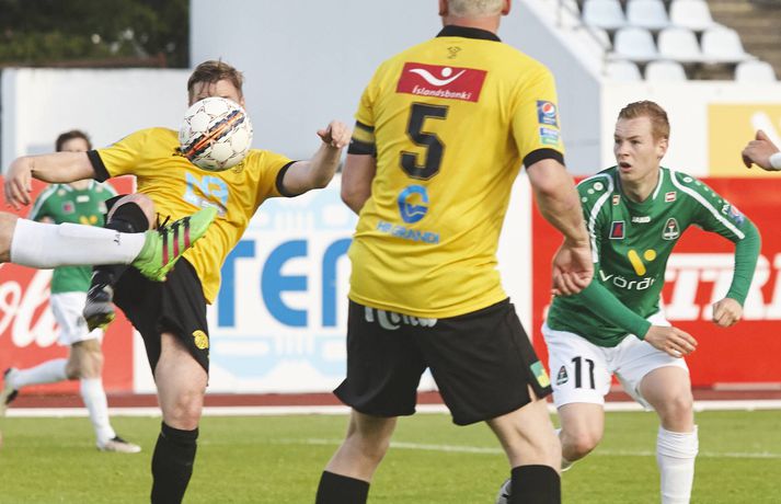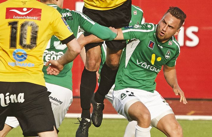 Umfjöllun, viðtöl og einkunnir: Breiðablik - ÍA 0-1 | Þriðji sigur Skagamanna í röð Smári Jökull Jónsson á Kópavogsvelli skrifar 11. júlí 2016 22:30 Garðar Gunnlaugsson skoraði enn og aftur og tryggði ÍA sigurinn. VÍSIR/anton brink Skagamenn unnu góðan útisigur á Breiðablik í 10.umferð Pepsi-deildar karla í kvöld. Garðar Gunnlaugsson skoraði sigurmarkið á 11.mínútu en það er hans níunda mark í deildinni og er hann þar með búinn að skora 9 af 12 mörkum Skagamanna í sumar. Blikar voru meira með boltann í leiknum en gekk fremur illa að skapa sér dauðafæri. Ellert Hreinsson fékk gott færi í síðari hálfleiknum en skaut framhjá. Þá náði Jonathan Glenn að koma boltanum í netið á lokamínútunum en var dæmdur rangstæður. Sigurinn er sá þriðji í röð hjá Skagamönnum og færa þeir sig upp í 8.sæti deildarinnar. Blikar sitja hins vegar í 5.sæti en þeir hafa ekki unnið fótboltaleik síðan 15.júní.Af hverju unnu Skagamenn?Einfaldasta skýringin er að þeir nýttu sitt færi á meðan heimamenn nýttu ekki sín. Ian Willimsson tók aukaspyrnu á 11.mínútu og setti boltann beint á kollinn á Garðari Gunnlaugssyni sem getur hreinlega ekki hætt að skora. Blikar reyndu hvað þeir gátu til þess að jafna metin en það vantaði upp á gæðin á síðasta þriðjungnum. Blikar reyndu oft á tíðum fyrirgjafir sem annaðhvort Árni Snær í marki ÍA náði að handsama eða varnarmenn ÍA að koma frá. Þegar þær virtust ætla að skapa hættu voru framherjar þeirra grænklæddu ekki nógu gráðugir í teignum. Vörn Skagamanna spilaði vel í dag og þeir unnu fyrir þessum þremur stigum.Þessir stóðu upp úr:Hjá Skagamönnum var Ármann Smári Björnsson fremstur meðal jafningja. Hann spilaði eins og herforingi í vörninni, skallaði boltann margoft frá og stýrði félögum sínum með harðri hendi. Árni Snær í markinu greip inn í þegar á þurfti að halda og þá átti Darren Lough fínan leik í vinstri bakverðinum. Svo má auðvitað ekki gleyma Garðari Gunnlaugssyni. Maðurinn getur ekki hætt að skora og er hann búinn að skora 75% af mörkum ÍA í sumar. Það er rosaleg tölfræði og ef Garðar týnir skotskónum verða Skagamenn í vandræðum. Skallamarkið hans í dag var mjög gott og tryggði stigin þrjú. Hjá Blikum var það helst Gísli Eyjólfsson sem getur gengið sæmilega sáttur frá borði en hann ógnaði með hættulegum skotum og barðist ágætlega. Davíð Kristján var á köflum ógnandi þegar hann kom upp vinstri kantinn og Arnþór Ari átti ágæta spretti.Hvað gekk illa?Það verður að minnast á hornspyrnur Breiðabliks. Þeir fengu 12 hornspyrnur í leiknum sem sköpuðu afar litla hættu. Þær voru annaðhvort skallaðar frá af varnarmönnum ÍA, gripnar af Árna Snæ í markinu eða náðu ekki inn í teiginn. Daniel Bamberg tók flestar af spyrnunum og spurningin er hvort Arnar Grétarsson þarf að finna einhvern annan í þetta hlutverk fyrir næsta leik. Reyndar gengu spyrnurnar ekkert mikið betur eftir að Bamberg fór af velli. Sóknarleikur Blika gekk heldur ekki vel. Það vantaði bæði gæði og græðgi á síðasta hluta vallarins og það verður kærkomið fyrir Arnar að fá Árna Vilhjálmsson inn í liðið gegn Fjölni í næstu umferð.Hvað gerist næst?Breiðablik fer í Grafarvoginn og mæta þar Fjölnismönnum. Fjölnir hefur átt góðu gengi að fagna í sumar en töpuðu gegn Stjörnunni í kvöld og vilja án efa koma sér aftur á sigurbraut. Breiðablik fær Árna Vilhjálmsson inn í hópinn en hann er á láni hjá félaginu frá norska liðinu Lilleström. Árni er gallharður Bliki og hefur á að skipa gæðum sem þeir grænklæddu þurfa á að halda. Skagamenn fá Valsara í heimsókn á Skaganum á sunnudaginn. Þeir geta farið upp fyrir Valsmenn í deildinni með sigri og það verður vafalaust gríðarlega hart barist í þeim leik. Það verður athyglisvert að sjá hvort Skagamenn ná þar í fjórða sigurinn í röð eða hvort Valsarar stöðva sigurgönguna. Gunnlaugur: Við unnum svo sannarlega fyrir þessuÁrmann Smári Björnsson var frábær í vörn SkagamannaVísir/Anton BrinkGunnlaugur Jónsson þjálfari ÍA var að vonum ánægður þegar Vísir náði af honum tali eftir sigurinn gegn Blikum á útivelli í kvöld. „Það er frábært að koma hingað og ná sigri. Við fórum erfiða leið og þeir lágu á okkur í seinni hálfleik. Við getum þakkað frábærum varnarleik og góðum markmanni fyrir sigurinn í dag. Þeir áttu mikið af fyrirgjöfum og sköpuðu hættu en þeir voru ekki mikið að ná að opna okkur. Við unnum svo sannarlega fyrir þessu,“ sagði kampakátur Gunnlaugur eftir þriðja sigur Skagamanna í röð. Breiðablik var mun meira með boltann í síðari hálfleik og pressuðu oft á tíðum Skagamenn ansi hart. Gunnlaugur viðurkenndi að hann var orðinn svolítið stressaður undir lokin. „Þeir sóttu náttúrulega stíft og auðvitað verður maður smeykur. En við vorum samt með leikinn í fanginu, eins og Guðmundur Hreiðarsson myndi segja. Við vorum þéttir en fyrirgjafirnar þeirra voru erfiðar þegar þeir fjölguðu í teignum. Það er oft stutt á milli í þessu,“ bætti Gunnlaugur við. Skagamenn unnu í kvöld sinn þriðja sigur í röð eftir fremur brösótta byrjun. „Við notuðum EM fríið skynsamlega. Við ákváðum að byrja upp á nýtt. KR sigurinn gaf okkur mikið sjálfstraust, sérstaklega hvernig við unnum hann. Síðan unnum við frábæran sigur gegn Stjörnunni og komum svo hingað og sækjum þrjú stig. Það er meira sjálfstraust, meiri leikgleði og meiri samheldni í liðinu. Þetta helst allt í hendur,“ sagði Gunnlaugur. Garðar Gunnlaugsson hefur skorað 75% marka ÍA í sumar og Gunnlaugur sagði mikilvægi hans í liðinu mikið. „Augljóslega er hann gríðarlega mikilvægur. Hann