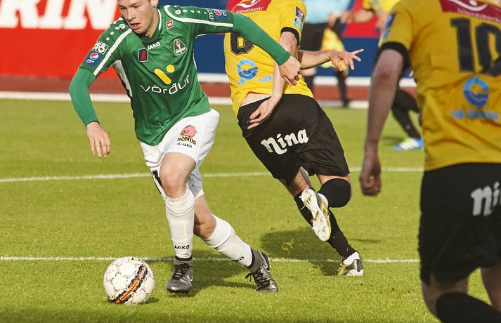 Skagamenn unnu góðan útisigur á Breiðablik í 10.umferð Pepsi-deildar karla í kvöld. Garðar Gunnlaugsson skoraði sigurmarkið á 11.mínútu en það er hans níunda mark í deildinni og er hann þar með búinn að skora 9 af 12 mörkum Skagamanna í sumar. Blikar voru meira með boltann í leiknum en gekk fremur illa að skapa sér dauðafæri. Ellert Hreinsson fékk gott færi í síðari hálfleiknum en skaut framhjá. Þá náði Jonathan Glenn að koma boltanum í netið á lokamínútunum en var dæmdur rangstæður. Sigurinn er sá þriðji í röð hjá Skagamönnum og færa þeir sig upp í 8.sæti deildarinnar. Blikar sitja hins vegar í 5.sæti en þeir hafa ekki unnið fótboltaleik síðan 15.júní.Af hverju unnu Skagamenn?Einfaldasta skýringin er að þeir nýttu sitt færi á meðan heimamenn nýttu ekki sín. Ian Willimsson tók aukaspyrnu á 11.mínútu og setti boltann beint á kollinn á Garðari Gunnlaugssyni sem getur hreinlega ekki hætt að skora. Blikar reyndu hvað þeir gátu til þess að jafna metin en það vantaði upp á gæðin á síðasta þriðjungnum. Blikar reyndu oft á tíðum fyrirgjafir sem annaðhvort Árni Snær í marki ÍA náði að handsama eða varnarmenn ÍA að koma frá. Þegar þær virtust ætla að skapa hættu voru framherjar þeirra grænklæddu ekki nógu gráðugir í teignum. Vörn Skagamanna spilaði vel í dag og þeir unnu fyrir þessum þremur stigum.Þessir stóðu upp úr:Hjá Skagamönnum var Ármann Smári Björnsson fremstur meðal jafningja. Hann spilaði eins og herforingi í vörninni, skallaði boltann margoft frá og stýrði félögum sínum með harðri hendi. Árni Snær í markinu greip inn í þegar á þurfti að halda og þá átti Darren Lough fínan leik í vinstri bakverðinum. Svo má auðvitað ekki gleyma Garðari Gunnlaugssyni. Maðurinn getur ekki hætt að skora og er hann búinn að skora 75% af mörkum ÍA í sumar. Það er rosaleg tölfræði og ef Garðar týnir skotskónum verða Skagamenn í vandræðum. Skallamarkið hans í dag var mjög gott og tryggði stigin þrjú. Hjá Blikum var það helst Gísli Eyjólfsson sem getur gengið sæmilega sáttur frá borði en hann ógnaði með hættulegum skotum og barðist ágætlega. Davíð Kristján var á köflum ógnandi þegar hann kom upp vinstri kantinn og Arnþór Ari átti ágæta spretti.Hvað gekk illa?Það verður að minnast á hornspyrnur Breiðabliks. Þeir fengu 12 hornspyrnur í leiknum sem sköpuðu afar litla hættu. Þær voru annaðhvort skallaðar frá af varnarmönnum ÍA, gripnar af Árna Snæ í markinu eða náðu ekki inn í teiginn. Daniel Bamberg tók flestar af spyrnunum og spurningin er hvort Arnar Grétarsson þarf að finna einhvern annan í þetta hlutverk fyrir næsta leik. Reyndar gengu spyrnurnar ekkert mikið betur eftir að Bamberg fór af velli. Sóknarleikur Blika gekk heldur ekki vel. Það vantaði bæði gæði og græðgi á síðasta hluta vallarins og það verður kærkomið fyrir Arnar að fá Árna Vilhjálmsson inn í liðið gegn Fjölni í næstu umferð.Hvað gerist næst?Breiðablik fer í Grafarvoginn og mæta þar Fjölnismönnum. Fjölnir hefur átt góðu gengi að fagna í sumar en töpuðu gegn Stjörnunni í kvöld og vilja án efa koma sér aftur á sigurbraut. Breiðablik fær Árna Vilhjálmsson inn í hópinn en hann er á láni hjá félaginu frá norska liðinu Lilleström. Árni er gallharður Bliki og hefur á að skipa gæðum sem þeir grænklæddu þurfa á að halda. Skagamenn fá Valsara í heimsókn á Skaganum á sunnudaginn. Þeir geta farið upp fyrir Valsmenn í deildinni með sigri og það verður vafalaust gríðarlega hart barist í þeim leik. Það verður athyglisvert að sjá hvort Skagamenn ná þar í fjórða sigurinn í röð eða hvort Valsarar stöðva sigurgönguna. Gunnlaugur: Við unnum svo sannarlega fyrir þessuÁrmann Smári Björnsson var frábær í vörn SkagamannaVísir/Anton BrinkGunnlaugur Jónsson þjálfari ÍA var að vonum ánægður þegar Vísir náði af honum tali eftir sigurinn gegn Blikum á útivelli í kvöld. „Það er frábært að koma hingað og ná sigri. Við fórum erfiða leið og þeir lágu á okkur í seinni hálfleik. Við getum þakkað frábærum varnarleik og góðum markmanni fyrir sigurinn í dag. Þeir áttu mikið af fyrirgjöfum og sköpuðu hættu en þeir voru ekki mikið að ná að opna okkur. Við unnum svo sannarlega fyrir þessu,“ sagði kampakátur Gunnlaugur eftir þriðja sigur Skagamanna í röð. Breiðablik var mun meira með boltann í síðari hálfleik og pressuðu oft á tíðum Skagamenn ansi hart. Gunnlaugur viðurkenndi að hann var orðinn svolítið stressaður undir lokin. „Þeir sóttu náttúrulega stíft og auðvitað verður maður smeykur. En við vorum samt með leikinn í fanginu, eins og Guðmundur Hreiðarsson myndi segja. Við vorum þéttir en fyrirgjafirnar þeirra voru erfiðar þegar þeir fjölguðu í teignum. Það er oft stutt á milli í þessu,“ bætti Gunnlaugur við. Skagamenn unnu í kvöld sinn þriðja sigur í röð eftir fremur brösótta byrjun. „Við notuðum EM fríið skynsamlega. Við ákváðum að byrja upp á nýtt. KR sigurinn gaf okkur mikið sjálfstraust, sérstaklega hvernig við unnum hann. Síðan unnum við frábæran sigur gegn Stjörnunni og komum svo hingað og sækjum þrjú stig. Það er meira sjálfstraust, meiri leikgleði og meiri samheldni í liðinu. Þetta helst allt í hendur,“ sagði Gunnlaugur. Garðar Gunnlaugsson hefur skorað 75% marka ÍA í sumar og Gunnlaugur sagði mikilvægi hans í liðinu mikið. „Augljóslega er hann gríðarlega mikilvægur. Hann er kominn með 9 mörk í deildinni sem er jafn mikið og í fyrra. Það gefur auga leið að það er mikilvægt að hafa einhvern sem skorar mörk. Þau breyta leikjum og skipta öllu máli,“ sagði Gunnlaugur Jónsson þjálfari ÍA að lokum. Arn