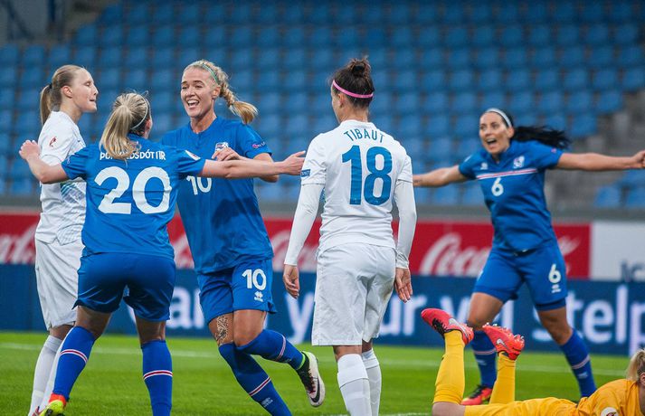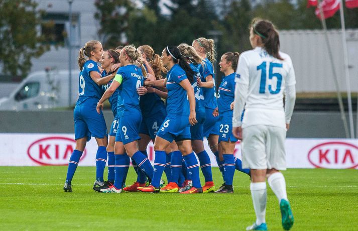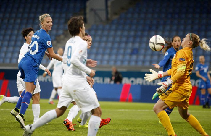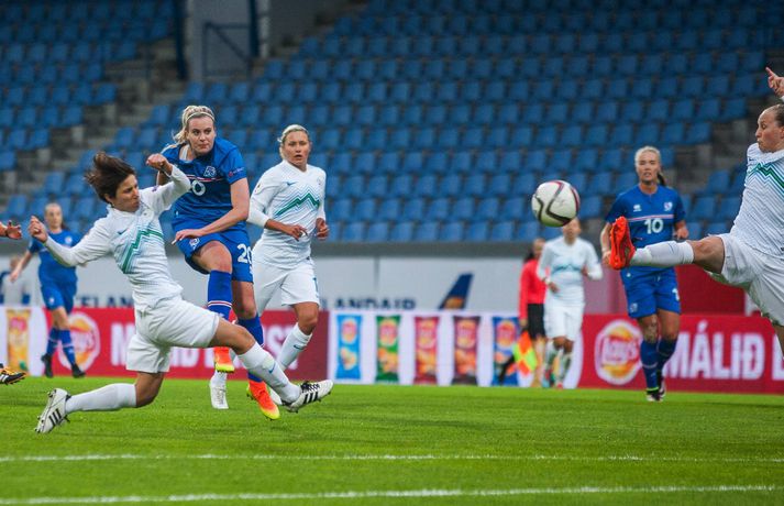 Íslenska kvennalandsliðið í fótbolta hélt upp á EM-sætið með 4-0 stórsigri á Slóveníu í næstsíðasta leik sínum í undankeppni EM 2017. Ísland hefur unnið alla sjö leiki sína í undankeppninni, skorað 33 mörk og ekki enn fengið á sig mark. Dagný Brynjarsdóttir skoraði tvívegis í leiknum í kvöld og þær Hallbera Guðný Gísladóttir og Gunnhildur Yrsa Jónsdóttir sitt markið hvor. Rúmlega 6000 áhorfendur lögðu leið sína á Laugardalsvöllinn til að fylgjast með stelpunum okkar en það vantaði ekki mikið upp á til að bæta áhorfendamet kvennalandsliðsins.Anton Brink, ljósmyndari Fréttablaðsins og Vísis, var líka á Laugardalsvellinum í kvöld og tók myndirnar sem fylgja fréttinni.vísir/antonvísir/antonvísir/ernirvísir/antonvísir/antonvísir/antonvísir/antonvísir/antonvísir/antonVísir/antonvísir/anton
