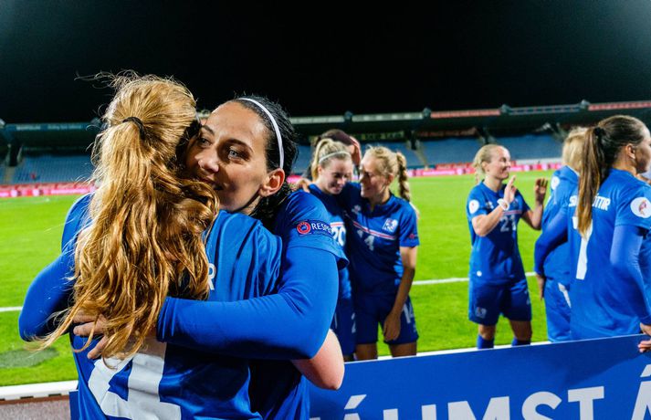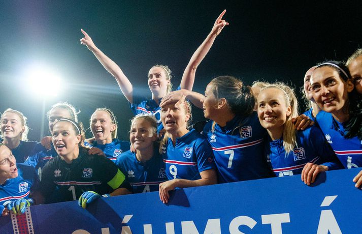 EM-sætinu fagnað með stæl | Myndaveisla Ingvi Þór Sæmundsson skrifar 16. september 2016 22:59 Stelpurnar fögnuðu vel og innilega í leikslok. vísir/anton Íslenska kvennalandsliðið í fótbolta hélt upp á EM-sætið með 4-0 stórsigri á Slóveníu í næstsíðasta leik sínum í undankeppni EM 2017. Ísland hefur unnið alla sjö leiki sína í undankeppninni, skorað 33 mörk og ekki enn fengið á sig mark. Dagný Brynjarsdóttir skoraði tvívegis í leiknum í kvöld og þær Hallbera Guðný Gísladóttir og Gunnhildur Yrsa Jónsdóttir sitt markið hvor. Rúmlega 6000 áhorfendur lögðu leið sína á Laugardalsvöllinn til að fylgjast með stelpunum okkar en það vantaði ekki mikið upp á til að bæta áhorfendamet kvennalandsliðsins.Anton Brink, ljósmyndari Fréttablaðsins og Vísis, var líka á Laugardalsvellinum í kvöld og tók myndirnar sem fylgja fréttinni.vísir/antonvísir/antonvísir/ernirvísir/antonvísir/antonvísir/antonvísir/antonvísir/antonvísir/antonVísir/antonvísir/anton EM 2017 í Hollandi Tengdar fréttir Guðbjörg: Lofum að koma í rosalegu standi á EM Guðbjörg Gunnarsdóttir hefur ekki fengið á sig mark alla undankeppnina fyrir EM í Hollandi. 16. september 2016 21:25 Margrét Lára: Sé ekki eftir að hafa æft eins og brjálæðingur á meðgöngunni Margrét Lára VIðarsdóttir, fyrirliði Íslands, sér ekki eftir því að hafa æft eins og brjálæðingur á meðgöngunni og snúið til baka í íslenska landsliðið í fótbolta. Hún er fyrirliði liðsins sem tryggði sér sæti á EM í Hollandi næsta sumar í dag. 16. september 2016 21:05 Stoltur Freyr: Gæði, reynsla og þroski Freyr Alexandersson, landsliðsþjálfari Íslands, var afar ánægður með sitt lið eftir að EM-sætið var í höfn í kvöld. 16. september 2016 21:14 Áhorfendametið ekki slegið 6037 áhorfendur voru á leik Íslands og Slóveníu á Laugardalsvelli í kvöld. 16. september 2016 20:14 Stelpurnar komnar á EM í Hollandi Íslenska kvennalandsliðið í fótbolta er komið á EM 2017 í Hollandi. Þetta var ljóst eftir 3-2 sigur Portúgals á Finnlandi í riðli 2 í undankeppninni í dag. 16. september 2016 16:41 Dagný: Ætlum að spila enn betur gegn Skotum Dagný Brynjarsdóttir skoraði tvö mörk þegar Ísland vann 4-0 sigur á Slóveníu í næstsíðasta leik sínum í undankeppni EM 2017 í kvöld. 16. september 2016 21:41 Umfjöllun: Ísland - Slóvenía 4-0 | Alvöru EM-veisla í Dalnum Ísland hélt upp á EM-sætið sitt með öruggum sigri á Slóveníu á Laugardalsvelli í kvöld. 16. september 2016 20:30 Hallbera: Búnar að vera með hausinn í Hollandi frá síðasta leik Halbera Guðný Gísladóttir, bakvörður Íslands, átti mjög góðan leik þegar Íslands vann enn sigurinn í undankeppni EM, en það var ljóst fyrr í dag að liðið væri búið að tryggja sig inn á Evrópumótið sem fer fram í Hollandi næsta sumar. 16. september 2016 21:08 Mest lesið Líður alltaf yfir hana þegar hún kemur í mark Sport „Hefði séð eftir því alla ævi“ Íslenski boltinn „Mjög sáttur með samninginn“ Íslenski boltinn „Hann ætti bara að skrifa afsökunarbiblíuna“ Körfubolti Rekinn fyrir ummæli sín um krabbameinssjúka handboltagoðsögn Handbolti Magnús Már í viðræðum við HK Íslenski boltinn Einkunnir Íslands: Þrjár heitastar í frostinu Fótbolti Real Madrid vill stórar skaðabætur frá UEFA Fótbolti Hefur spilað 16 mínútur og fengið tvö rauð spjöld Enski boltinn Rúmar tvær milljónir í boði ef þú finnur hundinn hans Aarons Ramsey Fótbolti Fleiri fréttir Scholes hættir og setur einhverfan son sinn í fyrsta sætið Rúmar tvær milljónir í boði ef þú finnur hundinn hans Aarons Ramsey Carrick í einkaviðtali: Sigurinn á Anfield stór stund fyrir Man. Utd Hefur spilað 16 mínútur og fengið tvö rauð spjöld Bættu Evrópumet AC Milan liðsins með Gullit og Van Basten innanborðs Slot: Engin auka pressa við þetta tap Real Madrid vill stórar skaðabætur frá UEFA „Mjög sáttur með samninginn“ „Hefði séð eftir því alla ævi“ Magnús Már í viðræðum við HK Bað alla nema þjálfarann afsökunar Vísar slúðrinu til föðurhúsanna Ísak Bergmann lagði upp gegn Bayern „Við tókum bara þá ákvörðun að fara í Svanavatnið“ Albert og Mikael Egill í vondum málum á Ítalíu Palace neitar að sleppa takinu á Liverpool „Eitthvað sem ég mun aldrei gleyma“ Einkunnir Íslands: Þrjár heitastar í frostinu Viktor Bjarki skoraði og lagði upp í fyrsta byrjunarliðsleiknum Uppgjörið: Ísland - Norður-Írland 3-0 | Áfram hluti af elítunni Pedri gæti verið frá keppni til langs tíma Arteta fyrstur stjóranna á fætur Þorsteinn breytir engu á milli leikja Snjóbræðslukerfi Þróttar kom KSÍ til bjargar Tölur úr Bestu 2025: Klúðraði langflestum dauðafærum í sumar Segja spurningar vakna um stöðu Elísabetar Litu á hann sem risaeðlu en sjáið hvað er í tísku núna Formaðurinn hjálpaði til við að moka völlinn Formenn sambandanna hjálpuðu við að moka völlinn Real Madrid mun ekki refsa Vinícius Júnior Sjá meira