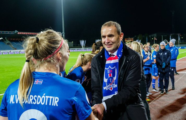 EM 2017 í Hollandi Tengdar fréttir Guðbjörg: Lofum að koma í rosalegu standi á EM Guðbjörg Gunnarsdóttir hefur ekki fengið á sig mark alla undankeppnina fyrir EM í Hollandi. 16. september 2016 21:25 Margrét Lára: Sé ekki eftir að hafa æft eins og brjálæðingur á meðgöngunni Margrét Lára VIðarsdóttir, fyrirliði Íslands, sér ekki eftir því að hafa æft eins og brjálæðingur á meðgöngunni og snúið til baka í íslenska landsliðið í fótbolta. Hún er fyrirliði liðsins sem tryggði sér sæti á EM í Hollandi næsta sumar í dag. 16. september 2016 21:05 Stoltur Freyr: Gæði, reynsla og þroski Freyr Alexandersson, landsliðsþjálfari Íslands, var afar ánægður með sitt lið eftir að EM-sætið var í höfn í kvöld. 16. september 2016 21:14 Áhorfendametið ekki slegið 6037 áhorfendur voru á leik Íslands og Slóveníu á Laugardalsvelli í kvöld. 16. september 2016 20:14 Stelpurnar komnar á EM í Hollandi Íslenska kvennalandsliðið í fótbolta er komið á EM 2017 í Hollandi. Þetta var ljóst eftir 3-2 sigur Portúgals á Finnlandi í riðli 2 í undankeppninni í dag. 16. september 2016 16:41 Dagný: Ætlum að spila enn betur gegn Skotum Dagný Brynjarsdóttir skoraði tvö mörk þegar Ísland vann 4-0 sigur á Slóveníu í næstsíðasta leik sínum í undankeppni EM 2017 í kvöld. 16. september 2016 21:41 Umfjöllun: Ísland - Slóvenía 4-0 | Alvöru EM-veisla í Dalnum Ísland hélt upp á EM-sætið sitt með öruggum sigri á Slóveníu á Laugardalsvelli í kvöld. 16. september 2016 20:30 Hallbera: Búnar að vera með hausinn í Hollandi frá síðasta leik Halbera Guðný Gísladóttir, bakvörður Íslands, átti mjög góðan leik þegar Íslands vann enn sigurinn í undankeppni EM, en það var ljóst fyrr í dag að liðið væri búið að tryggja sig inn á Evrópumótið sem fer fram í Hollandi næsta sumar. 16. september 2016 21:08 Mest lesið Líður alltaf yfir hana þegar hún kemur í mark Sport „Hefði séð eftir því alla ævi“ Íslenski boltinn „Mjög sáttur með samninginn“ Íslenski boltinn „Hann ætti bara að skrifa afsökunarbiblíuna“ Körfubolti Rekinn fyrir ummæli sín um krabbameinssjúka handboltagoðsögn Handbolti Magnús Már í viðræðum við HK Íslenski boltinn Einkunnir Íslands: Þrjár heitastar í frostinu Fótbolti Real Madrid vill stórar skaðabætur frá UEFA Fótbolti Hefur spilað 16 mínútur og fengið tvö rauð spjöld Enski boltinn Rúmar tvær milljónir í boði ef þú finnur hundinn hans Aarons Ramsey Fótbolti Fleiri fréttir Scholes hættir og setur einhverfan son sinn í fyrsta sætið Rúmar tvær milljónir í boði ef þú finnur hundinn hans Aarons Ramsey Carrick í einkaviðtali: Sigurinn á Anfield stór stund fyrir Man. Utd Hefur spilað 16 mínútur og fengið tvö rauð spjöld Bættu Evrópumet AC Milan liðsins með Gullit og Van Basten innanborðs Slot: Engin auka pressa við þetta tap Real Madrid vill stórar skaðabætur frá UEFA „Mjög sáttur með samninginn“ „Hefði séð eftir því alla ævi“ Magnús Már í viðræðum við HK Bað alla nema þjálfarann afsökunar Vísar slúðrinu til föðurhúsanna Ísak Bergmann lagði upp gegn Bayern „Við tókum bara þá ákvörðun að fara í Svanavatnið“ Albert og Mikael Egill í vondum málum á Ítalíu Palace neitar að sleppa takinu á Liverpool „Eitthvað sem ég mun aldrei gleyma“ Einkunnir Íslands: Þrjár heitastar í frostinu Viktor Bjarki skoraði og lagði upp í fyrsta byrjunarliðsleiknum Uppgjörið: Ísland - Norður-Írland 3-0 | Áfram hluti af elítunni Pedri gæti verið frá keppni til langs tíma Arteta fyrstur stjóranna á fætur Þorsteinn breytir engu á milli leikja Snjóbræðslukerfi Þróttar kom KSÍ til bjargar Tölur úr Bestu 2025: Klúðraði langflestum dauðafærum í sumar Segja spurningar vakna um stöðu Elísabetar Litu á hann sem risaeðlu en sjáið hvað er í tísku núna Formaðurinn hjálpaði til við að moka völlinn Formenn sambandanna hjálpuðu við að moka völlinn Real Madrid mun ekki refsa Vinícius Júnior Sjá meira
