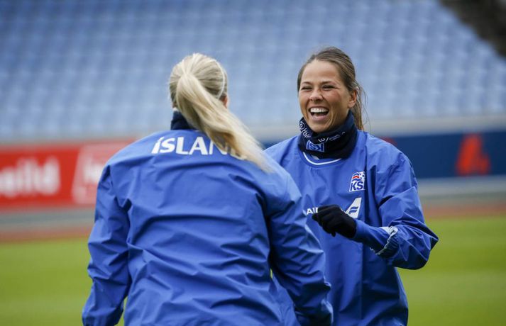 Stuð á stelpunum í köldum dalnum | Myndir Tómas Þór Þórðarson skrifar 13. september 2016 14:45 Glódís Perla og stelpurnar voru í banastuði á æfingu í dag. Vísir/Eyþór Stelpurnar okkar í kvennalandsliðinu í fótbolta mættu til æfinga á Laugardalsvelli í morgun í fyrsta sinn fyrir tvíhöfðann gegn Slóveníu og Skotlandi en það eru síðustu tveir leikir liðsins í undankeppni EM 2017. Með því að ná einu stigi gegn Slóveníu á föstudaginn tryggja stelpurnar sig á EM þriðja skiptið í röð en þær eru efstar í riðlinum með fullt hús stiga og eiga enn eftir að fá á sig mark. Fyrri leikurinn gegn Slóvenum endaði 6-0 fyrir Íslandi. Það var létt yfir stelpunum í dalnum í morgun þrátt fyrir að kalt væri í veðri eins og sjá má á myndunum sem Eyþór Árnason, ljósmyndari Fréttablaðsins og Vísis, tók á Laugardalsvelli. Seinni leikur stelpnanna verður gegn Skotlandi á þriðjudaginn í næstu viku en Skotar eru með 18 stig eins og Ísland en hafa leikið sjö leiki á móti sex leikjum Íslands. EM 2017 í Hollandi Tengdar fréttir Glódís Perla: Verður veisla ef allir mæta á völlinn Miðvörður kvennalandsliðsins segir stelpurnar eiga eftir að ná endanlegu markmiði sínu. 13. september 2016 13:30 Freyr um Hörpu: Ég er að missa leikmann og er svekktur með það | Myndband Harpa Þorsteinsdóttir er barnshafandi og missir því af EM í Hollandi næsta sumar. 7. september 2016 19:00 Reyndi viljandi að kveikja neista hjá Dóru Maríu sem varð brjáluð Freyr Alexandersson vildi sjá hvort eldmóðurinn væri til staðar hjá Dóru Maríu Lárusdóttur og hann er sannfærður. 7. september 2016 16:20 Sara Björk kom sér út úr þægindarammanum: „Fæ að heyra það ef ég stend mig illa“ Sara Björk Gunnarsdóttir gekk í raðir eins besta liðs í Evrópu í sumar en fannst ekkert sniðugt að byrja fyrsta leik á bekknum. 13. september 2016 13:00 Freyr: Fullur völlur myndi senda skýr skilaboð Stelpurnar okkar í kvennalandsliðinu í fótbolta eru hænufeti frá EM 2017. Hópurinn fyrir síðustu leikina var tilkynntur í gær. Landsliðsþjálfarinn vill ekkert minna en áhorfendamet þegar EM-sætinu verður fagnað. 8. september 2016 06:00 Freyr: Við ætlum að gefa Berglindi tækifæri Landsliðsþjálfararnir ætla að reyna það sama með Berglindi Björg og þeir gerðu fyrir Hörpu. 7. september 2016 15:58 Hópurinn sem mætir Slóvenum og Skotum | Dóra María kemur aftur inn Freyr Alexandersson, þjálfari íslenska kvennalandsliðsins í fótbolta, hefur valið íslenska hópinn fyrir leikina gegn Slóveníu og Skotlandi í undankeppni EM 2017. 7. september 2016 13:15 Mest lesið Líður alltaf yfir hana þegar hún kemur í mark Sport „Hefði séð eftir því alla ævi“ Íslenski boltinn „Mjög sáttur með samninginn“ Íslenski boltinn „Hann ætti bara að skrifa afsökunarbiblíuna“ Körfubolti Rekinn fyrir ummæli sín um krabbameinssjúka handboltagoðsögn Handbolti Magnús Már í viðræðum við HK Íslenski boltinn Einkunnir Íslands: Þrjár heitastar í frostinu Fótbolti Real Madrid vill stórar skaðabætur frá UEFA Fótbolti Hefur spilað 16 mínútur og fengið tvö rauð spjöld Enski boltinn Heimsleikarnir í CrossFit 2026 klárast fyrir verslunarmannahelgina Sport Fleiri fréttir Rúmar tvær milljónir í boði ef þú finnur hundinn hans Aarons Ramsey Carrick í einkaviðtali: Sigurinn á Anfield stór stund fyrir Man. Utd Hefur spilað 16 mínútur og fengið tvö rauð spjöld Bættu Evrópumet AC Milan liðsins með Gullit og Van Basten innanborðs Slot: Engin auka pressa við þetta tap Real Madrid vill stórar skaðabætur frá UEFA „Mjög sáttur með samninginn“ „Hefði séð eftir því alla ævi“ Magnús Már í viðræðum við HK Bað alla nema þjálfarann afsökunar Vísar slúðrinu til föðurhúsanna Ísak Bergmann lagði upp gegn Bayern „Við tókum bara þá ákvörðun að fara í Svanavatnið“ Albert og Mikael Egill í vondum málum á Ítalíu Palace neitar að sleppa takinu á Liverpool „Eitthvað sem ég mun aldrei gleyma“ Einkunnir Íslands: Þrjár heitastar í frostinu Viktor Bjarki skoraði og lagði upp í fyrsta byrjunarliðsleiknum Uppgjörið: Ísland - Norður-Írland 3-0 | Áfram hluti af elítunni Pedri gæti verið frá keppni til langs tíma Arteta fyrstur stjóranna á fætur Þorsteinn breytir engu á milli leikja Snjóbræðslukerfi Þróttar kom KSÍ til bjargar Tölur úr Bestu 2025: Klúðraði langflestum dauðafærum í sumar Segja spurningar vakna um stöðu Elísabetar Litu á hann sem risaeðlu en sjáið hvað er í tísku núna Formaðurinn hjálpaði til við að moka völlinn Formenn sambandanna hjálpuðu við að moka völlinn Real Madrid mun ekki refsa Vinícius Júnior Fluttu fréttir af snjónum í Reykjavík Sjá meira