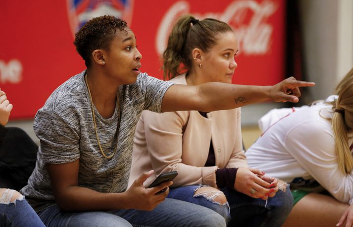 Haukar og Valur sendu Grindavíkurstelpur niður í botnsætið | Úrslit kvöldsins Óskar Ófeigur Jónsson skrifar 9. nóvember 2016 21:02 Haukar og Valur komust bæði upp fyrir Grindavík eftir heimasigra í áttundu umferð Domino´s deildar kvenna í körfubolta kvöld.Eyþór Árnason, ljósmyndari Vísis og Fréttablaðsins, kom við á leik Stjörnunnar og Keflavíkur annarsvegar og leik Vals og Njarðvíkur hinsvegar. Það má sjá myndirnar hans hér fyrir ofan. Haukar og Valur voru í tveimur neðstu sætunum fyrir umferðina en komust bæði upp fyrir Grindavík sem er nú í neðsta sæti deildarinnar. Haukakonur unnu sjö stiga sigur á Grindavík, 65-58, á Ásvöllum. Grindavík var tveimur stigum yfir í hálfleik en Haukar tóku frumkvæðið með því að vinna þriðja leikhlutann 15-8. Bjarni Magnússon stýrði Grindavík þarna í fyrsta sinn í deildinni en varð að sætta sig við tap á móti sínu gamla liði. Bjarni þjálfaði Haukaliðið í nokkur ár. Michelle Nicole Mitchell var með 23 stig og 13 fráköst hjá Haukum og Rósa Björk Pétursdóttir bætti við 13 stigum, 8 stoðsendingum og 6 fráköstum. Ashley Grimes var yfirburðarleikmaður í liði Grindavíkur með 27 stig og 10 fráköst. Haukaliðið hefur nú unnið tvo heimaleiki í röð og þrjá af fjóra heimaleikjum liðsins í deildinni í vetur. Valskonur unnu á sama tíma 19 stiga heimasigur á Njarðvík, 74-55, á heimavelli sínum en Njarðvíkurliðið lék án Carmen Tyson-Thomas í leiknum og munaði mikið um það. var með 26 stig og 17 fráköst fyrir Val, Guðbjörg Sverrisdóttir skoraði 14 stig og Dagbjörg Samúelsdóttir var með 12 stig. Björk Gunnarsdóttir var stigahæst hjá Njarðvík með 15 stig. Keflavíkurkonur komust upp að hlið Snæfelli á toppnum eftir sannfærandi fimmtán stiga sigur á Stjörnunni í Garðabæ, 72-57. Dominique Hudson skoraði 20 stig fyrir Keflavíkurliðið, Erna Hákonardóttir skoraði 12 stig og hin sextán ára Birna Valgerður Benónýsdóttir var með 11 stig. Danielle Victoria Rodriguez var atkvæðamest hjá Stjörnunni með 21 stig, 14 fráköst, 5 stoðsendingar og 9 stolna bolta. Bríet Sif Hinriksdóttir og Ragna Margrét Brynjarsdóttir skoruðu báðar 10 stig.Úrslitin og stigaskor úr öllum leikjum Domino´s deildarinnar í kvöld:Haukar-Grindavík 65-58 (11-13, 21-21, 15-8, 18-16)Haukar: Michelle Nicole Mitchell 23/13 fráköst, Rósa Björk Pétursdóttir 13/6 fráköst/8 stoðsendingar/6 stolnir, Sólrún Inga Gísladóttir 9, Magdalena Gísladóttir 8/7 fráköst, Dýrfinna Arnardóttir 7/5 stolnir, Anna Lóa Óskarsdóttir 5.Grindavík: Ashley Grimes 27/10 fráköst, Jeanne Lois Figueroa Sicat 8, María Ben Erlingsdóttir 8/4 fráköst, Petrúnella Skúladóttir 5/4 fráköst, Lovísa Falsdóttir 3, Íris Sverrisdóttir 2/8 fráköst, Ingibjörg Jakobsdóttir 2/5 fráköst/5 stoðsendingar, Ingunn Embla Kristínardóttir 2/4 fráköst, Sigrún Elfa Ágústsdóttir 1.Stjarnan-Keflavík 57-72 (14-15, 14-23, 13-20, 16-14)Stjarnan: Danielle Victoria Rodriguez 21/14 fráköst/5 stoðsendingar/9 stolnir/4 varin skot, Ragna Margrét Brynjarsdóttir 10/6 fráköst, Bríet Sif Hinriksdóttir 10, María Lind Sigurðardóttir 6/7 fráköst, Jenný Harðardóttir 4, Bryndís Hanna Hreinsdóttir 4, Viktoría Líf Steinþórsdóttir 2.Keflavík: Dominique Hudson 20/9 fráköst, Erna Hákonardóttir 12, Birna Valgerður Benónýsdóttir 11, Emelía Ósk Gunnarsdóttir 9, Salbjörg Ragna Sævarsdóttir 9/4 fráköst, Thelma Dís Ágústsdóttir 6/7 fráköst, Irena Sól Jónsdóttir 5.Snæfell-Skallagrímur 72-57 (18-10, 20-23, 15-16, 19-8)Snæfell: Aaryn Ellenberg-Wiley 34/10 fráköst/7 stolnir, Berglind Gunnarsdóttir 18/5 fráköst, Gunnhildur Gunnarsdóttir 11/4 fráköst/8 stolnir, Andrea Björt Ólafsdóttir 4, Bryndís Guðmundsdóttir 2, María Björnsdóttir 2, Helga Hjördís Björgvinsdóttir 1/5 fráköst.Skallagrímur: Tavelyn Tillman 24/7 fráköst, Sigrún Sjöfn Ámundadóttir 13/13 fráköst/5 stoðsendingar, Kristrún Sigurjónsdóttir 8, Jóhanna Björk Sveinsdóttir 5/5 fráköst, Auður Íris Ólafsdóttir 5/4 fráköst, Ragnheiður Benónísdóttir 2/6 fráköst.Valur-Njarðvík 74-55 (13-12, 26-16, 16-18, 19-9)Valur: Mia Loyd 26/17 fráköst, Guðbjörg Sverrisdóttir 14/8 fráköst, Dagbjört Samúelsdóttir 12/5 fráköst, Elín Sóley Hrafnkelsdóttir 10, Dagbjört Dögg Karlsdóttir 5/5 stoðsendingar, Bergþóra Holton Tómasdóttir 5, Elfa Falsdóttir 2.Njarðvík: Björk Gunnarsdóttir 15, Soffía Rún Skúladóttir 11, Árnína Lena Rúnarsdóttir 6, María Jónsdóttir 4/9 fráköst, Heiða Björg Valdimarsdóttir 4, Svala Sigurðadóttir 4, Júlía Scheving Steindórsdóttir 4/8 fráköst, Hulda Bergsteinsdóttir 3, Alexandra Eva Sverrisdóttir 2, Erna Freydís Traustadóttir 2.Njarðvíkingurinn María Jónsdóttir í leiknum á Hlíðarenda í kvöld.Vísir/Eyþór Dominos-deild kvenna Mest lesið Fær þrjár milljónir á dag næstu sex árin fyrir að gera ekkert Sport Stöðufundur í Laugardal klukkan 10:30 Fótbolti Elsta konan til klára Járnkarlinn Sport Enska úrvalsdeildin í jólaköttinn Enski boltinn Nýi íþróttastjóri Kjartans stal mörgæs og endaði í fangelsi í Singapúr Fótbolti Brendan Rodgers sagði starfinu sínu lausu eftir ásakanir Fótbolti Tyrkneska sambandið segir dómara hafa veðjað á þúsundir leikja Fótbolti Fylltu í eyðurnar: Vanmetnasti leikmaður deildarinnar? Enski boltinn Einkaviðtal við Carrick: „Hálfgerð tískubylgja sem einkennir fótboltann í dag“ Enski boltinn Segir sitt fyrrum lið í krísu Enski boltinn Fleiri fréttir Stólarnir ekki í vandræðum á Egilsstöðum Enginn Lakers-maður hafði náð þessu í meira en 52 ár Veðmál rædd í Körfuboltakvöldi: „Bara ævintýralega heimskulegt“ Kvöddu húsið og Nablinn klifraði í kveðjuskyni Martin naut sín í fræknum sigri á meisturum Bayern Tryggvi lykilm
