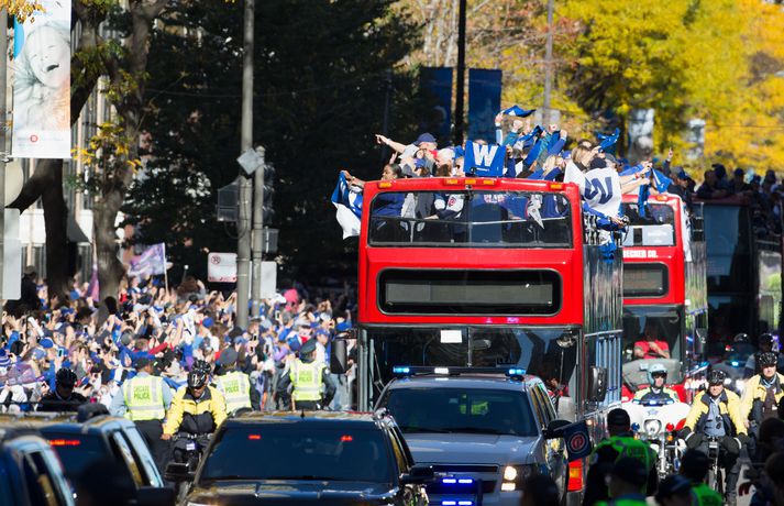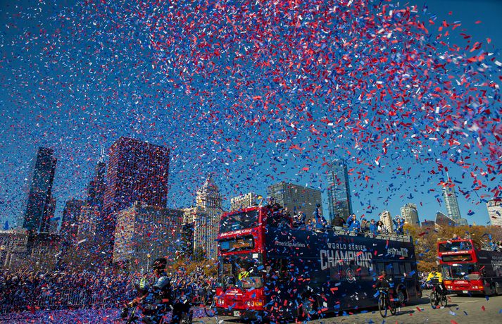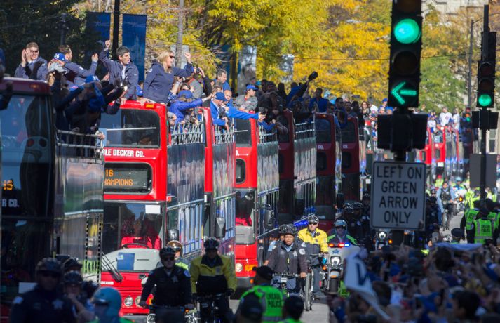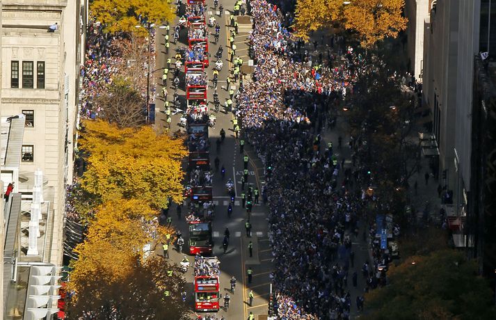 Eftir 108 ára bið eftir meistaratitili Chicago Cubs létu áhorfendur sig ekki vanta þegar skrúðganga var haldin leikmönnum til heiðurs í Chicago í gær. Líkt og hefur verið fjallað um á Vísi var þetta sögulegur sigur eftir að hafa lent 1-3 undir en íbúar Chicago-borgar töluðu um að álög væru á liðinu hefðu áhrif á titilmöguleika liðsins. Hefur nú loksins bölvuninni verið aflétt. Samkvæmt lögreglunni í Chicago mættu fimm milljónir manns til að fagna með leikmönnum Cubs en FOX greinir frá því að þetta sé fimmti fjölmennasti atburðurðurinn í mannkynssögunni. Til samanburðar mættu 1,3 milljón manns þegar Cleveland Cavaliers fögnuðu NBA-meistaratitlinum í vor en það var fyrsti titill Cleveland-borgar í rúmlega fimmtíu ár. Sjá má skemmtilegar myndir frá þessum atburði í myndaalbúminu hér fyrir ofan.