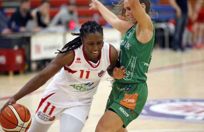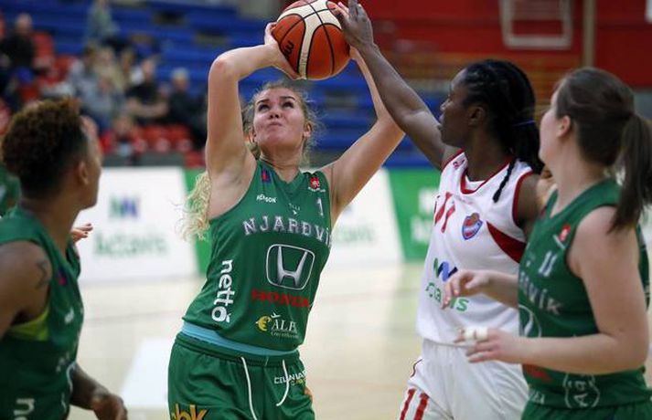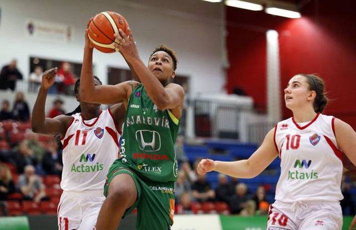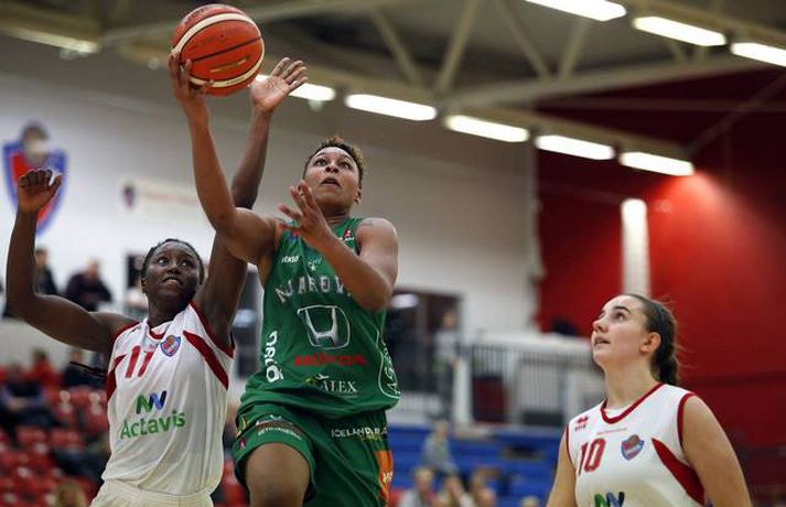 Valur stöðvaði sigurgöngu Skallagríms | Öll úrslit kvöldsins Ingvi Þór Sæmundsson skrifar 15. febrúar 2017 21:02 Carmen Tyson-Thomas fór á kostum í Schenker-höllinni. vísir/stefán Heil umferð fór fram í Domino's deild kvenna í kvöld.Snæfell vann toppslaginn gegn nýkrýndum bikarmeisturum Keflavíkur, 57-62. Valskonur gerðu góða ferð í Borgarnes og lögðu topplið Skallagríms að velli, 63-71. Fyrir leikinn voru Borgnesingar búnir að vinna níu leiki í röð. Mia Loyd skilaði rosalegum tölum í liði Vals; skoraði 28 stig og tók 24 fráköst. Hjá Skallagrími var Sigrún Sjöfn Ámundadóttir atkvæðamest með 18 stig og 11 fráköst. Carmen Tyson-Thomas fór mikinn þegar Njarðvík vann mikilvægan sigur á Haukum, 61-66. Njarðvík var aðeins með 27% skotnýtingu í leiknum en tókst þrátt fyrir það að vinna. Liðið rústaði frákastabaráttunni 63-39.Stefán Karlsson, ljósmyndari Fréttablaðsins og Vísis, var í Schenker-höllinni í kvöld og tók meðfylgjandi myndir. Þetta var fyrsti sigur Njarðvíkur í fimm leikjum. Liðið er áfram í 6. sætinu en er nú sex stigum á undan Haukum sem eru í 7. sætinu. Tyson-Thomas skoraði 38 stig, tók 22 fráköst og gaf sjö stoðsendingar. Nashika Williams skoraði 26 stig og tók 13 fráköst í liði Hauka sem hefur tapað fimm leikjum í röð. Grindvíkingar fóru illa að ráði sínu gegn Stjörnukonum í Röstinni. Grindavík var fimm stigum yfir, 66-61, þegar rúmar þrjár mínútur voru eftir en endaði á því að tapa leiknum 71-74. Ótrúlegt hrun hjá Grindvíkingum sem hafa tapað 10 leikjum í röð. Danielle Victoria Rodríguez var að venju stigahæst í liði Stjörnunnar með 36 stig. Ragna Margrét Brynjarsdóttir skoraði 13 stig og tók 10 fráköst. Ingunn Embla Kristínardóttir og María Ben Erlingsdóttir skoruðu 15 stig hvor fyrir Grindavík.Keflavík-Snæfell 57-62 (18-10, 11-18, 16-19, 12-15)Keflavík: Ariana Moorer 22/6 fráköst/5 stoðsendingar, Birna Valgerður Benónýsdóttir 14, Thelma Dís Ágústsdóttir 13/9 fráköst, Salbjörg Ragna Sævarsdóttir 4/4 fráköst/3 varin skot, Emelía Ósk Gunnarsdóttir 4.Snæfell: Aaryn Ellenberg-Wiley 29/9 fráköst, Berglind Gunnarsdóttir 10/9 fráköst, Bryndís Guðmundsdóttir 7/4 fráköst/5 stoðsendingar, Gunnhildur Gunnarsdóttir 5, Helga Hjördís Björgvinsdóttir 5, Andrea Björt Ólafsdóttir 4/4 fráköst, María Björnsdóttir 2/5 fráköst.Skallagrímur-Valur 63-71 (15-17, 15-14, 15-22, 18-18)Skallagrímur: Sigrún Sjöfn Ámundadóttir 18/11 fráköst, Tavelyn Tillman 16/8 fráköst/5 stoðsendingar, Kristrún Sigurjónsdóttir 12, Jóhanna Björk Sveinsdóttir 10/9 fráköst, Fanney Lind Thomas 5/5 fráköst, Ragnheiður Benónísdóttir 2/5 fráköst.Valur: Mia Loyd 28/24 fráköst/5 stoðsendingar, Dagbjört Dögg Karlsdóttir 10/9 fráköst, Guðbjörg Sverrisdóttir 9, Bergþóra Holton Tómasdóttir 8/6 fráköst, Dagbjört Samúelsdóttir 6, Hallveig Jónsdóttir 6, Elín Sóley Hrafnkelsdóttir 4.Haukar-Njarðvík 61-66 (17-22, 18-20, 17-11, 9-13)Haukar: Nashika Wiliams 26/13 fráköst, Dýrfinna Arnardóttir 13, Anna Lóa Óskarsdóttir 8, Rósa Björk Pétursdóttir 6/5 fráköst, Ragnheiður Björk Einarsdóttir 4, Þóra Kristín Jónsdóttir 2/8 fráköst/5 stoðsendingar, Sólrún Inga Gísladóttir 2.Njarðvík: Carmen Tyson-Thomas 38/22 fráköst/7 stoðsendingar, Ína María Einarsdóttir 9, Heiða Björg Valdimarsdóttir 7/4 fráköst, Linda Þórdís Barðdal Róbertsdóttir 7/13 fráköst, María Jónsdóttir 3, Björk Gunnarsdótir 2/4 fráköst/5 stolnir.Grindavík-Stjarnan 71-74 (11-15, 29-20, 21-12, 10-27)Grindavík: María Ben Erlingsdóttir 15, Ingunn Embla Kristínardóttir 15/6 fráköst, Petrúnella Skúladóttir 13/10 fráköst/5 stoðsendingar/5 stolnir, Ólöf Rún Óladóttir 11/5 fráköst, Íris Sverrisdóttir 8, Hrund Skúladóttir 6, Lovísa Falsdóttir 3.Stjarnan: Danielle Victoria Rodriguez 36/9 fráköst/5 stolnir, Ragna Margrét Brynjarsdóttir 13/10 fráköst, Hafrún Hálfdánardóttir 7/8 fráköst, Bríet Sif Hinriksdóttir 6/4 fráköst, Shanna Dacanay 5, Bryndís Hanna Hreinsdóttir 3, María Lind Sigurðardóttir 2/6 fráköst, Jónína Þórdís Karlssdóttir 2, Jenný Harðardóttir 0/4 fráköst. Dominos-deild kvenna Tengdar fréttir Umfjöllun og viðtöl: Keflavík - Snæfell 57-62 | Bikarmeistararnir lagðir að velli Íslandsmeistarar Snæfells unnu nýkrýnda bikarmeistara Keflavíkur í þriðja sinn í vetur. 15. febrúar 2017 21:30 Mest lesið Fær þrjár milljónir á dag næstu sex árin fyrir að gera ekkert Sport Stöðufundur í Laugardal klukkan 10:30 Fótbolti Elsta konan til klára Járnkarlinn Sport Enska úrvalsdeildin í jólaköttinn Enski boltinn Nýi íþróttastjóri Kjartans stal mörgæs og endaði í fangelsi í Singapúr Fótbolti Brendan Rodgers sagði starfinu sínu lausu eftir ásakanir Fótbolti Tyrkneska sambandið segir dómara hafa veðjað á þúsundir leikja Fótbolti Fylltu í eyðurnar: Vanmetnasti leikmaður deildarinnar? Enski boltinn Einkaviðtal við Carrick: „Hálfgerð tískubylgja sem einkennir fótboltann í dag“ Enski boltinn Segir sitt fyrrum lið í krísu Enski boltinn Fleiri fréttir Stólarnir ekki í vandræðum á Egilsstöðum Enginn Lakers-maður hafði náð þessu í meira en 52 ár Veðmál rædd í Körfuboltakvöldi: „Bara ævintýralega heimskulegt“ Kvöddu húsið og Nablinn klifraði í kveðjuskyni Martin naut sín í fræknum sigri á meisturum Bayern Tryggvi lykilmaður í sigri Bilbao Elvar skoraði tólf í naumu tapi Tilþrifin: Varin skot og ótrúlegar körfur Valsmanna Þriðja tapið í röð hjá Jóni og félögum Fáránlegt eða klókt hjá Kristófer? „Ef það má þá gerir fólk það“ Brassi tekur við af Billups „Það er æðislegt að kveðja húsið svona“ Uppgjörið: ÍA - Álftanes 76-74 | ÍA kvaddi Vesturgötuna með stæl Uppgjö