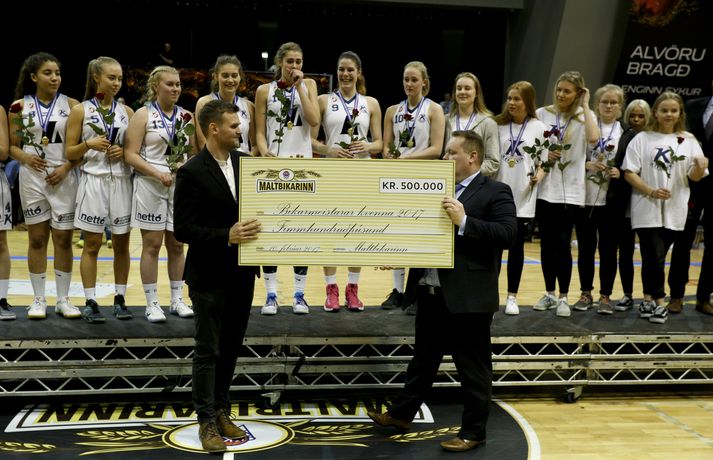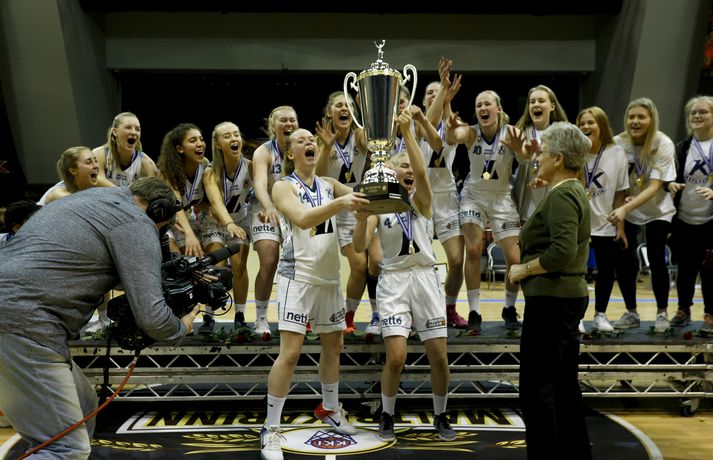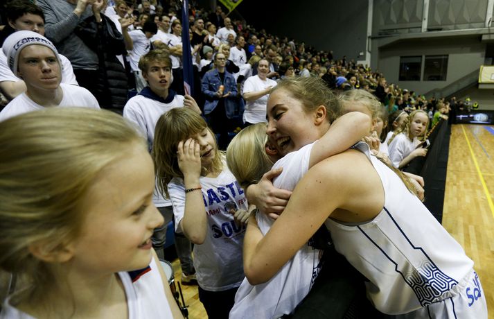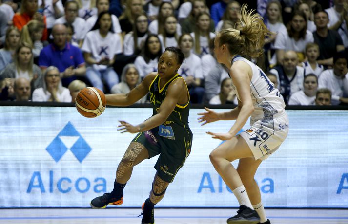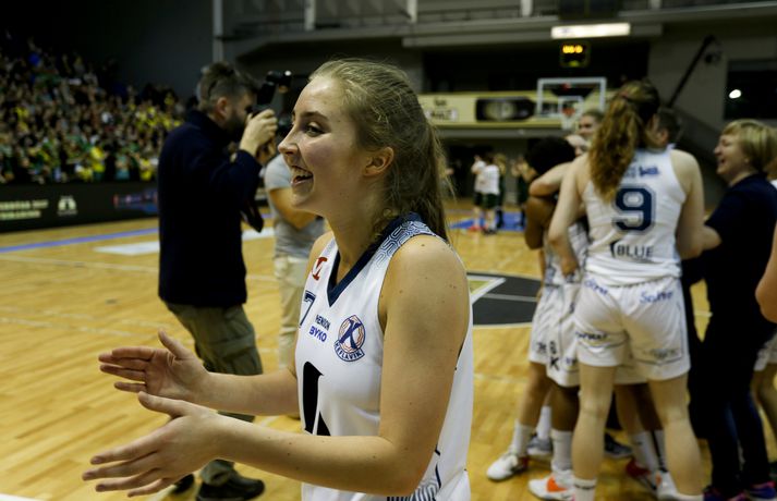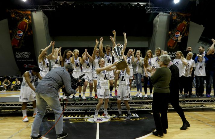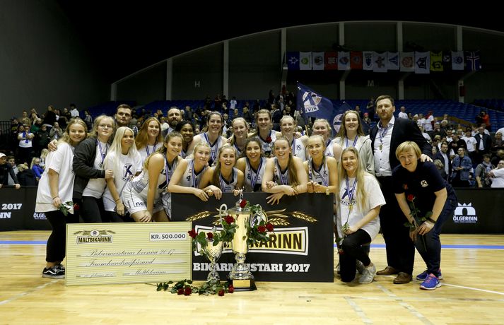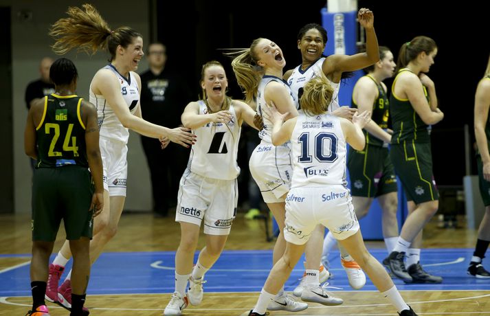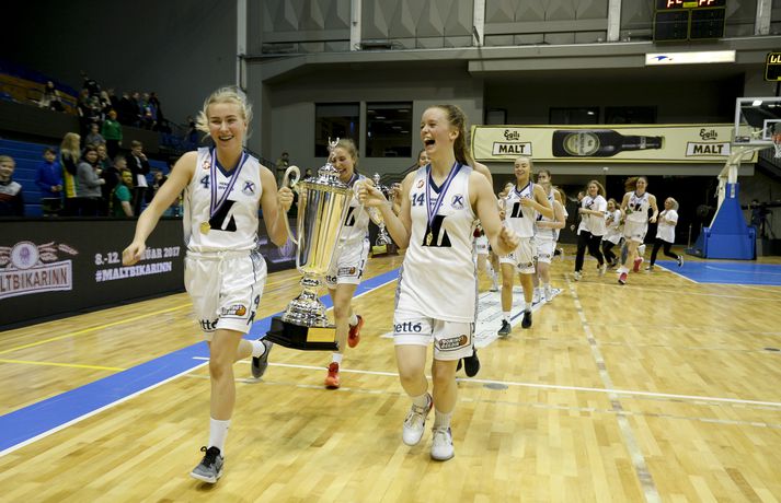 Keflavík er Malt-bikarmeistari eftir sigur á Skallagrím í bikarúrslitaleik kvenna, en leiknum er nýlokið í Laugardalshöllinni, 65-62. Þetta er í fjórtánda skiptið sem Keflavíkur verður bikarmeistari kvenna, en leikurinn var æsispennandi.Andri Marinó Karlsson, ljósmyndari Fréttablaðsins og Vísis, var í Laugardalshöllinni og tók meðfylgjandi myndir. Ariana Moorer skoraði 26 stig fyrir Keflavík, en Erna Hákonardóttir fyrirliði kom næst með 12 stig. Í liði Skallagríms var það Tavelyn Tillman sem skoraði mest eða 26 stig. Næst kom Sigrún Sjöfn Ámundardóttir með 13 stig. Byrjunin hjá Keflavík var rosaleg. Ákefðin í vörninni, baráttan og þær voru heldur betur tilbúnar í verkefnið, en nýliðarnir, sem voru að spila sinn fyrsta bikarúrslitaleik, virtust taugaveiklaðar. Pressuvörn Keflvíkinga virtist fara algjörlega með þær og staðan var 11-2 eftir þrjár mínútur. Ariana Moorer fór á kostum í upphafi leiks og skoraði fyrstu þrettán stig Keflavíkur, en hún var kominn með sautján stig í hálfleik. Hægt og rólega fóru þá Skallarnir að minnka muninn, en eftir fyrsta leikhluta var staðan enn 22-14, Keflavík í vil og staðan í hálfleik 37-34. Síðari hálfleikur var eins og sá fyrri, en dramatíkin var allsráðandi. Liðin héldust nánast nánast hönd í hönd og þegar annað liðið setti niður þrist þá gat hitt liðið ekki verið minni maður og setti niður þrist á móti. Að endingu voru svo Keflvíkingar sterkari og unn sinn fjórtánda bikarmeistaratitil sem er magnaður árangur.Afhverju vann Keflavík? Stáltaugarnar hjá unga liði Keflavíkur voru betri undir lokin og einnig áttu þær besta leikmann vallarins Ariana Moorer sem keyrði Keflavík í gegnum erfiðu kaflana í leiknum. Byrjun Keflavíkur, sem var mögnuð, gaf þeim einnig auka orku og hefðu þær ekki byrjað svona vel hefði maður aldrei vitað hvað hefði gerst. Ef og hefði er svo auðvitað allt annar leikur, en frammistaða Keflavíkur var bara mjög góð. Þær hefðu þó getað náð enn meira forskoti í byrjun leiks og hefði getað komið í bakið á þeim þegar þær voru að klikka auðveldum sniðskotum, en það kom ekki í bakið hjá þeim og afar öflug frammistaða að baki hjá þessu Keflavíkurliði. Varnarleikurinn, sem hefur verið svo frábær í vetur hjá Keflavík, skilaði þeim enn einum sigrinum.Bestu leikmenn vallarins Það er enginn vafi á því að Ariana Moorer var besti leikmaður vallarins í dag og hún dró þetta unga lið Keflavíkur að landi þegar mest á reyndi, en á ferðinni er frábær leikmaður. Hún skoraði 26 stig, en var þó einnig dugleg að finna stöllur sínar (sjö stoðsendingar) og hirti fimmtán fráköst. Aðrar í liði Keflavíkur eins og Erna Hákonardóttir, fyrirliði og að ógleymdri Birnu Valgerði, lögðu mikilvægar hendur á plóg í þessu verkefni að ógleymdri Salbjörgu Rögnu Sævarsdóttur. Tavelyn Tillman var stigahæst í liði Skallagríms, með 26 stig eins og Moorer, en hún var öflug í leiknu. Næst kom Sigrún Sjöfn Ámundardóttir með 13 og þriggja stiga Fanney Lind Thomas skoraði ellefu stig. Skallagrímur hefði þurft örlítið framlag frá til að mynda Jóhönnu Björk Sveinsdóttur og Guðrúnu Ósk Ámundardóttir hefðu þær ætlað sér að hreppa þann stóra.Tölfræðin sem vakti athygli Eljan og baráttan í þessu unga Keflavíkurliði skilaði sér heldur betur því liðið tók alls tólf fráköstum meira en Skallagríms-liðið. Svakaleg barátta og þær voru tilbúnar að kasta sér á hvern einasta bolta sem var laus í teignum. Það kemur líka kannski á óvart að Keflavík tapaði níu fleiri boltum en Skallagrímur, en standa samt uppi sem sigurvegarar. Það er athyglisvert. Það sem stingur kannski einnig mest í sjálfri liðstölfræðinni er sú að Skallagrímur er -19 þegar Ragnheiður Benónísdóttir er inn á, en hún spilaði tæplega 22 mínútur.Hvað gekk illa? Byrjun Skallagríms var ekki til að hrópa húrra fyrir og þeim gekk afar illa í upphafi leiks að koma boltanum ofan í körfuna. Hefðu þær byrjað örlítið betur þá, eins og ég sagði áðan, er aldrei að vita hvað hefði gerst - en að því er ekki spurt. Keflavík byrjaði einfaldlega betur og vann leikinn með þremur stigum og er bikarmeistari árið 2017 í fjórtánda skiptið, sem er magnaður árangur.Keflavík-Skallagrímur 65-62 (22-14, 15-20, 15-12, 13-16)Keflavík: Ariana Moorer 26/15 fráköst/7 stoðsendingar, Erna Hákonardóttir 12, Birna Valgerður Benónýsdóttir 11/7 fráköst/3 varin skot, Katla Rún Garðarsdóttir 5, Emelía Ósk Gunnarsdóttir 4/7 fráköst, Irena Sól Jónsdóttir 3, Salbjörg Ragna Sævarsdóttir 2/11 fráköst/3 varin skot, Thelma Dís Ágústsdóttir 2/8 fráköst.Skallagrímur: Tavelyn Tillman 26/7 fráköst/6 stoðsendingar, Sigrún Sjöfn Ámundadóttir 13/11 fráköst, Fanney Lind Thomas 11, Guðrún Ósk Ámundadóttir 5/4 fráköst, Jóhanna Björk Sveinsdóttir 3/9 fráköst, Ragnheiður Benónísdóttir 2/5 fráköst, Kristrún Sigurjónsdóttir 2.Bein lýsing: Keflavík - Skallagrímurvísir/andri marinó