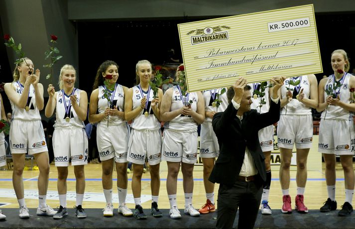 Umfjöllun, viðtöl og myndir: Keflavík - Skallagrímur 65-62 | Fjórtándi bikarmeistaratitill Keflavíkur Anton Ingi Leifsson í Laugardalshöll skrifar 11. febrúar 2017 15:30 Keflavíkurkonur hefja bikarinn á loft. vísir/andri marinó Keflavík er Malt-bikarmeistari eftir sigur á Skallagrím í bikarúrslitaleik kvenna, en leiknum er nýlokið í Laugardalshöllinni, 65-62. Þetta er í fjórtánda skiptið sem Keflavíkur verður bikarmeistari kvenna, en leikurinn var æsispennandi.Andri Marinó Karlsson, ljósmyndari Fréttablaðsins og Vísis, var í Laugardalshöllinni og tók meðfylgjandi myndir. Ariana Moorer skoraði 26 stig fyrir Keflavík, en Erna Hákonardóttir fyrirliði kom næst með 12 stig. Í liði Skallagríms var það Tavelyn Tillman sem skoraði mest eða 26 stig. Næst kom Sigrún Sjöfn Ámundardóttir með 13 stig. Byrjunin hjá Keflavík var rosaleg. Ákefðin í vörninni, baráttan og þær voru heldur betur tilbúnar í verkefnið, en nýliðarnir, sem voru að spila sinn fyrsta bikarúrslitaleik, virtust taugaveiklaðar. Pressuvörn Keflvíkinga virtist fara algjörlega með þær og staðan var 11-2 eftir þrjár mínútur. Ariana Moorer fór á kostum í upphafi leiks og skoraði fyrstu þrettán stig Keflavíkur, en hún var kominn með sautján stig í hálfleik. Hægt og rólega fóru þá Skallarnir að minnka muninn, en eftir fyrsta leikhluta var staðan enn 22-14, Keflavík í vil og staðan í hálfleik 37-34. Síðari hálfleikur var eins og sá fyrri, en dramatíkin var allsráðandi. Liðin héldust nánast nánast hönd í hönd og þegar annað liðið setti niður þrist þá gat hitt liðið ekki verið minni maður og setti niður þrist á móti. Að endingu voru svo Keflvíkingar sterkari og unn sinn fjórtánda bikarmeistaratitil sem er magnaður árangur.Afhverju vann Keflavík? Stáltaugarnar hjá unga liði Keflavíkur voru betri undir lokin og einnig áttu þær besta leikmann vallarins Ariana Moorer sem keyrði Keflavík í gegnum erfiðu kaflana í leiknum. Byrjun Keflavíkur, sem var mögnuð, gaf þeim einnig auka orku og hefðu þær ekki byrjað svona vel hefði maður aldrei vitað hvað hefði gerst. Ef og hefði er svo auðvitað allt annar leikur, en frammistaða Keflavíkur var bara mjög góð. Þær hefðu þó getað náð enn meira forskoti í byrjun leiks og hefði getað komið í bakið á þeim þegar þær voru að klikka auðveldum sniðskotum, en það kom ekki í bakið hjá þeim og afar öflug frammistaða að baki hjá þessu Keflavíkurliði. Varnarleikurinn, sem hefur verið svo frábær í vetur hjá Keflavík, skilaði þeim enn einum sigrinum.Bestu leikmenn vallarins Það er enginn vafi á því að Ariana Moorer var besti leikmaður vallarins í dag og hún dró þetta unga lið Keflavíkur að landi þegar mest á reyndi, en á ferðinni er frábær leikmaður. Hún skoraði 26 stig, en var þó einnig dugleg að finna stöllur sínar (sjö stoðsendingar) og hirti fimmtán fráköst. Aðrar í liði Keflavíkur eins og Erna Hákonardóttir, fyrirliði og að ógleymdri Birnu Valgerði, lögðu mikilvægar hendur á plóg í þessu verkefni að ógleymdri Salbjörgu Rögnu Sævarsdóttur. Tavelyn Tillman var stigahæst í liði Skallagríms, með 26 stig eins og Moorer, en hún var öflug í leiknu. Næst kom Sigrún Sjöfn Ámundardóttir með 13 og þriggja stiga Fanney Lind Thomas skoraði ellefu stig. Skallagrímur hefði þurft örlítið framlag frá til að mynda Jóhönnu Björk Sveinsdóttur og Guðrúnu Ósk Ámundardóttir hefðu þær ætlað sér að hreppa þann stóra.Tölfræðin sem vakti athygli Eljan og baráttan í þessu unga Keflavíkurliði skilaði sér heldur betur því liðið tók alls tólf fráköstum meira en Skallagríms-liðið. Svakaleg barátta og þær voru tilbúnar að kasta sér á hvern einasta bolta sem var laus í teignum. Það kemur líka kannski á óvart að Keflavík tapaði níu fleiri boltum en Skallagrímur, en standa samt uppi sem sigurvegarar. Það er athyglisvert. Það sem stingur kannski einnig mest í sjálfri liðstölfræðinni er sú að Skallagrímur er -19 þegar Ragnheiður Benónísdóttir er inn á, en hún spilaði tæplega 22 mínútur.Hvað gekk illa? Byrjun Skallagríms var ekki til að hrópa húrra fyrir og þeim gekk afar illa í upphafi leiks að koma boltanum ofan í körfuna. Hefðu þær byrjað örlítið betur þá, eins og ég sagði áðan, er aldrei að vita hvað hefði gerst - en að því er ekki spurt. Keflavík byrjaði einfaldlega betur og vann leikinn með þremur stigum og er bikarmeistari árið 2017 í fjórtánda skiptið, sem er magnaður árangur.Keflavík-Skallagrímur 65-62 (22-14, 15-20, 15-12, 13-16)Keflavík: Ariana Moorer 26/15 fráköst/7 stoðsendingar, Erna Hákonardóttir 12, Birna Valgerður Benónýsdóttir 11/7 fráköst/3 varin skot, Katla Rún Garðarsdóttir 5, Emelía Ósk Gunnarsdóttir 4/7 fráköst, Irena Sól Jónsdóttir 3, Salbjörg Ragna Sævarsdóttir 2/11 fráköst/3 varin skot, Thelma Dís Ágústsdóttir 2/8 fráköst.Skallagrímur: Tavelyn Tillman 26/7 fráköst/6 stoðsendingar, Sigrún Sjöfn Ámundadóttir 13/11 fráköst, Fanney Lind Thomas 11, Guðrún Ósk Ámundadóttir 5/4 fráköst, Jóhanna Björk Sveinsdóttir 3/9 fráköst, Ragnheiður Benónísdóttir 2/5 fráköst, Kristrún Sigurjónsdóttir 2.Bein lýsing: Keflavík - Skallagrímurvísir/andri marinó Dominos-deild kvenna Mest lesið Fær þrjár milljónir á dag næstu sex árin fyrir að gera ekkert Sport Stöðufundur í Laugardal klukkan 10:30 Fótbolti Elsta konan til klára Járnkarlinn Sport Enska úrvalsdeildin í jólaköttinn Enski boltinn Nýi íþróttastjóri Kjartans stal mörgæs og endaði í fangelsi í Singapúr Fótbolti Brendan Rodgers sagði starfinu sínu lausu eftir ásakanir Fótbolti Tyrkneska sambandið segir dómara hafa veðjað á þúsundir leikja Fótbolti Fylltu í eyðurna