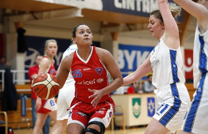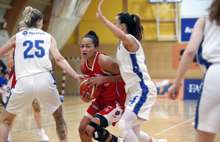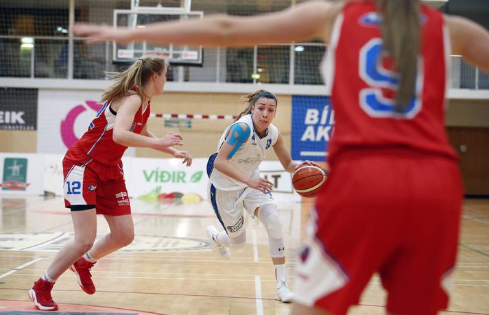 Heil umferð fór fram í Domino's deild kvenna í körfubolta í kvöld.Frábær seinni hálfleikur skilaði Keflavík 72-51 sigri á Skallagrími í toppslag. Valskonur fóru illa að ráði sínu gegn Stjörnunni í leik liðanna í 4. og 5. sæti deildarinnar. Lokatölur 72-68, Stjörnunni í vil.Stefán Karlsson, ljíosmyndari Fréttablaðsins og Vísis, var í Ásgarði og tók meðfylgjandi myndir. Með sigri hefði Valur minnkað forskot Vals í 4. sætinu niður í tvö stig. Núna munar hins vegar sex stigum á liðunum þegar þrjár umferðir eru eftir. Danielle Victoria Rodriguez skoraði 31 stig, tók sex fráköst og gaf átta stoðsendingar í liði Stjörnunnar. Bríet Sif Hinriksdóttir bætti 23 stigum og sex fráköstum við. Mia Loyd var með 24 stig, 17 fráköst og fimm stoðsendingar í liði Vals. Snæfell vann sinn tíunda leik í röð þegar liðið bar sigurorð af Haukum, 60-75. Aaryn Ellenberg skoraði 26 stig og gaf sex stoðsendingar í liði Snæfells sem situr á toppi deildarinnar. Þóra Kristín Jónsdóttir skoraði 19 stig fyrir Hauka sem hafa tapað fimm heimaleikjum í röð. Haukar eru enn í sjöunda og næstneðsta sæti deildarinnar. Grindavík vann sinn fyrsta sigur síðan 3. desember þegar liðið lagði Njarðvík að velli, 73-72. Angela Marie Rodriguez lék sinn fyrsta leik fyrir Grindavík og spilaði vel. Hún skoraði 21 stig, tók fimm fráköst og gaf átta stoðsendingar. Carmen Tyson-Thomas var í sérflokki hjá Njarðvík. Hún skoraði 46 stig, tók 20 fráköst og gaf sex stoðsendingar. Njarðvík er í 6. sæti deildarinnar.Keflavík-Skallagrímur 72-51 (13-23, 14-9, 16-3, 29-16)Keflavík: Ariana Moorer 21/11 fráköst, Birna Valgerður Benónýsdóttir 10/5 fráköst, Irena Sól Jónsdóttir 8, Emelía Ósk Gunnarsdóttir 7/5 fráköst, Erna Hákonardóttir 6, Kamilla Sól Viktorsdóttir 6, Thelma Dís Ágústsdóttir 5/8 fráköst/6 stoðsendingar, Þóranna Kika Hodge-Carr 4, Katla Rún Garðarsdóttir 3, Elsa Albertsdóttir 2, Salbjörg Ragna Sævarsdóttir 0/12 fráköst/3 varin skot.Skallagrímur: Tavelyn Tillman 22/4 fráköst, Jóhanna Björk Sveinsdóttir 9/8 fráköst, Kristrún Sigurjónsdóttir 6/6 fráköst, Ragnheiður Benónísdóttir 6/4 fráköst, Sigrún Sjöfn Ámundadóttir 5/12 fráköst, Fanney Lind Thomas 3.Stjarnan-Valur 72-68 (15-9, 12-21, 16-16, 29-22)Stjarnan: Danielle Victoria Rodriguez 31/6 fráköst/8 stoðsendingar, Bríet Sif Hinriksdóttir 23/6 fráköst, Hafrún Hálfdánardóttir 7/4 fráköst, María Lind Sigurðardóttir 6/4 fráköst, Ragna Margrét Brynjarsdóttir 3/10 fráköst/4 varin skot, Jenný Harðardóttir 2/4 fráköst, Bryndís Hanna Hreinsdóttir 0/9 fráköst.Valur: Mia Loyd 24/17 fráköst/5 stoðsendingar, Elín Sóley Hrafnkelsdóttir 11/4 fráköst/4 varin skot, Dagbjört Dögg Karlsdóttir 10/5 fráköst, Hallveig Jónsdóttir 10/5 fráköst, Elfa Falsdottir 6, Dagbjört Samúelsdóttir 4/4 fráköst/3 varin skot, Helga Þórsdóttir 3. Haukar-Snæfell 60-75 (10-16, 12-15, 11-21, 27-23)Haukar: Þóra Kristín Jónsdóttir 19/7 fráköst/5 stoðsendingar/5 stolnir, Rósa Björk Pétursdóttir 13/7 fráköst, Sigrún Björg Ólafsdóttir 13/6 fráköst, Ragnheiður Björk Einarsdóttir 8/12 fráköst, Anna Lóa Óskarsdóttir 5, Dýrfinna Arnardóttir 2.Snæfell: Aaryn Ellenberg 26/6 stoðsendingar, Bryndís Guðmundsdóttir 13, Gunnhildur Gunnarsdóttir 11/8 fráköst/3 varin skot, Rebekka Rán Karlsdóttir 6, Berglind Gunnarsdóttir 5/6 fráköst, María Björnsdóttir 4, Alda Leif Jónsdóttir 4, Sara Diljá Sigurðardóttir 3, Helga Hjördís Björgvinsdóttir 3, Andrea Björt Ólafsdóttir 0/5 fráköst.Grindavík-Njarðvík 73-72 (20-15, 26-15, 7-22, 20-20)Grindavík: Angela Marie Rodriguez 21/5 fráköst/8 stoðsendingar, María Ben Erlingsdóttir 19/12 fráköst/5 stoðsendingar, Hrund Skúladóttir 12, Petrúnella Skúladóttir 11/4 fráköst, Íris Sverrisdóttir 4, Ólöf Rún Óladóttir 3, Ingunn Embla Kristínardóttir 3.Njarðvík: Carmen Tyson-Thomas 46/20 fráköst/6 stoðsendingar, Björk Gunnarsdótir 9, Linda Þórdís Barðdal Róbertsdóttir 8/14 fráköst/3 varin skot, Ína María Einarsdóttir 4, Karen Dögg Vilhjálmsdóttir 3, María Jónsdóttir 2, Hulda Bergsteinsdóttir 0, Erna Freydís Traustadóttir 0, Heiða Björg Valdimarsdóttir 0/5 fráköst, Júlia Scheving Steindórsdóttir 0/4 fráköst.