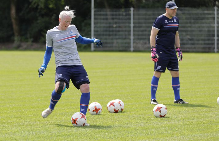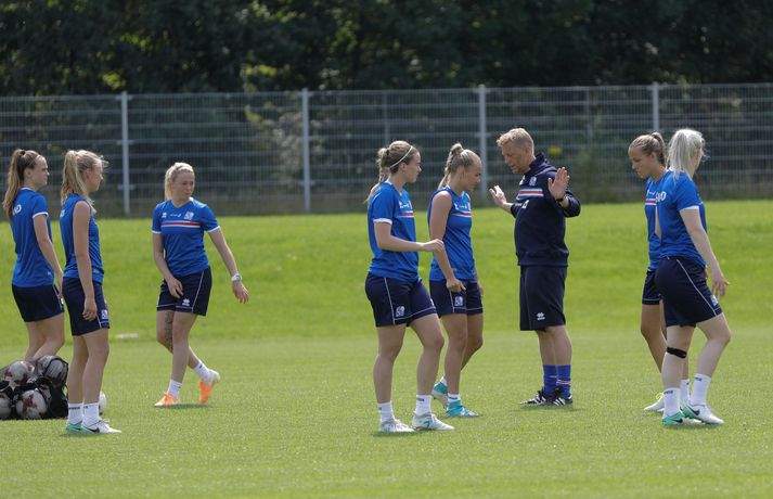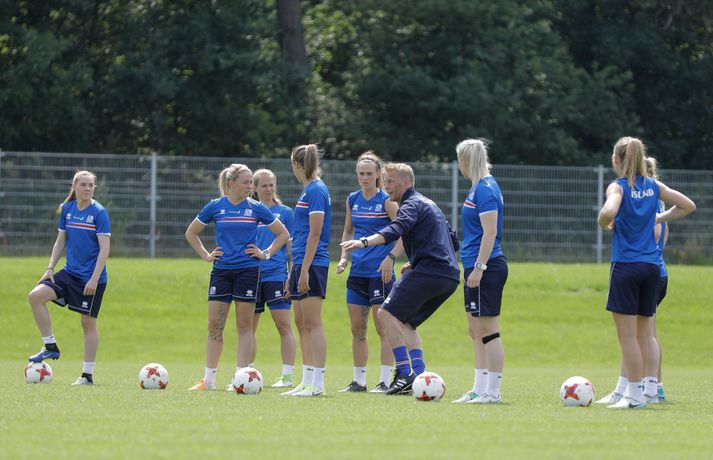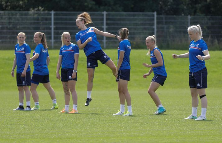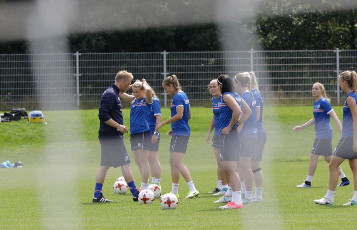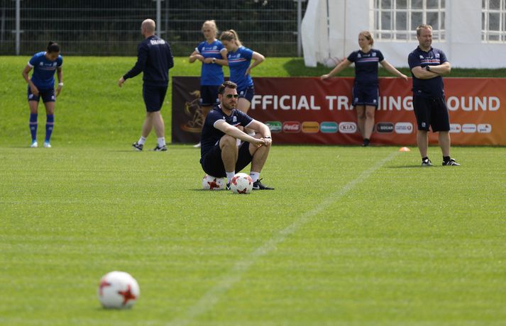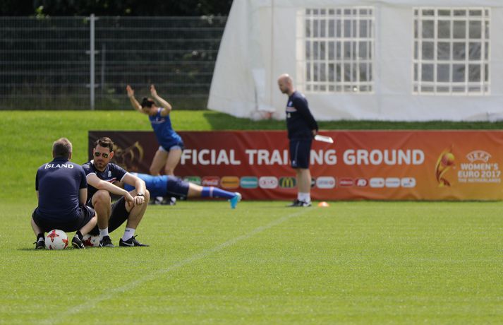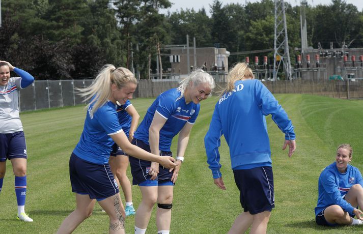 Íslenska kvennalandsliðið æfði í Ermelo í morgun.Stelpurnar töpuðu 1-0 fyrir Frakklandi í Tilburg í gær. Þrátt fyrir sárt tap voru þær brattar þegar þær ræddu við fjölmiðla fyrir æfinguna. Heimir Hallgrímsson, þjálfari íslenska karlalandsliðsins, var mættur út á æfingavöll og stjórnaði æfingunni á meðan aðrir voru í viðtölum. Heimir er einn af njósnurum Freys Alexanderssonar á mótinu. Íslenska liðið býr sig undir leikinn gegn Sviss á laugardaginn. Bæði lið eru án stiga eftir töp í 1. umferð riðlakeppninnar.Vilhelm Gunnarsson, ljósmyndari Fréttablaðsins og Vísis, var á æfingavellinum í Ermelo í morgun og tók þessar skemmtilegu myndir hér að neðan.Akureyringarnir Sandra María Jessen og Arna Sif Ásgrímsdóttir gantast.vísir/vilhelmvísir/vilhelmMarkverðirnir fengu sérstaka meðhöndlun hjá Ólafi Péturssyni markvarðaþjálfara.vísir/vilhelmEkki liggur fyrir hvað verið var að æfa þarna.vísir/vilhelm