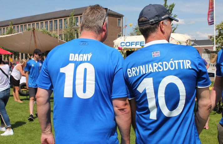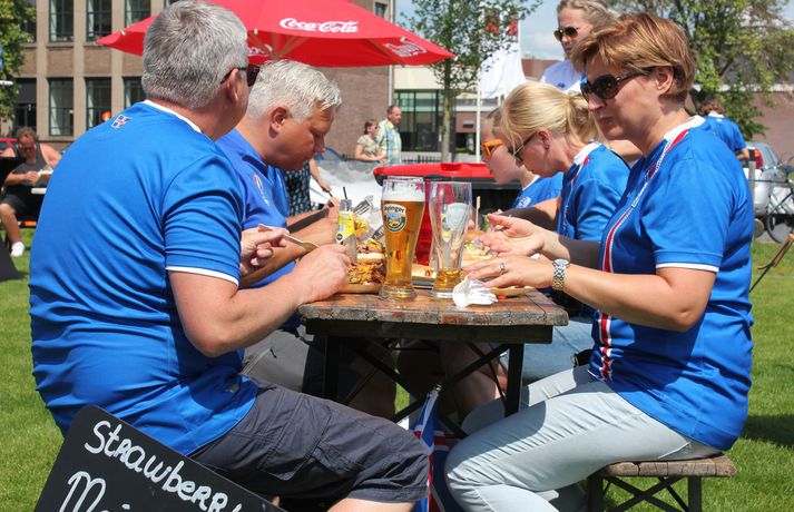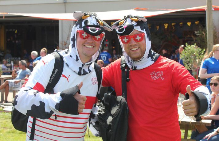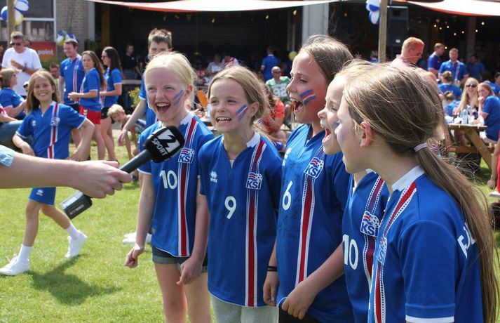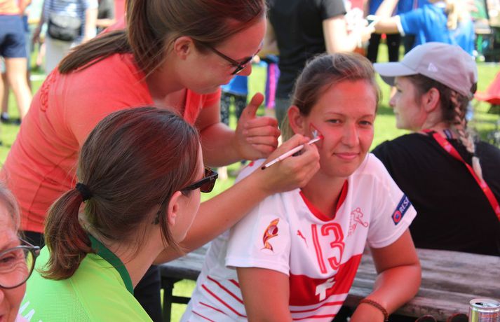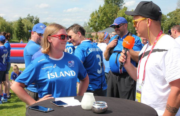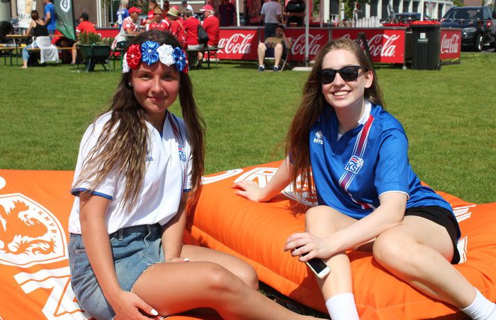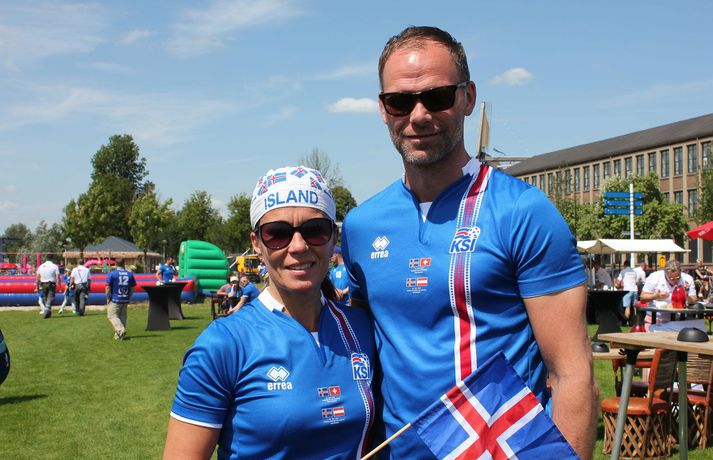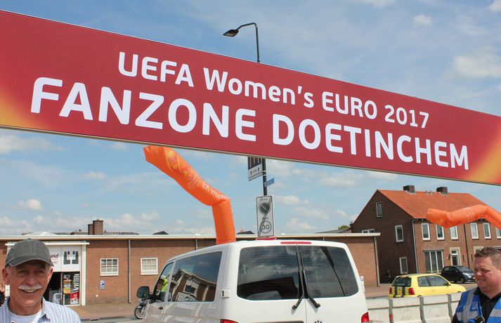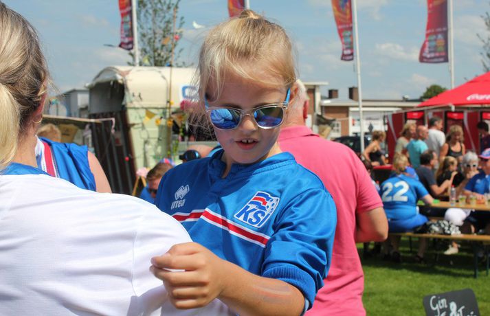 Íslenskir stuðningsmenn eignuðu sér Fan Zone-ið eða stuðningsmannasvæðið við ströndina í Doetinchem í dag þar sem leikur Íslands og Sviss hefst klukkan 16.00. Íslendingar á svæðinu eru um 3.000 og voru allir glaðbeittir í góða veðrinu í Doetinchem í dag. Stuðningsmannasvæðið er margfalt betra en í Tilburg og þar hægt að fá góðan mat og kalda drykki. Leiktæki eru úti um allt fyrir börnin og svo púðar til að slaka á í sólinni. Nokkrir fótboltavellir eru til staðar og svo er hægt að fara í strandblak.Innslag frá stuðningsmannasvæðinu má sjá í klippunni og fyrir neðan má sjá fjölmargar myndir úr stemningunni.Vísir var á stuðningsmannasvæðinu í dag og rakst þar meðal annars á landsliðsgoðsagnirnar Olgu Færseth, Ásthildi Helgadóttur og Guðna Bergsson, formann KSÍ. Þar var einnig móðir Freys Alexanderssonar, þjálfara íslenska landsliðsins. Hér að neðan má sjá nokkrar myndir frá stemningunni í dag og neðst er svo myndaveisla.VísirÁsthildur Helgadóttir í símanum.vísir/tomKatrín Jónsdóttir, fyrrverandi landsliðsfyrirliði, með manni sínum Þorvaldi Makan.vísir/tomÞessar krúttsprengjur fóru á kostum í beinni á Vísi.vísir/tom