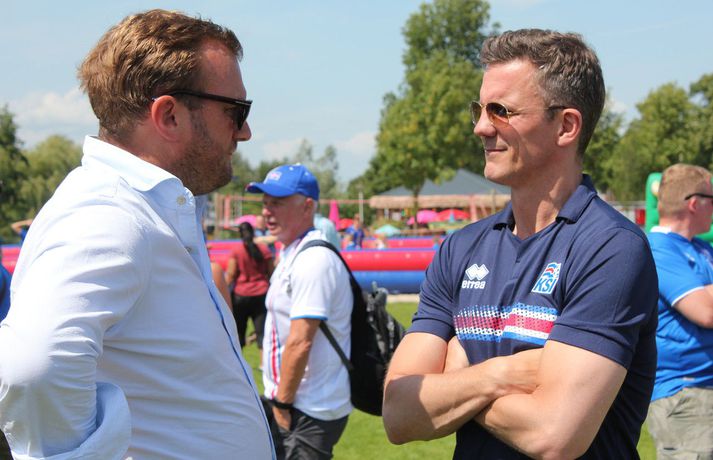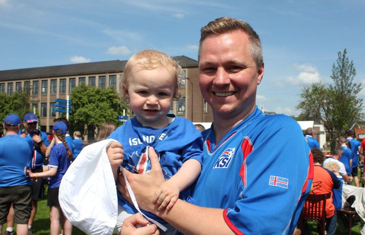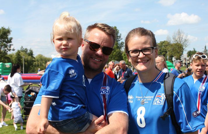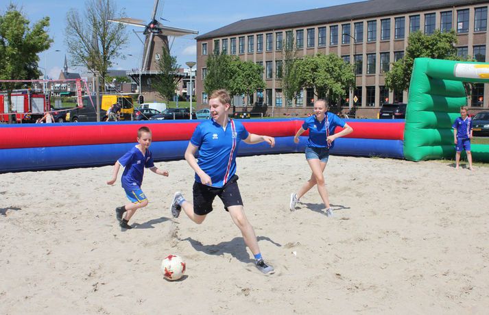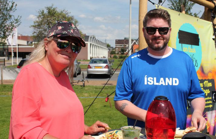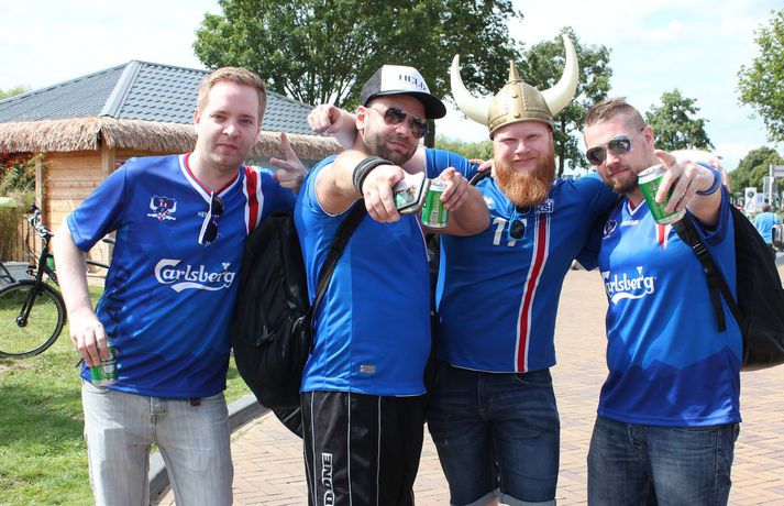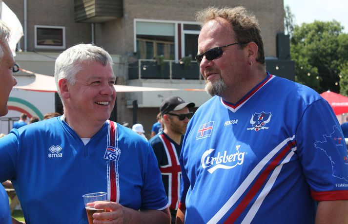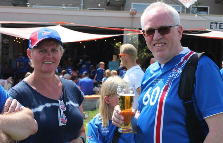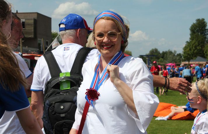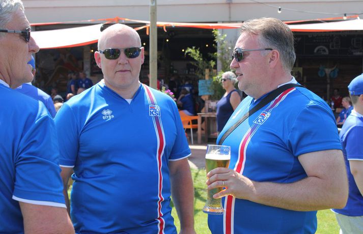 Íslenskir stuðningsmenn eignuðu sér Fan Zone-ið eða stuðningsmannasvæðið við ströndina í Doetinchem í dag þar sem leikur Íslands og Sviss hefst klukkan 16.00. Íslendingar á svæðinu eru um 3.000 og voru allir glaðbeittir í góða veðrinu í Doetinchem í dag. Stuðningsmannasvæðið er margfalt betra en í Tilburg og þar hægt að fá góðan mat og kalda drykki. Leiktæki eru úti um allt fyrir börnin og svo púðar til að slaka á í sólinni. Nokkrir fótboltavellir eru til staðar og svo er hægt að fara í strandblak.Innslag frá stuðningsmannasvæðinu má sjá í klippunni og fyrir neðan má sjá fjölmargar myndir úr stemningunni.Vísir var á stuðningsmannasvæðinu í dag og rakst þar meðal annars á landsliðsgoðsagnirnar Olgu Færseth, Ásthildi Helgadóttur og Guðna Bergsson, formann KSÍ. Þar var einnig móðir Freys Alexanderssonar, þjálfara íslenska landsliðsins. Hér að neðan má sjá nokkrar myndir frá stemningunni í dag og neðst er svo myndaveisla.VísirÁsthildur Helgadóttir í símanum.vísir/tomKatrín Jónsdóttir, fyrrverandi landsliðsfyrirliði, með manni sínum Þorvaldi Makan.vísir/tomÞessar krúttsprengjur fóru á kostum í beinni á Vísi.vísir/tom