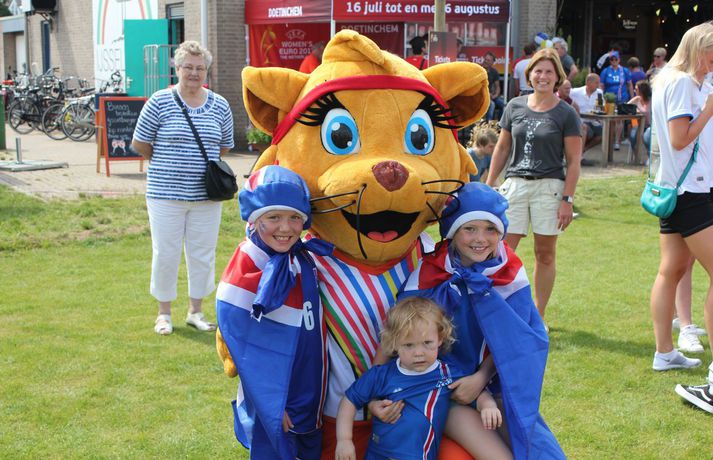Lukkudýrið Kicky orðið Íslandsvinur | Myndir Íslenskir stuðningsmenn eru byrjaðir að mála Doetinchem bláa en von er á 3.000 áhorfendum frá Íslandi á leikinn í dag. 22. júlí 2017 11:28