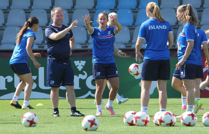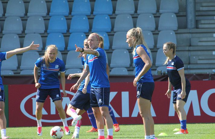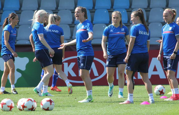 Stelpurnar okkar æfðu á Tjarnarhæðinni í Doetinchem í dag en þar mæta þær Sviss á morgun í öðrum leik liðsins á EM 2017 í fótbolta. Bæði lið eru án stiga eftir 1-0 tap í fyrsta leik. Veðrið hefur verið meira og minna gott í Hollandi undanfarna daga og var því mikill hiti þegar stelpurnar æfðu í dag. Þær byrjuðu á léttum skokkhring áður en farið var í styrktaræfingar og svo í reitabolta. Eftir það var fjölmiðlum hent í burtu. Allir leikmenn eru heilir og tóku þátt í æfingunni en afskaplega létta var yfir stelpunum okkar. Sara Björk Gunnarsdóttir mætti skellihlæjandi á æfinguna og þá var hart tekist í reitaboltanum en einnig mikið hlegið. Myndasyrpu frá æfingunni á Tjarnarhæðinni má finna hér að neðna.Ekki missa af neinu tengdu stelpunum okkar á EM 2017 í Hollandi. Íþróttadeild 365 er með öflugt teymi fréttamanna á mótinu og færir ykkur allar nýjustu fréttirnar af íslenska liðinu. Fylgdu okkur á Facebook og Twitter.