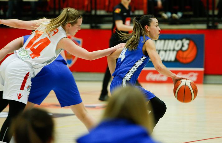 Umfjöllun og viðtöl: Valur - Stjarnan 82-57 | Sannfærandi sigur Valskvenna Dagur Lárusson skrifar 24. febrúar 2018 18:00 Aalyah Whiteside í leiknum í dag. Vísir/Andri Marinó Valur tók á móti Stjörnunni frá Garðabæ á heimavelli sínum að Hlíðarenda í Domino’s deild kvenna í körfubolta í dag. Fyrir leikinn voru Valskonur í öðru sæti deildarinnar með 30 stig, en Stjarnan í því fjórða með 22 stig. Leikurinn fór fjörlega á stað og var jafnræði með liðunum til að byrja með, Valskonur náðu þó fljótlega yfirhöndinni og horfðu aldrei til baka eftir það. Valsliðið hélt Stjörnukonum í þægilegri fjarlægð nánast allan leikinn, ef frá eru taldir góðir kaflar Stjörnukvenna undir lok fyrri hálfleiks og í upphafi þriðja leikhluta. Leikurinn virtist þó alltaf vera í höndum Valsliðsins sem spilað gríðarlega sterkan varnaleik sem lagði grunn að sigrinum. Eftir leikinn eru Valskonur á toppi deildarinnar með 32 stig, tveimur fleiri en Haukakonur sem eiga þó leik til góða, en Stjarnan er eftir sem áður í ágætis málum í fjórða sæti.Afhverju vann Valur Varnaleikur liðsins var mjög góður í dag ,líkt og oft áður á þessari leiktíð, hann lagði grunninn að sigrinum í dag. Þá skilaði liðið skotunum vel niður í dag en 31 af 62 skotum liðsins rötuðu niður, það er 50% nýting sem telst gott í körfubolta.Hverjar stóðu upp úr? Guðbjörg Sverrisdóttir, Elín Sóley Hrafnkelsdóttir og Aalyah Whiteside skiluðu allar góðu dagsverki og þá kom Dagbjört Samúelsdóttir sterk inn af bekknum og spilaði vel. Hjá Stjörnunni voru Danielle Victoria Rodriguez, Bríet Sif Hinriksdóttir og María Lind Kristjánsdóttir góðar og gerðu hvað þær gátu til að halda í við Valsliðið.Hvað gekk illa? Stjörnuliðið var ekki að hitta vel í dag en aðeins 22 af 79 skotum liðsins fóru niður en það skilar aðeins 27,8% nýtingu. Þegar andstæðingurinn er jafn sterkur og Valsliðið, þá þurfa skotin að detta til að þú eigir séns á móti þeim.Hvað gerist næst? Valskonur halda áfram baráttunni við Haukakonur um toppsæti deildarinnar, á meðan Stjarnan siglir nokkuð lygnan sjó um miðja deild. Valur-Stjarnan (22-13, 37-27, 57-39, 82-57)Valur: Aalyah Whiteside 26/9/7, Dagbjört Samúelsdóttir 14/4/, Guðbjörg Sverrisdóttir 10/11/5, Elín Sóley Hrafnkelsdóttir 11/9/1, Ragnheiður Benónísdótti 9/2/2, Hallveig Jónsdóttir 8/5/2,Ásta Júlía Grímsdóttir 4/4/1.Stjarnan: Danielle Victoria Rodriguez 24/13/8, Bríet Sif Hinriksdóttir 17/4, María Lind Sigurðardóttir 14/9, Bryndís Hanna Hreinsdóttir 2/4/2.Pétur Sigurðsson þjálfari Stjörnunnar. „Þær voru bara númeri og stórar, það er bara þannig. Ég er ekkert óánægður með spilamennskunni í dag, við vorum að láta boltann ganga vel og töpuðum ekkert það mörgum boltum en skotin voru bara ekki að detta hjá okkur. Þegar þú lendir undir strax á móti liði eins og Val þá er alltaf erfitt að koma til baka og það þarf mikla orku til þess, við höfðum hana í dag en skotin vildu bara ekki detta fyrir okkur.“ Sagði Pétur Sigurðsson þjálfari Stjörnunnar að leik loknum.Darri Freyr Atlason þjálfari Vals. Mér fannst við smella vel í dag, við höfum verið í smá vandræðum með flæðið en það var í fínu lagi í dag. Við höfum verið að spila góðan varnarleik undanfarið, því héldum við áfram í dag þar sem liðið spilaði góðan varnaleik í 40 mínútur að mínu mati.“ „Fyrir mér skiptir það ekki höfuð máli hvort við endum númer eitt tvö þrjú eða fjögur, aðal atriðið er að komast inn í úrslitakeppnina. Þegar þangað er komið tekur við ný keppni þar sem þú þarft alltaf að leggja tvo sterka andstæðinga til vinna íslandsmeistaratitilinn.” Sagði Darri Freyr Arnarsson þjálfari Vals sem fer sáttu á koddann í kvöld eftir góða frammistöðu liðsins í dag.Guðbjörg Sverrisdóttir leikmaður Vals. Guðbjörg Sverrisdóttir leikmaður Vals var ánægð með sigurinn í dag og sagði liðið vera á góðum stað. Þegar hún var spurð út í harða baráttu liðsins um topp sætið í deildinni við Haukakonur svaraði hún því að auðvita væri stefnan sett á það að hafa betur í þeirri baráttu. „Fyrir mig persónulega skiptir það líka máli því ég vill auðvita enda ofar en systir mín “ sagði Guðbjörg Sverrisdóttir brosandi að lokum og átti þar auðvitað við Helenu Sverrisdóttur systir sína, eina fremstu körfuboltakonu landsins.Bryndís Hanna Hreinsdóttir.Vísir/Andri MarinóGuðbjörg Sverrisdóttir.Vísir/Andri MarinóJenný Harðardóttir.Vísir/Andri MarinóBergþóra Holton Tómasdóttir, Val og Danielle Victoria Rodriguez, Stjörnunni.Vísir/Andri MarinóVísir/Andri MarinóAalyah Whiteside.Vísir/Andri MarinóAalyah Whiteside.Vísir/Andri MarinóAalyah Whiteside.Vísir/Andri MarinóHallveig Jónsdóttir.Vísir/Andri MarinóDanielle Victoria Rodriguez.Vísir/Andri MarinóDanielle Victoria Rodriguez.Vísir/Andri MarinóGuðbjörg Sverrisdóttir.Vísir/Andri MarinóDanielle Victoria Rodriguez.Vísir/Andri MarinóDavíð Kristján Hreiðarsson, Ísak Ernir Kristinsson og Jóhann Guðmundsson.Vísir/Andri Marinó Dominos-deild kvenna