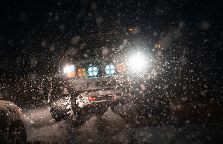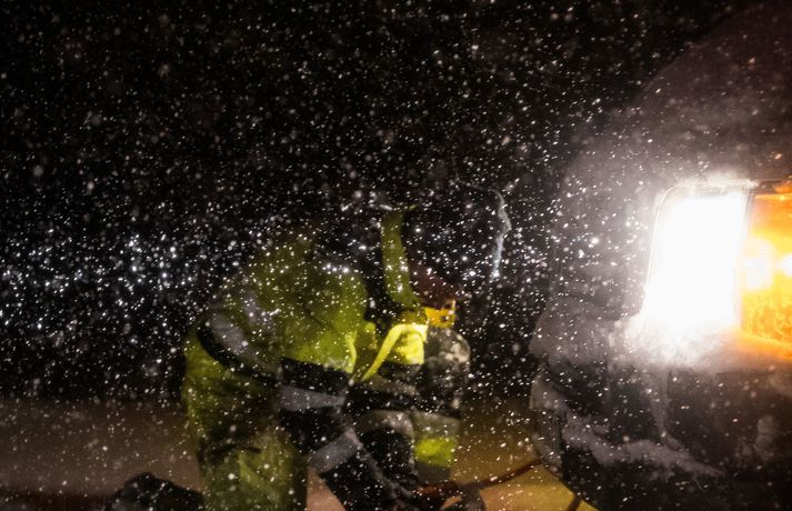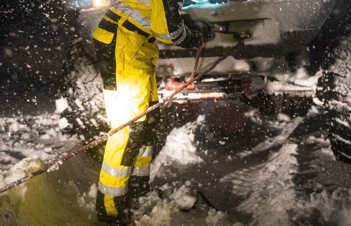 Myndasyrpa: Víkverjar komu á annað hundrað ferðamönnum til bjargar á aðfangadag Hallgerður Kolbrún E. Jónsdóttir skrifar 25. desember 2022 14:02 Björgunarsveitir í Vík höfðu í nógu að snúast í gær. Sigurður Pétur Jóhannsson Björgunarsveitarmenn í Vík í Mýrdal fengu ekki að borða jólamatinn fyrr en á ellefta tímanum í gærkvöld vegna á annað hundrað erlendra ferðamanna sem sátu fastir í ófærðinni. Áfram er erfið færð víðast hvar á landinu og fólk hvatt til að halda sig heima. Gul viðvörun tekur gildi á Suðausturlandi klukkan tvö í dag vegna norðan storms. Búist er við vindi á bilinu 18 til 25 m/s og snörpum hviðum við fjöll. Varað hefur verið við því að fólk fari af stað að óþörfu út í veðrið. Viðvörunin er í gildi þar til klukkan tíu á morgun, annan dag jóla. Þá hefur verið gefin út gul viðvörun á Austfjörðum og Austurlandi að Glettingi vegna hríðar. Viðvörunin tekur gildi á Austfjörðum klukkan tvö og gildir til klukkan ellefu í kvöld. Á Austurlandi tekur viðvörunin gildi klukkan eitt og gildir til klukkan níu í kvöld. Slæm færð er víðast hvar á landinu og þjóðvegurinn milli Markarfljóts og Kirkjubæjarklausturs lokaður með öllu. Þá hefur óvissustigi verið lýst yfir á Hellisheiði og gæti henni verið lokað með stuttum fyrirvara. Á annað hundrað sátu fastir Björgunarsveitin Víkverji í Mýrdal hafði í nógu að snúast í gærkvöldi en um fimmtíu bílar lentu í vandræðum á og við Reynisfjall við Gatnabrún, við Hjörleifshöfða og austan Víkur við Múlakvísl. „Þetta byrjaði um hálf fjögur leitið í gær út af rútu sem fór út af. Þegar var farið að draga hana upp var endalaust af bílum út um allt fastir og komust hvorki eitt né neitt, sérstaklega yfir Reynisfjallið,“ segir Ingi Már Björnsson, formaður björgunarsveitarinnar Víkverja. Hér að neðan má skoða ljósmyndir sem teknar voru við aðgerðir Víkverja í gær. Orri Örvarsson, björgunarsveitarmaður, að störfum í gær. Sigurður Pétur JóhannssonAðsend/Sigurður Pétur JóhannssonSigurður Pétur JóhannssonSigurður Pétur JóhannssonSigurður Pétur JóhannssonÁ myndinni má sjá þá Inga Má Björnsson, formann Víkverja, og son hans Björn Vigni. Sigurður Pétur JóhannssonSigurður Pétur JóhannssonSigurður Pétur JóhannssonSigurður Pétur JóhannssonSigurður Pétur JóhannssonSigurður Pétur JóhannssonSigurður Pétur Jóhannsson Aðgerðum lauk ekki fyrr en á ellefta tímanum þar sem koma þurfti öllum úr bílunum í gistingu. Hátt í tvö hundruð voru í hópnum, allir erlendir ferðamenn. Léleg færð hafi verið vegna snjókomu og blint. „Þetta er náttúrulega líka fólk sem er alls ekki vant því að keyra í þessum aðstæðum þannig að oft þurfti að taka og keyra bílana fyrir það. Þótt það væri búið að losa þá,“ segir Ingi. Jólamaturinn betri fyrir vikið Það hlýtur að hafa verið mikil þreyta í þínu fólki þegar það komst loksins heim? „Nei, nei, jólasteikin var bara betri þegar maður kom heim,“ segir Ingi og hlær. Það sé samt ergilegt að rútur fari af stað þegar spáin er eins og hún var í gær. „Það var auðvitað spáð gríðarlegri snjókomu. Það var ekki mikill vindur til trafala en það snjóaði mikið og var blint. Þannig að bílar áttu erfitt með að komast ferða sinna.“ Verkefnin héldu áfram í nótt og svo hafa björgunarsveitir þurft að manna lokunarpósta á vegum í dag. „Við fórum aftur af stað í nótt, austur á Mýrdalssand, og það var eiginlega frá miðnætti þar til klukkan sex í morgun. Þar var bíll sem hafði farið út af og maður sem þurfti að sækja. Það var svo gríðarleg ófærð þannig að það gekk ekki neitt. Þó við værum á 49 tommu breyttum bílum komust þeir ekkert í þessum snjó,“ segir Ingi. „Eins og staðan er núna eru allir vegirnir lokaðir. Það er bara verið að reyna að moka og opna og það tekur töluverðan tíma. Fólkið sem er komið upp á hótel er bara innlyksa og fast og fer ekkert að sleppa út á veg alveg strax.“ Veður Björgunarsveitir Mýrdalshreppur Samgöngur Mest lesið Ástæða fyrir því að genaumræðan hafi ekki náð mikilli útbreiðslu Innlent Veðurvaktin: Biðja fólk að halda sig heima í kvöld Veður Karlmaður lést í Bláa lóninu Innlent Hlýni á föstudag og snjórinn geti horfið í næstu viku Veður Færeyingar marka leið fyrir risastór neðansjávargöng Erlent Ráðgjafinn ráðinn tveimur dögum eftir að grennslast var fyrir um málið Innlent Stærsti fellibylur í sögu Jamaíka Erlent Ungur Miðflokksmaður gengst við rasisma og segir af sér Innlent Flugmaðurinn sem fórst millilenti oft í Reykjavík Innlent Biðu í fjóra tíma úti á braut og aðra fjóra við farangursbeltin Innlent Fleiri fréttir Hlýni á föstudag og snjórinn geti horfið í næstu viku Appelsínugular viðvaranir orðnar að gulum Miklar tafir hjá strætó og vagnar fastir Allur floti Vegagerðar úti að ryðja snjó Veðurvaktin: Biðja fólk að halda sig heima í kvöld Mildari spá í kortunum Gular viðvaranir vegna snjókomunnar suðvestantil Um sautján stiga frost í Skagafirði í nótt Frost komst í fjórtán stig í nótt Norðanáttin gengur niður Klukkustunda bið eftir dekkjaskiptum í vetrarparadísinni Stormur eða hvassviðri suðaustantil Gul viðvörun á landinu sunnan- og austanverðu Svöl norðanátt og hálka á vegum Stefnir í fyrstu hálku haustsins á höfuðborgarsvæðinu Rigning eða slydda suðvestantil Kólnar í veðri næstu daga Hægviðri og þokusúld framan af degi Hæg breytileg átt og dálítil væta Vindur fyrir norðan og rigning og þokusúld vestanlands Dálítil væta og hiti að átján stigum Tuttugu stig á nokkrum stöðum Allt að 18 stig í dag Allt að átján stig f