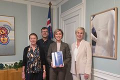 Afhenti viðfangsefninu nýju bókina Óttar Sveinsson Útkallsmaður brá sér í þyrluflug í gær með þremur fyrrverandi þyrluflugmönnum Landhelgisgæslunnar 10. nóvember 2018 08:00