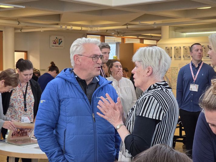 Ný viðbygging og hafragrautur í Hveragerði Magnús Hlynur Hreiðarsson skrifar 24. október 2025 20:05 Sævar Helgason, skólastjóri (fyrir miðju), ásamt Pétri G. Markan, bæjarstjóra Hveragerðisbæjar (t.v.) og Magnúsi Þór Jónssyni, formanni Kennarasambands Íslands þegar opna húsið var í skólanum 17. október. Magnús Hlynur Hreiðarsson Mikil ánægja er á meðal starfsmanna og nemenda Grunnskóla Hveragerðis með nýja viðbyggingu við skólann þar sem nýr og glæsilegur matsalur er hluti af byggingunni. Viðbyggingin kostaði um einn milljarða króna. Ókeypis hafragrautur er í boði fyrir nemendur alla morgna í skólanum. Það var hátíðarathöfn í skólanum föstudaginn 17. október því þá var bæjarbúum og öðrum gestum boðið að koma í opið hús og skoða nýju viðbygginguna og annað sem henni tengist. „Við erum komin með matsal núna, sem ekki var áður, við vorum bara í miðrími að borða. Þetta er orðin stór skóli á íslenskan mælikvarða en það eru tæplega 500 nemendur í skólanum,“ segir Sævar Helgason skólastjóri og bætir við. „Við höfum fengið níu kennslustofur í þessum tveimur áföngum og aðstöðu fyrir sér- og stuðningskennslu. Aðstöðu fyrir sérfræðinga eins og sálfræðing, iðjuþjálfa, talmeinafræðing og hjúkrunarfræðing.“ „Þessi bygging er ekki fullbyggð, það eru eftir fjórði og fimmti áfangi, það er eftir textílhúsið og iðnmenntunin og svo önnur viðbygging með fleiri stofum, þannig að við erum hvergi nærri hætt,“ segir Sandra Sigurðardóttir, forseti bæjarstjórnar Hveragerðisbæjar. Fjöldi gesta mætti í opna húsið í skólanum föstudaginn 17. október.Magnús Hlynur Hreiðarsson Nýja byggingin kostaði um einn milljarð króna. „Það skiptir miklu máli að setja fjármuni í menntakerfið, í fólkið okkar því þetta er auðvitað fólkið okkar og börnin okkar framtíðin. Það skiptir gríðarlega miklu máli,“ segir Jóhanna Ýr Jóhannsdóttir, formaður bæjarráðs. Hluti af nýju viðbyggingunni við Grunnskóla Hveragerðis. Verktaki var verktakafyrirtækið Stéttarfélagið. Magnús Hlynur Hreiðarsson „Hver króna kemur margfalt til baka, ég myndi giska á 16 krónur til baka fyrir hverja krónu, sem við setjum í börnin okkar, það er bara þannig,“ bætir Sandra við. Sandra Sigurðardóttir, forseti bæjarstjórnar (t.v.) og Jóhanna Ýr Jóhannsdóttir formaður bæjarráðs, sem eru mjög ánægðar með nýju aðstöðuna í skólanum.Magnús Hlynur Hreiðarsson En hvað segja nemendur um skólann sinn? „Bara geggjaður skóli“, segir Elísabet Þóra Óðinsdóttir, nemandi í 5. bekk og það tekur Kolfinna S. Fríðudóttir, sem er líka í 5.bekk undir. „Já, hann er mjög skemmtilegur“. Og það sem meira er, nemendur fá ókeypis hafragraut í byrjun hvers skóladags. „Já við förum oft í hafragraut, hann er mjög góður“, segja þær Elísabet og Kolfinna. Elísabet Þóra Óðinsdóttir (t.v.) og Kolfinna S. Fríðudóttir nemendur í 5. bekk, sem hrósa skólanum sínum í hástert.Magnús Hlynur Hreiðarsson Og þessi hvatningarorð frá skólastjóranum í lokin. „Já, bara að hvetja fólk að tala fallega um skólann sinn og skoða það góða starf, sem er í öllum skólum á Íslandi. Það er margt, sem þarf að laga og margt, sem má bæta en heild yfir erum við á flottri leið,“ segir Sævar. Ókeypis hafragrautur er mjög vinsæll í skólanum hjá nemendum.Magnús Hlynur Hreiðarsson Hveragerði Mest lesið Bein útsending: Konur streyma á Arnarhól Innlent Nýtt fíkniefni læðist inn á íslenskan markað Innlent Meinað að taka þátt þar sem hún þurfti að hafa barnið með sér Innlent Sættir sig ekki við sýknu tálbeitunnar Innlent Blöskrar „vælið“ vegna Norðuráls Innlent Rýnt í stöðuna í Úkraínu: Trump stendur loks við stóru orðin Erlent Bandaríkjamenn ræsa út stærsta flugmóðurskip heims Erlent Allt að áttatíu þúsund mæti í miðbæinn og götulokanir í gildi Innlent Vara við vafasömum Excel-skjölum í umferð „bókstaflega út um allt“ Innlent Maður varð fyrir skoti í Árnessýslu Innlent Fleiri fréttir Bíll fór í sjóinn á Ísafirði Maður varð fyrir skoti í Árnessýslu Ný viðbygging og hafragrautur í Hveragerði Grunsamleg útboð í samráði sem gæti verið víðtækt Stuttur fundur og hittast næst á mánudag Kvennaverkfall og lánabreytingar hjá Landsbanka Nýtt fíkniefni læðist inn á íslenskan markað Hóf störf of snemma eftir kvörtun vegna heimilisofbeldis Vara við vafasömum Excel-skjölum í umferð „bókstaflega út um allt“ Meinað að taka þátt þar sem hún þurfti að hafa barnið með sér Vill fund vegna „alvarlegrar stöðu“ á lánamarkaði Þingnefnd ræðir stöðuna á Grundartanga: „Þetta er bara óljóst“ Sjálfstæðismenn stefna á leiðtogaprófkjör í borginni Íslendingar meðal sakborninga en enginn í varðhaldi Bein útsending: Konur streyma á Arnarhól Blöskrar „vælið“ vegna Norðuráls Neita öllum ásökunum um samráð Leggja til breytingar við Reykjavíkurflugvöll eftir að lá við árekstri kennsluvéla Sættir sig ekki við sýknu tálbeitunnar Heimilar umferð um Vonarskarð Sennilegt að ástand Þingvallavegar hafi haft áhrif á aðdraganda banaslyss Miðla sögu jafnréttisbaráttunnar á Íslandi til útlanda Bein útsending: Nútíma kvennabarátta – Staða kvenna af erlendum uppruna á vinnumarkaði Dóra Björt stefnir á formanninn Þjóðin klofin í afstöðu til þess hvort jafnrétti kynjanna hafi verið náð Bein útsending: Umhverfismat vegna Sundabrautar kynnt Varnar- og öryggisstefna fyrir Ísland: Áhersla á Norðurslóðir, NATO og samstarf við Bandaríkin Allt að áttatíu þúsund mæti í miðbæinn og götulokanir í gildi Flugumferðarstjórar aflýsa vinnustöðvunum á morgun