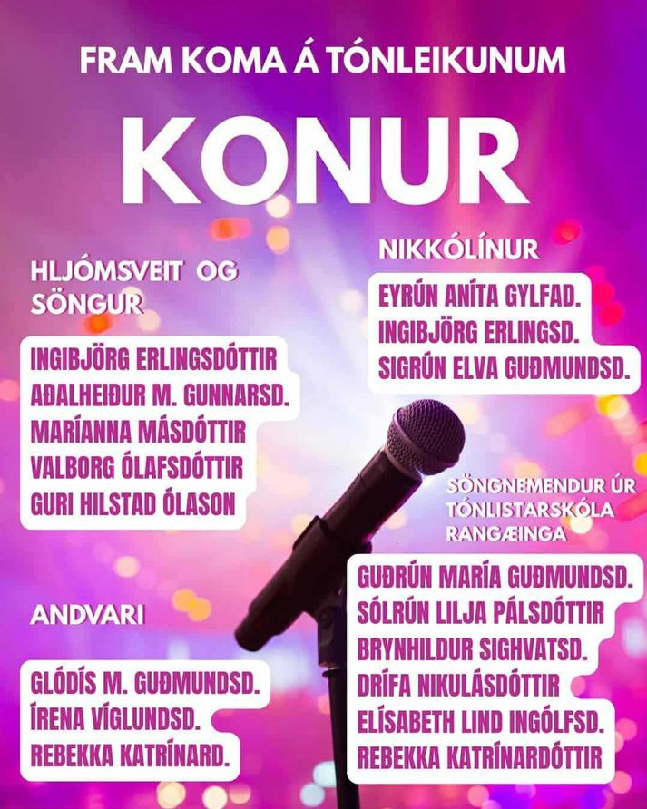 Það er meira og minna alls staðar eitthvað að gerast í dag vegna kvennafrídagsins en nú eru jú 50 ár frá því að fyrsti kvennafrídagurinn var haldinn hátíðlegur. Konur í Rangárþingi ætla ekki að láta sitt eftir liggja og hafa skipulagt heilmikla kvenna tónleika í Hvolnum á Hvolsvelli í kvöld. Ingibjörg Erlingsdóttir, tónlistarkona á Hvolsvelli er allt í öllu varðandi tónleikana. „Það verpa tónleikar sem heita „Konur“ þar sem að eingöngu konur koma fram, konur, sem syngja og konur, sem spila. Kvennahljómsveitir, kvennahópar og kvennakór,“ segir Ingibjörg og bætir við. „Þetta er ótrúlega skemmtilegt og búið að vera ofboðslega skemmtilegt að vinna í þessum undirbúningi því það er í rauninni sama við hverja ég talaði við, þær voru allar tilbúnar.“ Von er á fjölda gesta á tónleika kvöldsins í Hvolnum. Magnús Hlynur Hreiðarsson Ingibjörg segir að allir séu velkomnir að mæta í kvöld, ekki bara konur. „Já, allir velkomnir, karlar, konur og kvár.“ En af hverju ætti fólk að koma? „Bara til að koma og gleðjast og sjá hvað konur geta gert því þetta eru allt svo magnaðar konur,“ segir Ingibjörg. Dagskrá kvöldsins verður mjög fjölbreytt af alls konar tónlistaratriðum. Magnús Hlynur Hreiðarsson