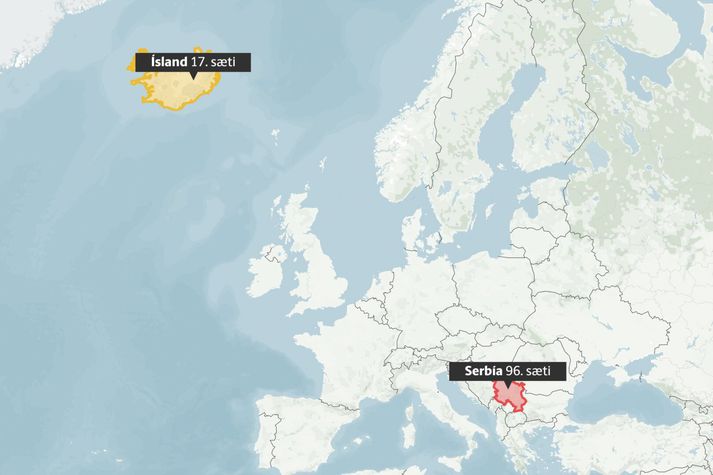 Serbía er í 96. sæti á lista samtakanna Blaðamenn án landamæra yfir fjölmiðlafrelsi í heiminum. Ísland situr í 17. sæti, talsvert neðan en hin Norðurlöndin.Vísir