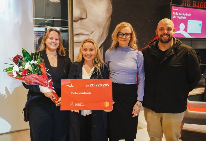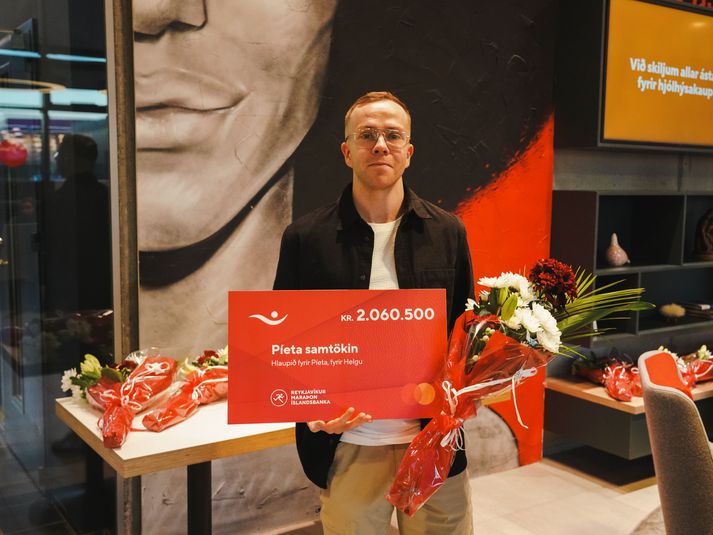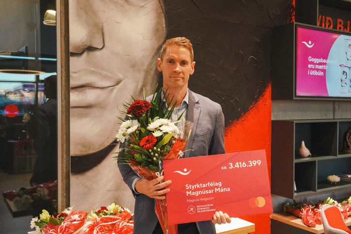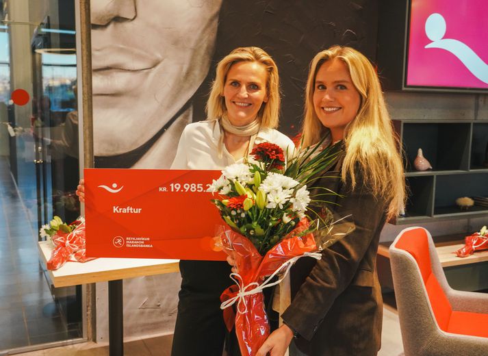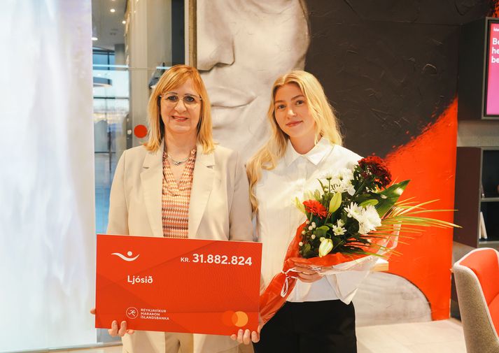Í tilkynningu kemur fram að á hátíðinni hafi verið veittar viðurkenningar til þeirra einstaklinga og hópa sem söfnuðu hæstu upphæðunum í ár. Sá einstaklingur sem safnaði mestu var Magnús Helgason, en hann safnaði 3.419.399 krónum fyrir styrktarfélag Magnúsar Mána. Magnús Helgason safnaði mest allra einstaklinga fyrir Styrktarfélag Magnúsar Mána. Sebastian Storgaard Næst kom Mari Jaersk, sem safnaði 2.073.000 krónum til styrktar Krýsuvíkursamtökunum, og í þriðja sæti var Birna Kristín Hrafnsdóttir sem safnaði 1.608.000 krónum fyrir styrktarsjóð Grétars og fjölskyldu. Birna Kristín Hrafnsdóttir safnaði rúmri milljón fyrir Styrktarsjóð Grétars og fjölskyldu. Sebastian Storgaard Ólöf Skaftadóttir og Kristín Gunnarsdóttir í Komið gott söfnuðu rúmum tveimur milljónum fyrir Hollvini Grensásdeildar. Sebastian Storgaard HHHC Boss-hlaupahópurinn bar höfuð og herðar yfir aðra hlaupahópa þegar kom að söfnun áheita og klæðaburði en þeir söfnuðu 12.906.317 krónum til styrktar Krafti. „Hópurinn vakti mikla athygli fyrir frammistöðu sína enda hlupu þeir sex maraþon á sex dögum, klæddir í jakkaföt,“ segir í tilkynningunni. Starfsfólk Píeta ánægt með stuðninginn. Sebastian Storgaard Hlaupið fyrir Píeta, fyrir Helgu var sá hópur sem safnaði næstmestu, og að lokum voru það stöllurnar í Komið gott sem söfnuðu þriðju hæstu upphæðinni þetta árið. Yfir 170 góðgerðarfélög hlutu styrk Í ár var áheitum safnað fyrir yfir 170 góðgerðarfélög. Allar söfnunarupphæðir hafa verið greiddar að fullu til félaganna, en Íslandsbanki stendur straum af öllum kostnaði við söfnunina. Þau félög sem fengu hæstu upphæðirnar að þessu sinni voru: • Ljósið – 31.869.657 krónur • Píeta samtökin – 20.215.122 krónur • Kraftur – 19.972.063 krónur Erna Magnúsdóttir, stofnandi Ljóssins, tók við styrknum en Ljósið fékk hæsta styrkinn allra félaga. Sebastian Storgaard Styrkþegar og hlauparar á verðlaunahátíð. Sebastian Storgaard Píeta hlaut um tuttugu milljónir í styrk samanlagt frá hlaupurum í maraþoninu. Sebastian Storgaard Sólveig Ása Tryggvadóttir, framkvæmdastjóri Krafs, og Eva Sigrún Guðjónsdóttir, markaðsstjóri Krafts, tóku við viðurkenningunni. Sebastian Storgaard