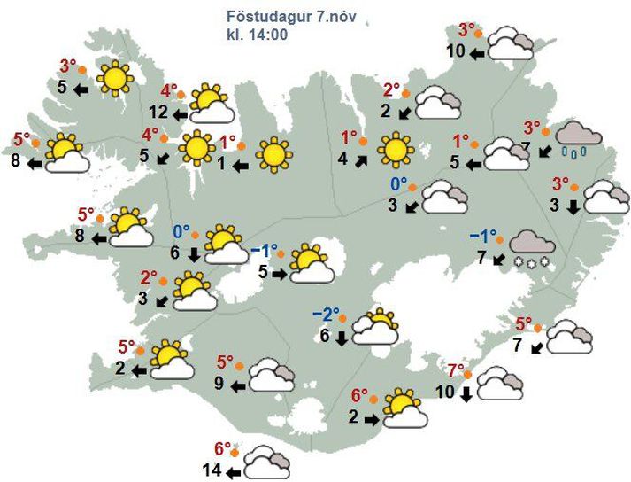 Spákort fyrir klukkan 14.Veðurstofan