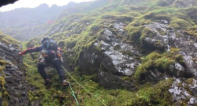 Féll niður fimmtán metra á Súlum: „Þetta er bara búið, ég átti gott líf“ Magnús Jochum Pálsson skrifar 28. nóvember 2025 07:02 Eftir að hafa dottið niður Súlur einn síns liðs ákvað Garpur næst að draga með sér þrjá vini. Ævintýramaðurinn Garpur I. Elísabetarson ákvað að klifra fjallið Súlur einn síns liðs. Á leiðinni upp missti hann takið og féll niður fimmtán metra. Klifurlína, hjálmur og mosagróið berg dempuðu fallið og björguðu lífi hans. Fall er fararheill og ákvað Garpur að reyna aftur við fjallið með góðum félögum. „Þegar ég sá Súlur hugsaði ég bara: „Ég verð einhvern veginn að standa þarna uppi.“ Þannig ég fór fyrst í fjallgöngu þarna upp, skoðaði þetta og drónaði,“ segir Garpur um fjallið Súlur í Eyjafirði sem er til umfjöllunar lokaþætti seríunnar Okkar eigið Ísland. „Svo fór ég aðra ferð og þá ætlaði ég að athuga hversu hátt ég kæmist án þess að lenda í veseni sem, eftir á að hyggja, var ekki sniðugt.“ Fann ekki fyrir neinu eftir fallið Garpur komst ekki nema upp fyrstu fimmtán metrana vegna þess hve erfitt undirlendið var, mosagróið, illfært og grjótið ansi laust í sér. „Þetta er allt drasl, allt óþægilegt og mér líður aldrei vel. Þetta fjall gefur manni ekkert rosalega mikinn afslátt, sérstaklega þessa fyrstu metra. Svo er ég að fara upp smá kafla sem lítur ekki út fyrir að vera þægilegur og þá (ég átta mig ekki á því hvað gerist, steinn losnað og ég misst takið) fleygist ég af fjallinu,“ segir Garpur. Súlur er tilkomumikið fjall, um 1.213 metrar að hæð. „Ókei, þetta er bara búið, ég átti gott líf, þetta var skemmtilegt og fullt af góðum minningum,“ segist hann hafa hugsað með sér meðan hann flaug í loftinu. Garpur skoppaði niður mósagróið fjallið og lenti líklega þrisvar utan í því áður en hann lenti. Hann var sem betur fer í línu og hefði því ekki getað dottið lengra en þrjátíu metra. „Svo lendi ég með hausinn niður í móti við brún og tuttugu-þrjátíu metra fall eftir það. Ég finn engar tilfinningar, hvorki líkamlega né andlega, ekki neitt, ég bara ligg þarna. Svo fer ég að hreyfa tærnar og þær hreyfast og hreyfi hausinn varlega til hliðanna, þreifa á hausnum á mér og öxlunum og finn að Go-Pro-vélin sem ég var með á hausnum er farin þannig ég hef greinilega lent á hausnum,“ segir hann. „Ég ákvað að ég yrði að koma þarna aftur og kalla til liðsauka,“ segir hann um fjallið og sú ganga er umfjöllunarefnið í lokaþætti fjallgönguþáttanna Okkar eigið Ísland sem hafa verið sýndir á Vísi í haust og vetur. Fjallið er stundum umvafið skýjum. Miserfitt að sannfæra vinina Garpur heyrði í Andra Má Ómarssyni, Bergi Sigurðssyni og Jónasi G. Sigurðssyni. Þrátt fyrir að verkefnið virtist ógnvænlegt reyndist Garpur of sannfærandi og ákváðu þremenningarnir því að slá til og fara með honum. „Ég var svo spenntur að klára þetta, losa þetta úr hausnum mínum, ég var búinn að hugsa svo mikið um þetta. Þetta var búið að festast í sjálfsmyndinni minni að hafa dottið þarna,“ segir Garpur. Krefjandi klifur. Mennirnir héldu því af stað norður keyrandi. Eftir ágætis bíltúr tók við eins og hálfs tíma ganga upp að rótum Súlna sem var þakið í þoku og skýjabakka. Fljótt áttuðu mennirnir þrír sem Garpur hafði fengið með sér að klifrið yrði krefjandi, undirlagið þakið lafþunnum mosa og illfæru grjóti. „Ég fann það alveg strax að ég hafði náð að sannfæra Andra um að koma með en hann var ekkert peppaðasti gæinn þegar hann sá í hvað stefndi. Jonni er alltaf til í allt og Bergur var spenntastur af okkur,“ segir Garpur um viðmót þremenninganna. „Ég hlakka til þegar þú fyrirgefur mér“ Eftir því sem fjórmenningarnir klifruðu hærra varð erfiðara fyrir þá sem voru komnir upp að eiga í samskiptum við þá sem voru niðri og öfugt. Mosinn var sömuleiðis svo sleipur að þeir runnu ítrekað með tilheyrandi grjóthruni í átt að næsta manni. „Ég hlakka til þegar þú fyrirgefur mér,“ sagði Garpur við Andra í miðju klifrinu. „Gæti verið svolítið í það,“ svaraði Andri sem sagðist síðar hafa viljað vera hvar sem er annars staðar en akkúrat þarna á þeim tímapunkti. Þokan minnkaði aðeins þegar mennirnir voru komnir upp. Upplýsingar um klifurleiðina voru af skornum skammti og fóru þeir félagar fljótt að hafa áhyggjur af því hvernig þeir kæmust niður. Til allrar hamingju batnaði undirlendið eftir því sem þeir komust hærra, mosinn og mulningurinn véku fyrir traustara bergi. Þrátt fyrir það var smá hasar eftir enda þykk þoka sem umvafði toppinn. Hægt er að sjá alla ferðasöguna, klifrið og spennandi lokahlutann í þættinum í heild sinni hér að neðan: Okkar eigið Ísland Fjallamennska Eyjafjarðarsveit Mest lesið Bróðurinn grunaði að Hulda væri hálfsystir þeirra Lífið Óttast að Dimma hafi endað í gini tófunnar Lífið Enn reið Tarantino vegna þess sem hann gerði íslenskum konum Lífið Verkefnið kom eins og þruma úr heiðskíru lofti og varð Daníel að þegja í heilt ár Lífið Spennandi breytingar í GK Reykjavík – verslunin flutt í Evu Lífið samstarf 50+: Það má segja Nei við barnapössun Lífið Er þetta hinn nýi hvíti karlmaður? Lífið Inga Elín hannar fyrir Saga Class Lífið Fór í hjartastopp eftir að hafa borðað 10.000 hitaeiningar á dag Lífið Kjallarinn eins og nýr hjá Ásu og Árna Lífið Fleiri fréttir Bróðurinn grunaði að Hulda væri hálfsystir þeirra Útgeislun og glæsileiki í húðvörupartýi Verkefnið kom eins og þruma úr heiðskíru lofti og varð Daníel að þegja í heilt ár Óttast að Dimma hafi endað í gini tófunnar Inga Elín hannar fy