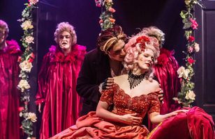 Öskrað á of litlu sviði Símon Birgisson skrifar 6. mars 2026 07:00 Birtingur reynir að vinna ást sína, Kúnígúnd, á sitt band. LA „Er þessi heimur besti heimur allra heima?“ er spurningin sem bjartsýnismaðurinn Birtingur veltir fyrir sér í nýjum söngleik Leikfélags Akureyrar sem byggður er á skáldsögu Voltaire. Það er leikhússtjórinn sjálfur, Bergur Þór Ingólfsson, sem leikstýrir, þýðir og semur leikgerðina og má segja að sýningin reyni ekki bara á leikarana heldur einnig samkomuhúsið sjálft – sem komið er til ára sinna. Birtingur – Leikfélag Akureyrar. 2. sýning 27. febrúar 2026 Leikstjórn og leikgerð: Bergur Þór Ingólfsson. Höfundur: Voltaire. Leikmynd: Sigríður Sunna Reynisdóttir. Búningar: Björt Marta Gunnarsdóttir. Tónlist: Þorvaldur Bjarni Þorvaldsson. Lýsing: Lárus Heiðar Sveinsson. Leikarar: Hjalti Rúnar Jónsson, Hólmfríður Hafliðadóttir, Niels Thibaud Girerd, Sólveig Guðmundsdóttir og Urður Bergsdóttir. Skynsemi frekar en óskhyggja Birtingur eftir Voltaire telst eitt af höfuðverkum upplýsingarinnar. Bókin er skrifuð árið 1759 og gerir höfundurinn stólpagrín að svokallaðri ,,bjartsýnis heimspeki“ manna á borð við Leibnitz og Popes. Þeirra heimspeki var kristileg í eðli sínu og gekk út á að heimurinn (skapaður af guði) væri fullkominn í eðli sínu. Persónan Altúnga, heimiliskennarinn og heimspekingur í kastala greifans í Vestfalíu, er talsmaður þessarar kenningar í bókinni og hann útskýrir í upphafi verksins að í besta heimi allra heima hafi allt sinn tilgang – nef manna eru gerð til að halda uppi gleraugum, fæturnir skapaðir til að bera skó, grjót hefur orðið til svo hægt sé að byggja kastala og svínin gerð til að hægt sé að éta þau. Þessu trúir Birtingur í blindni enda ástfanginn af dóttur greifans – Kúnígúnd, sem hann telur fegursta sköpunarverk allra sköpunarverka. En Voltaire var maður upplýsingarinnar. Hann trúði á skynsemishyggju. Menn upplýsingarinnar, á borð við Kant, litu ekki á heiminn sem fullkomið sköpunarverk heldur endurspeglaði heimurinn eðli og innræti mannsins. Þýski heimspekingurinn Immanuel Kant lagði til dæmis ríka áherslu á að það væri á ábyrgð hvers einstaklings að uppfræða sig. Upplýsingin, að hans mati, væri ,,lausn mannsins úr viðjum þess ósjálfræðis sem hann á sjálfur sök á,“ skrifaði Kant í frægu svari við spurningunni: Hvað er upplýsingin? Til að sýna fram á fáránleika kenninga Altúngu lætur Voltaire endalausar hörmungar ganga yfir persónur sögunnar. Birtingur er rekinn úr kastala greifans fyrir að kyssa Kúnígúnd. Hann lendir í stríðsátökum í Búlgaríu, upplifir jarðskjálfta í Lissabon, er pyntaður af rannsóknarrétti, Altúnga er hengdur, Kúnígúnd nauðgað og Birtingur hýddur. Það myndi taka of mikið pláss að fara yfir allar þær raunir sem persónur sögunnar lenda í en alltaf er Birtingur sami bjartsýnismaðurinn – trúir því að allt sé þetta hluti af hinu guðlega plani sem Altúnga boðaði í kastalanum. Alveg þar til í lok sögunnar þegar hann kemst að hinni frægu (og nokkuð umdeildri) niðurstöðu að heimurinn sé kannski ekki bestur allra heima heldur þurfi hver einstaklingur að hugsa um sjálfan sig og rækta garðinn sinn. Stór sýning á litlu sviði Leikstjórinn Bergur Þór Ingólfsson tekur þá ákvörðun að nota tiltölulega fáa leikara í sýningunni sem bregða sér í hin ýmsu hlutverk. Á baksviðinu er þó einnig stór hljómsveit (spilarar úr Sinfóníuhljómsveit Norðurlands) sem Þorvaldur Bjarni Þorvaldsson stjórnar en hann semur alla tónlist verksins. Segja má að sýningin reyni á þanþol sviðsins í samkomuhúsinu. Þrátt fyrir fáa leikara fékk maður oft á tilfinninguna að það væri þröngt á þingi á sviðinu enda mikið um leikmuni, búninga og senuskiptingar auk þess sem hljómsveitin tekur sitt pláss. Leikritið hófst af miklum krafti en var samt nokkuð kaflaskipt. Stundum var hlaupið hratt yfir sögu en svo hægðist mjög á tempóinu í öðrum atriðum eins og sögu kerlíngarinnar þar sem þau eru á leið til hafnar í Góðviðru. Eins skemmtileg og vel skrifuð þessi frásögn er (og nær yfir tvo kafla í bókinni) er spurning hvort ekki hefði verið hægt að nýta söngleikjaformið betur í stað þess að hægja á sýningunni með svona langri einræðu. Tónlistin, sem Þorvaldur Bjarni semur og flytur með hljómsveitinni, var nokkuð skemmtileg blanda af framsæknu rokki, poppi og ballöðum. Sýningin er á mörkum þess að vera leikrit með söngvum eða söngleikur. Samþætting tónlistar og leiks fannst mér takast einna best í El Dóradó-atriðinu strax eftir hlé og lokaatriðið var einnig eftirminnilegt. Gallinn við tónlistina, og þá erum við kannski komin aftur að takmörkum samkomuhússins, var að maður greindi varla orðaskil í söngnum þegar hljómsveitin spilaði undir af krafti og allir tóku þátt. Stundum fannst mér leikararnir hreinlega öskra texta sinn í stað þess að syngja. Það varð til þess að maður fylgdi illa sögunni eða því sem var að gerast í sönglögunum. Eflaust væri þessu öðruvísi farið í nútímalegri sal þar sem hljómurinn og tæknibúnaður er betri. Flottir ungir leikarar Niels Thibaud Gerard leikur Birting og er orkumikill og með skemmtilega sviðsorku. Hann er miðpunktur nánast allra sena verksins og sá eini sem skiptir aldrei um hlutverk. Þetta er erfitt hlutverk og stundum varð Níels aðeins of mikill áhorfandi að atburðarrásinni þar sem litríkar aukapersónur stela senunni. Svo var annað sem mér fannst skrýtið, þar sem þetta er jú söngleikur, að Birtingur á ekkert flott söngnúmer og söng ekki með í lokalaginu – mér fannst vanta að aðalpersóna verksins ætti sitt eigið stef eða lag. Mig