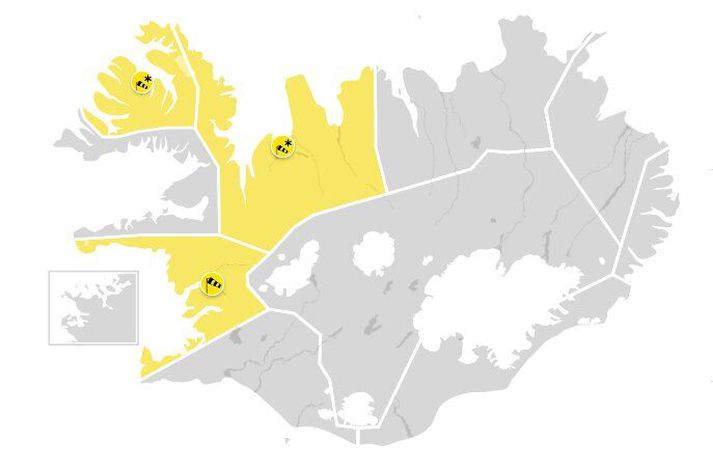 Enn viðvaranir og óvissustig vegna snjóflóðahættu Lovísa Arnardóttir skrifar 17. mars 2026 07:18 Það eru viðvaranir og óvissustig víða um land. Myndin er tekin í Ólafsfirði. Vísir/Atli Gular viðvaranir eru nú í gildi vegna veðurs á Faxaflóa, Vestfjörðum og á Ströndum og Norðurlandi vestra. Þær eru annars vegar til 14 og 17. Þar er norðvestan stormur og hríð og á Faxaflóa er vindhraðinn allt að 25 metrum á sekúndu. Á Vestfjörðum má búast við talsverðri eða mikilli snjókomu eða éljagangi með skafrenningi, lélegu skyggni og versnandi akstursskilyrðum, einkum á norðanverðum Vestfjörðum og svipaða sögu er að segja af Ströndum og Norðurlandi vestra. Óvissustig vegna snjóflóðahættu Óvissustig er vegna snjóflóðahættu á Norðurlandi og á norðanverðum Vestfjörðum. Samkvæmt upplýsingasíðu Vegagerðarinnar er Flateyrarvegur lokaður vegna snjóflóðahættu og einnig vegurinn um Súðavíkurhlíð. Þá er Dynjandisheiðin einnig ófær. Á Norðurlandi eru vegirnir um Ólafsfjarðarmúla og Víkurskarð lokaðir og á þeim fyrrnefnda féll snjóflóð yfir veginn. Þá er Siglufjarðarvegur einnig ófær. Veðurspá fyrir landið gerir ráð fyrir norðan og norðaustan 10 til 18 metrum á sekúndu, en 18 til 25 metrum á sekúndu norðvestanlands fram yfir hádegi. Þá er spáð snjókomu eða skafrenningi á norðanverðu landinu, dálítilli rigningu eða slyddu suðaustantil, en annars bjart með köflum. Hiti verður yfirleitt núll til fimm stig að deginum. Gular viðvaranir í dag. Veðurstofan Lægð á eftir lægð Í hugleiðingum veðurfræðings kemur fram að suður af landinu sé víðáttumikil lægð sem þokist austur á bóginn. Lægðin valdi norðan- og norðaustanátt, hvassviðri eða stormi norðvestantil fram eftir degi, en annars hægari vindi. Fólki er bent á að sýna varkárni og fylgjast með veðurspám. Einnig er mjög hvasst á sunnanverðu Snæfellsnesi og því varasamt fyrir ökutæki sem taka á sig mikinn vind og er viðvörun vegna hvassviðris í gildi fyrir Faxaflóa. Hiti yfirleitt nálægt frostmarki. Dregur hægt úr vindi og ofankomu seinnipartinn og kólnar aðeins í veðri.Þá segir hann að á morgun, miðvikudag, sé útlit fyrir tiltölulega hæga vinda framan af degi, skýjað með köflum og stöku él norðaustanlands. Þá nálgast lægð úr suðvestri og þá gengur í vaxandi sunnanátt og þykknar upp vestantil seinnipartinn, allhvasst eða hvasst með snjókomu eða slyddu þar seint um kvöldið. Á fimmtudag er svo spáð sunnanhvassviðri eða -stormi með talsverðri rigningu, hláku og hlýindum í bili, en suðvestanátt með éljagangi og kólnandi veðri á föstudag. Það bætast við fleiri lægðir í vikunni. Vísir/Vilhelm Veðurhorfur á landinu næstu daga Á miðvikudag: Norðvestan 8-15 m/s austast fram eftir degi, en annars mun hægari suðlæg eða breytileg átt. Skýjað með köflum, en dálítil él norðaustanlands. Vaxandi sunnanátt vestast seinnipartinn og þykknar upp, 13-18 og slydda eða snjókoma þar seint um kvöldið. Hiti 1 til 6 stig yfir daginn.Á fimmtudag: Sunnan og suðvestan 15-23 m/s og talsverð rigning, en úrkomulítið norðaustantil. Hiti 5 til 10 stig er kemur fram á daginn.Á föstudag: Suðvestan 13-20 m/s og éljagangur, hvassast við ströndina, en hægara og bjart með köflum austanlands og hiti nærri frostmarki.Á laugardag: Suðvestlæg átt og él, en yfirleitt bjartviðri norðan- og austanlands og hiti nærri frostmarki.Á sunnudag: Útlit fyrir hvassa austlæga átt með snjókomu eða slyddu, en rigningu syðra og hiti kringum frostmark.Á mánudag: Snýst líklega í norðanátt með snjókomu eða éljum, en rofar víða til sunnan heiða og kólnar í veðri. Veður Færð á vegum Snjóflóð á Íslandi Tengdar fréttir Ólafsfjarðarmúla lokað vegna snjóflóðs Ólafsfjarðarvegi við Ólafsfjarðarmúla á milli Dalvíkur og Ólafsfjarðar hefur verið lokað vegna snjóflóðs. 16. mars 2026 20:20 Veðurviðvaranir vegna sterkra hviða og mikillar snjókomu Veðurstofa Íslands hefur gefið út gular veðurviðvaranir á Vestfjörðum, Faxaflóa og Norðurlandi vestra. Óvissustig vegna snjóflóðahættu er víða um land. 16. mars 2026 11:46 Aldrei séð flóð falla á þessum stað á átján ára ferli Gestur Hansson, snjóflóðaeftirlitsmaður á Siglufirði, segir veðrið á Siglufirði að ganga niður og það hafi verið bærilegt í nótt. 16. mars 2026 08:47 Mest lesið „Ég held að ég verði þess heiðurs aðnjótandi að taka Kúbu“ Erlent Sjö handteknir í tengslum við meiriháttar líkamsárás Innlent „Persónulegir þættir koma hér hvergi nærri“ Innlent Eins og ef einhver myndi hella vatni yfir tölvu Innlent Umdeildir leikir í sumarbúðum: „Það eru sem betur fer breyttir tímar“ Innlent Betra að setja upp sólgleraugu inni á kvöldin en úti í morgunsólinni Lífið Árás gerð á sendiráð Bandaríkjanna í Baghdad Erlent Fyrri umræðu um þjóðaratkvæði lokið Innlent Loka fyrir umferð til að rannsaka banaslys Innlent Fauk í Kristrúnu í fyrirspurnartíma Innlent Fleiri fréttir Enn viðvaranir og óvissustig vegna snjóflóðahættu Veðurviðvaranir vegna sterkra hviða og mikillar snjókomu Holtavörðuheiðin opin á ný Bætir í norðaustanáttina að nýju Loka heiðinni og opna fjöldahjálparstöð: Biðja „ALLA“ um að halda sig heima Önnur rúta fór út af og Hringvegi lokað að hluta „Blint í stórhríð á Vestfjörðum“ Gular viðvaranir á norðvesturhorninu: Rýma atvinnuhúsnæði og loka vegum Hvessir á mestöllu landinu í kvöld Stífri norðanátt beint til landsins og vegir lokaðir Reiknað með stormi vestantil og hríðarviðvaranir í gildi Færð geti víða spillst hratt Él og slydduél í dag og önnur lægð á morgun Eldingu laust niður á höfuðborgarsvæðinu Gul viðvö