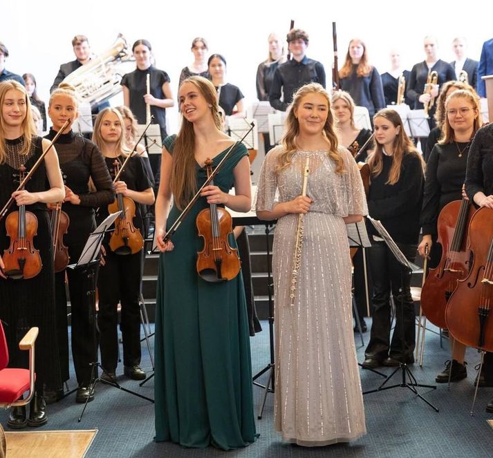 Valdi fiðluna fram yfir ballettinn eftir erfið meiðsli Magnús Jochum Pálsson skrifar 24. apríl 2026 14:09 Matthildur Traustadóttir hefur búið á Ítalíu, Spáni, Íslandi og Bandaríkjunum þar sem hún er í BA-námi við Oberlin-háskóla. Hún kemur fram á tónleikunum Ungir einleikarar ásamt þremur öðrum efnilegum hljóðfæraleikurum í kvöld. Fiðluleikarinn Matthildur Traustadóttir fæddist á Ítalíu, ólst upp á Spáni, gekk í menntaskóla á Íslandi og lærir nú við tónlistarháskólann Oberlin í Bandaríkjunum. Lengi vel átti hún erfitt með að velja á milli ballets og fiðluleiks og spiluðu álagsmeiðsli inn í endanlegt val. Matthildur er ein fjögurra sem kemur fram á tónleikunum Ungum einleikurum með Sinfóníuhljómsveit Íslands í kvöld. Á hverju ári heldur Sinfóníuhljómsveitin, í samstarfi við Listaháskóla Íslands, einleikarakeppni sem er opin öllum tónlistarnemum á háskólastigi. Hlutskarpastir í þeirri keppni fá að leika einleik með Sinfóníuhljómsveitinni á tónleikum Ungra einleika. Ungir einleikarar í ár verða haldnir í Eldborg í Hörpu klukkan 19:30 í kvöld og þar koma fram Halldóra Ósk Helgadóttir söngkona, sem flytur fjórar aríur; Lilja Hákonardóttir flautuleikari, sem flytur Flautukonsert eftir Jacques Ibert; Matthildur Traustadóttir fiðluleikari, sem leikur Fiðlukonsert í a-moll, Op. 82, eftir Alexander Glazunov, og Mariann Rähni píanóleikari, sem leikur Píanókonsert í F-dúr eftir George Gershwin. Blaðamaður heyrði hljóðið í einum einleikaranum, hinni 21 árs gömlu Matthildi Traustadóttur og ræddi við hana um æskuna, ferilinn og framtíðina. Búsetan erlendis mótað persónuleikann og spilamennskuna „Ég fæddist í Rimini á Ítalíu og bjó þar fyrstu tvo mánuði ævinnar. Við fluttum síðan til Íslands og vorum þar í þrjú ár, þannig ég náði smá leikskóla á Íslandi, áður en við fluttum svo til Tenerife á Spáni,“ segir Matthildur um fyrstu ár sín. „Mamma og pabbi voru að vinna sem fararstjórar á þeim tíma og þeim bauðst að vera í eitt ár á Tenerife. Nema hvað að þeim leist svo vel á þetta að eftir fyrsta árið ákváðum við að búa þar áfram. Þá var ég búin að læra tungumálið og elskaði að búa þarna og systir mín líka,“ segir hún. Fjölskyldan ætlaði alltaf að snúa aftur til Íslands en seinkuðu heimförinni stöðugt. Þegar Matthildur var að fara að byrja í menntaskóla ákváðu þau á endanum að snúa heim á ný, Matthildur talar þrjú tungumál reiprennandi og er mikið náttúrubarn. „Okkur leið bara svo ótrúlega vel þarna í sólinni, menningin og fólkið eru svo skemmtileg, að við tímdum ekki að fara fyrr en ég var að fara í menntaskóla. Þá langaði mig aðeins að tengjast betur Íslandi og fólkinu hérna, mynda mér tengslanet á Íslandi og eignast fleiri vini og styrkja sambandið við ömmur og afa,“ segir hún. Finnst þér þessi fjölbreytti bakgrunnur gefa þér annað sjónarhorn? „Það að hafa búið á svona mörgum stöðum hefur algjörlega haft áhrif á hvernig ég er sem manneskja. Þetta gefur manni víðari sjóndeildarhring. Það er svo gaman að að kynnast þessum ólíku menningum og læra þessi mismunandi tungumál. Ég hef mikla trú á því að þetta hafi haft áhrif á hvernig ég spila líka,“ segir hún. „Það að kunna önnur tungumál hefur áhrif á hvernig maður nálgast fiðluna. En auðvitað líka allt þetta fólk sem maður kynnist á Spáni, Ítalíu og síðan í Bandaríkjunum. Allt þetta fólk hefur áhrif á persónuleika manns og persónuleiki manns er það sem skín í gegn í spilamennskunni.“ Bjóst við að námið á Íslandi yrði erfiðara Matthildur gekk í Kvennaskólann og var samhliða því námi í Menntaskólanum í tónlist. Þrátt fyrir að hafa búið svona lengi frá Íslandi fannst henni námið ekki eins krefjandi og hún hélt fyrirfram. „Ég bjóst við því að þetta yrði erfiðara og ég held að maður mikli svona hluti of mikið fyrir sér. Maður þarf bara að vera með opinn hug, tilbúinn í þetta og þá einhvern veginn reddast hlutirnir alltaf. Ísland tók vel á móti mér og ég naut þess alveg rosalega mikið að vera hérna í menntaskóla,“ segir Matthildur. Matthildur og Lilja Hákonardóttir spiluðu einleik með sinfónuhljómsveit MÍT og gera það nú aftur með Sinfóníuhljómsveit Íslands. „Síðan hjálpaði kannski líka að skólakerfið á Tenerife er svo ótrúlega strangt að ég var í raun og veru komin einu ári, ef ekki tveimur, á undan í mörgum áföngum, bæði í öllum raungreinum og í sögu. Þannig það var ekki erfitt að koma sér inn í námið á íslensku því margt af þessu var bara endurtekið efni,“ bætir hún við. „Foreldrar mínir voru líka svo ótrúlega duglegir að halda íslenskunni minni við þannig það var aldrei neitt vesen að lesa og skrifa. Ég missti aldrei úr íslenskunni þegar ég var úti. Ég skrifaði í dagbók á íslensku, var alltaf að lesa bækur á íslensku og talaði við ömmur mínar og afa. Þannig það var í raun og veru ekkert mál að koma heim eftir öll þessi ár,“ segir Matthildur. Meiðsli aftan í læri höfðu áhrif Þó Matthildur hafi helgað sig fiðluleiknum var hún lengi vel jafn djúpt sokkinn í ballett og átti mjög erfitt með að velja þar á milli. „Ég byrjaði í fiðlunáminu og ballettinum á sama tíma þegar ég var sjö ára og var með alveg ótrúlega ástríðu fyrir hvoru tveggja. Ég var alltaf svo spennt yfir því að verða betri og fannst ég aldrei vera eins góð og mig langaði að vera, þannig ég varð að halda áfram til að komast þangað sem mig langaði,“ segir Matthildur. „Þetta var svolítið tvísýnt, ég var alls ekki ákveðin til að byrja með og tók ballettinum jafn alvarlega og fiðlunám