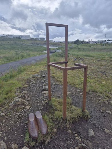 Íbúar furða sig á horfnu listaverki Freyja Þórisdóttir skrifar 25. apríl 2026 11:12 Listaverkið eftir Guðjón var reist í Grafarvogi árið 2001 og var hluti af sýningu Myndhöggvarafélagsins í Reykjavík, Strandlengjan, verkefni sem hófst árið 1998 og lauk á Listahátíð í Reykjavík árið 2000. Samsett mynd Listaverkið Sunnudagur frá 2000 eftir Guðjón Ketilsson hefur staðið í Grafarvogi í rúm tuttugu ár, eða gerði það öllu heldur. Verkið hefur að mestu leyti verið fjarlægt en á næstu vikum mega íbúar búast við því að sjá það endurbætt og í betra ásigkomulagi á sama stað og það var. Stóllinn, skyrtan og skórnir eiga að sögn listamannsins Guðjón Ketilsonar að vera eins konar sviðsetning á hugarástandi. Sunnudagur er kyrrstæður og því sóttist Guðjón við því að skapa verk sem vísaði í kyrrt ástand eða værð. Þetta er meðal þess sem kemur fram á vef Guðjóns. Verkið hefur hins vegar ekki staðið alveg kyrrt síðan sumarið 2024 en þá var það fjarlægt af stoðum sínum. Þá hafði það ryðgað alveg í gegn og því var það fært í viðgerð. Þetta kemur fram í samtali Vísis við Natalíu Druzin Halldórsdóttur, kynningar- og markaðsstjóra Listasafns Reykjavíkur. Árið 2024 var skyrtan horfin ásamt hluta af setunni en íbúar veltu margir fyrir sér hvað hefði skeð, hvort hluti verksins væri í viðgerð eða hvort unnin hefðu verið skemmdarverk á því.Facebook „Þetta var allt gert í góðu samráði við Guðjón og lagað eftir ströngum reglum, sama efni var notað við viðgerðirnar og verkið er alveg eins og það var upphaflega,“ segir Natalía. Hún greinir einnig frá því að verkinu verði stillt upp á ný mjög bráðlega og að henni þyki gaman að finna fyrir áhuga íbúa Grafarvogs og að sjá umræðuna sem hafi skapast sé glaðlegt. Þeim standi greinilega ekki á sama um að verkið hafi horfið. „Þessar viðgerðir tóku lengri tíma en áætlað var en það er gleðiefni að segja frá því að það rísi á ný núna á næstunni,“ bætir hún við. Listasafn Reykjavíkur heldur úti appi þar sem hægt er að nálgast upplýsingar um öll útilistaverk í borginni en þau eru um tvö hundruð talsins. Þá er einnig hægt að finna hljóðleiðsagnir fyrir göngu- og hjólatúra í appinu. Reykjavík Tímamót Mest lesið „Var að syrgja pabba þegar mamma dó“ Lífið Íbúar furða sig á horfnu listaverki Menning Stjörnur fjármálabransans komu saman Lífið Gjörsamlega búinn á því eftir að hafa prófað nýjasta æðið Lífið Glæsilegar í Gamla Bíói Lífið Fréttatía vikunnar: Jakkaföt, hlaupaföt og grænn loðbúningur Lífið Eiginkonan hélt að Vígþór væri að grínast í fyrstu spurningu Lífið Hátindur Netflix réttur staður fyrir Baltasar Lífið Flóni og Alaska ekki lengur „bara vinir“ Tónlist Borgarleikhúsið sviptir hulunni af Trölla Menning Fleiri fréttir Íbúar furða sig á horfnu listaverki Borgarleikhúsið sviptir hulunni af Trölla Villi vandræðaskáld valinn bæjarlistamaður Akureyrar Ævar Þór, Birna og Jón hlutu Barnabókaverðlaun Reykjavíkurborgar „Hugur manns í þunglyndi er eineltishrotti“ Furðulegar Eddutilnefningar: Nína Dögg, Ólafur Darri og Edda sniðgengin Hafnfirðingar vinna að sýningu um Bó Þórdís Kolbrún og Dagur byrjuð með hlaðvarp saman Pétur Geir opnar nýja vinnustofu með einkasýningu Settu tærnar upp í loft og fengu knús Hatari hættir í Þjóðleikhúsinu og breytingar í Borgó „Ekki viss hvort ég sé að skrifa minningargrein eða kveðjubréf“ Sjötugur Haukur Holm kveður fréttamennskuna Raðvændiskaupandi dæmir ekki á Íslandi eftir allt saman Pétur Marteinn Páll Urbancic er látinn Edda tryllti gesti óvænt með Ladda Framtíð Mengis óráðin þó eignin sé til sölu Hjálmar H. Ragnarsson er látinn Fá rödd Guðna lánaða Hundrað þúsund bóka múrnum rústað á Bókamarkaðnum Fræjum framtíðar sáð í gamlar bókasafnsbækur Gjöfull trekantur Þessi hljóta tilnefningu til Myndlistarverðlauna Ástin blómstraði á sýningu Tolla Sjá meira