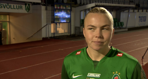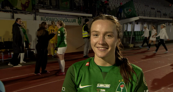 Agla María Albertsdóttir var að vonum glöð eftir að Íslandsmeistaratitill Blikakvenna var tryggður.